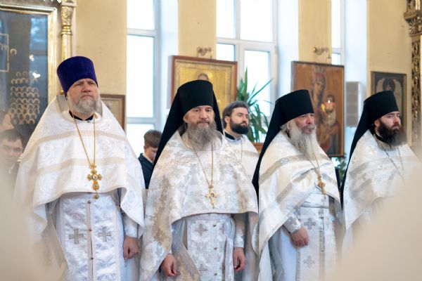 Его Высокопреосвященству сослужили секретарь Татарстанской митрополии иеромонах Кирилл (Корытко), ректор КазДС, настоятель семинарского храма иерей Никита Кузнецов, благочинный I округа города Казани протоиерей Владимир Самойленко, ректор Саранской духовной семинарии протоиерей Алексей Зверев, ректор Самарской духовной семинарии протоиерей Максим Кокаев, начальник отдела докторантуры Общецерковной аспирантуры и докторантуры имени святых равноапостольных Кирилла и Мефодия, доктор исторических наук, профессор протоиерей Алексий Марченко, преподаватели Казанской семинарии в священном сане.