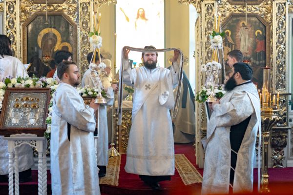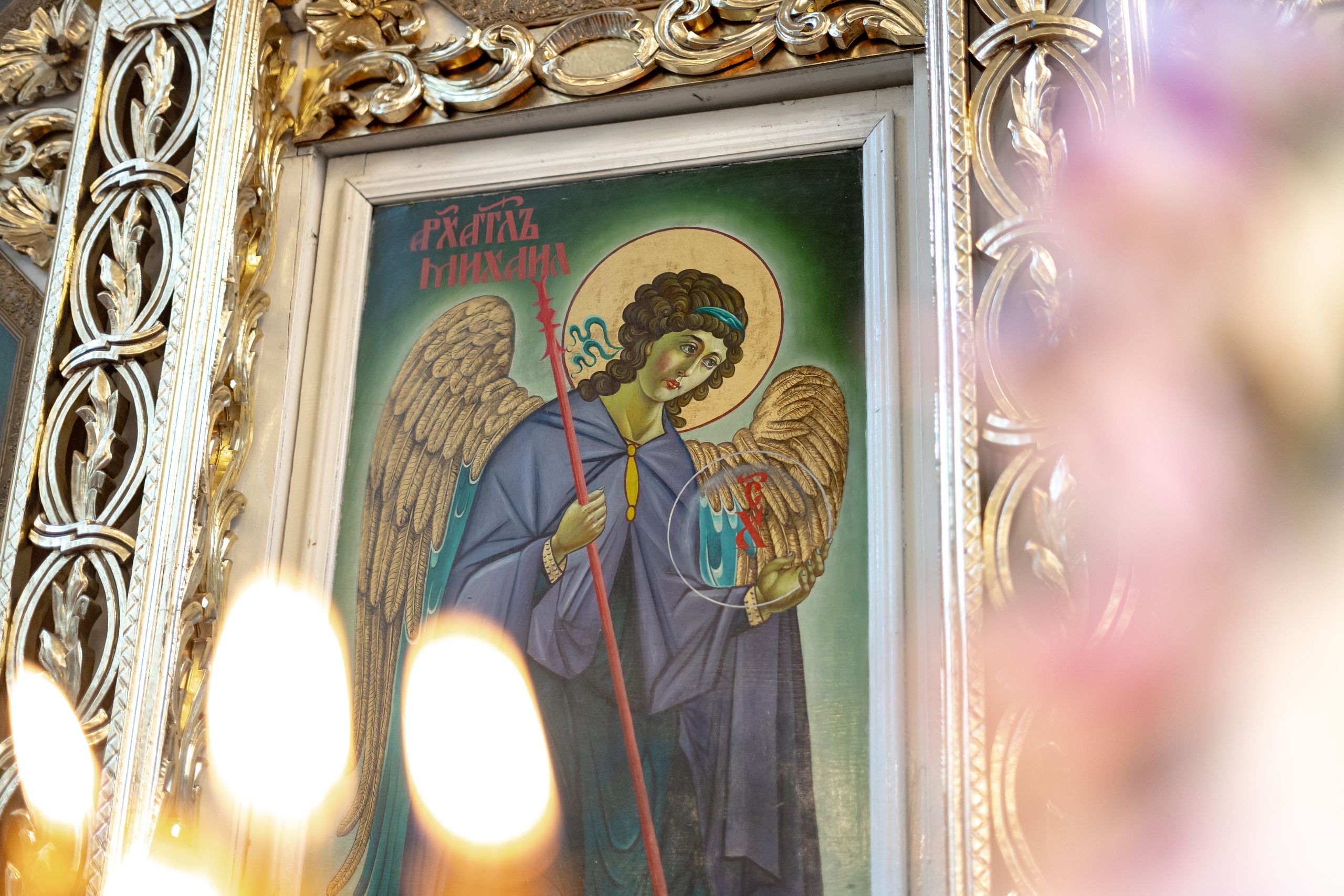 На мирной и сугубой ектениях были вознесены молитвы о Российском воинстве и о мире. По запричастном стихе проповедь произнёс настоятель Никольского собора города Казани протоиерей Иоанн Барсуков. В завершение было совершено славление Архистратигу Михаилу и Небесным Силам.