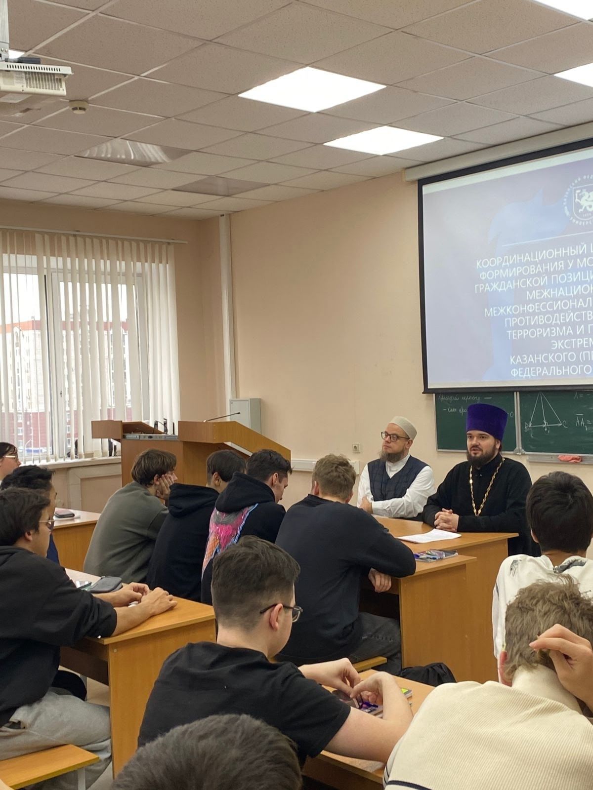 Добавим, что духовенство Казанской епархии регулярно встречается со студенческой молодежью. Ректор Казанской духовной семинарии иерей Никита Кузнецов принял участие в беседе на тему «Вера как аспект современной российской идентичности». Встреча прошла в Казанском федеральном университете в рамках Международного межрелигиозного молодежного форума. Отец Никита Кузнецов также стал участником дискуссии на тему «Бог не из машины: искусственный интеллект и религия» в Казанском национальном исследовательском техническом университете.