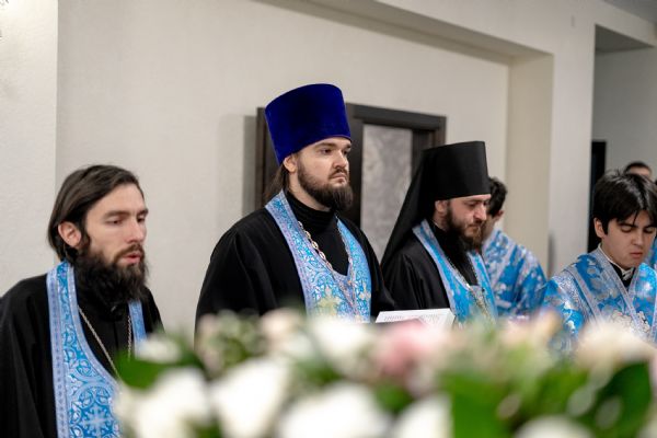 Главе Татарстанской митрополии сослужили секретарь Татарстанской митрополии иеромонах Кирилл (Корытко), наместник Раифского Богородицкого мужского монастыря игумен Гавриил (Рожнов), ректор Казанской духовной семинарии иерей Никита Кузнецов, клирики храма праведного Иоанна Кронштадтского при Казанской духовной семинарии иерей Димитрий Ларионов и иерей Иоанн Куликов.
