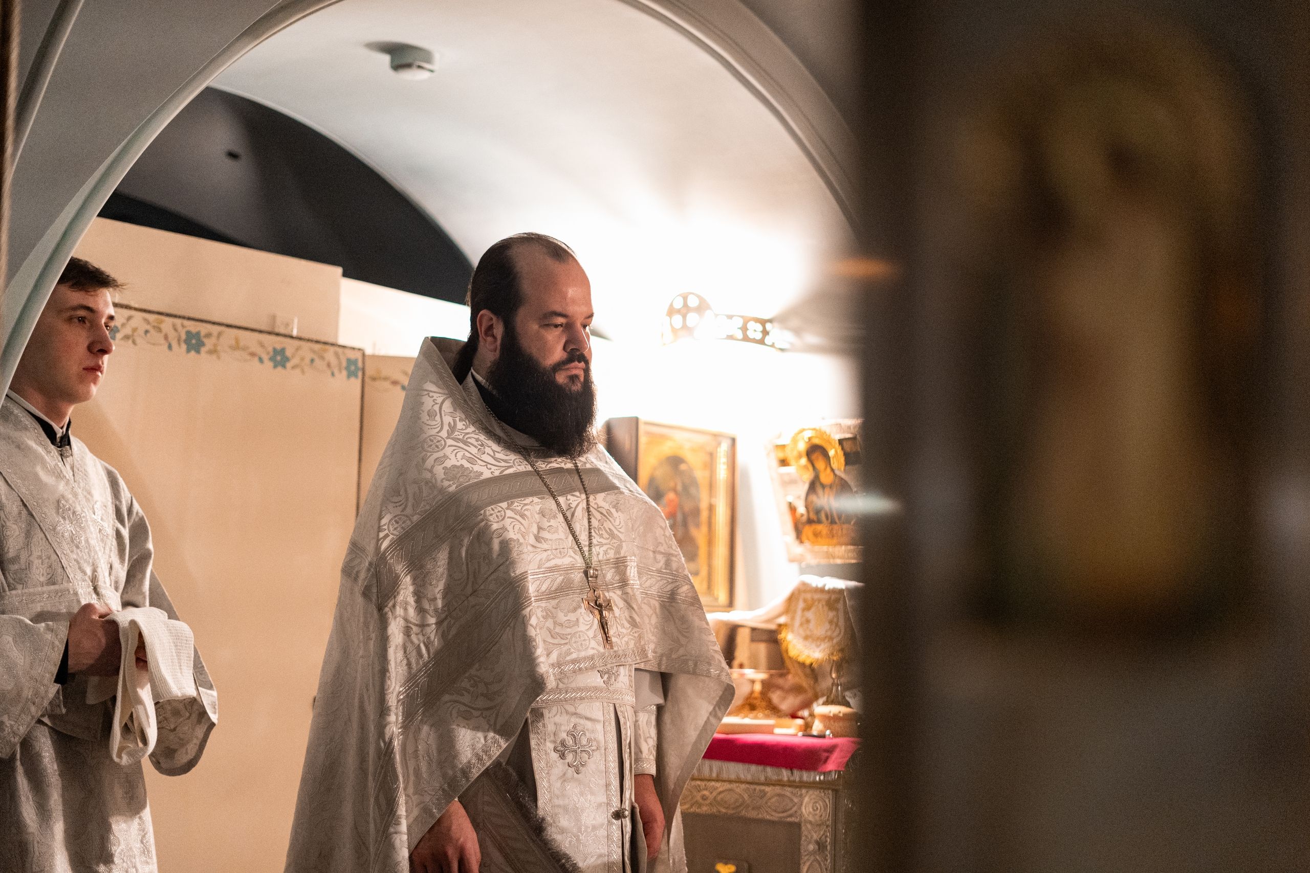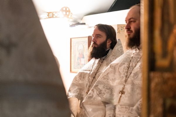 За богослужением молились насельники обители и прихожане. На мирной и сугубой ектениях были вознесены молитвы о Российском воинстве и о мире.