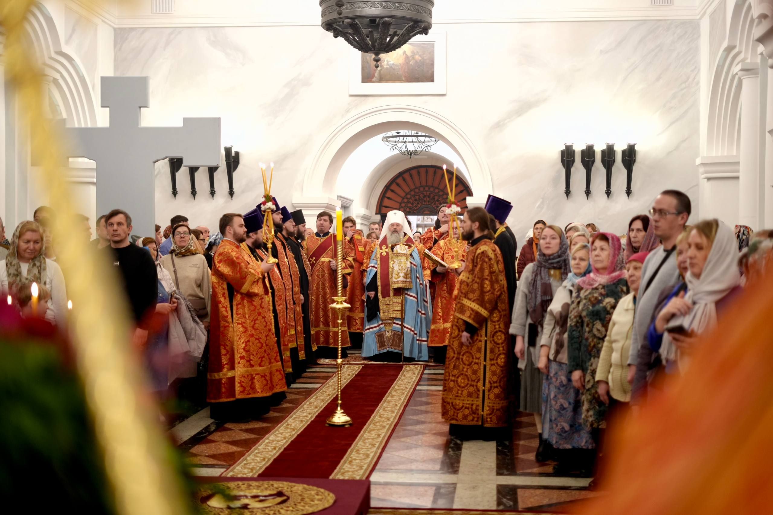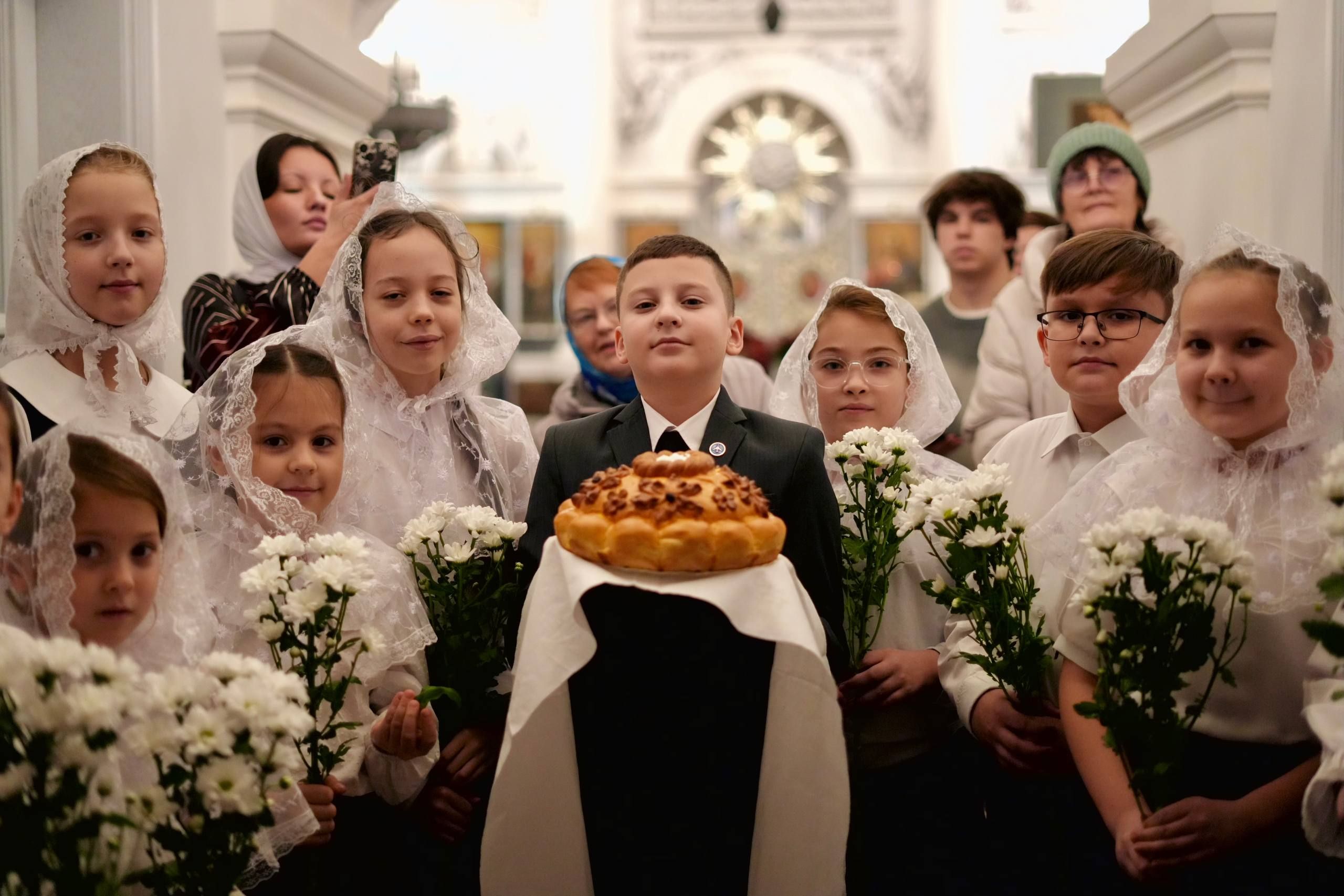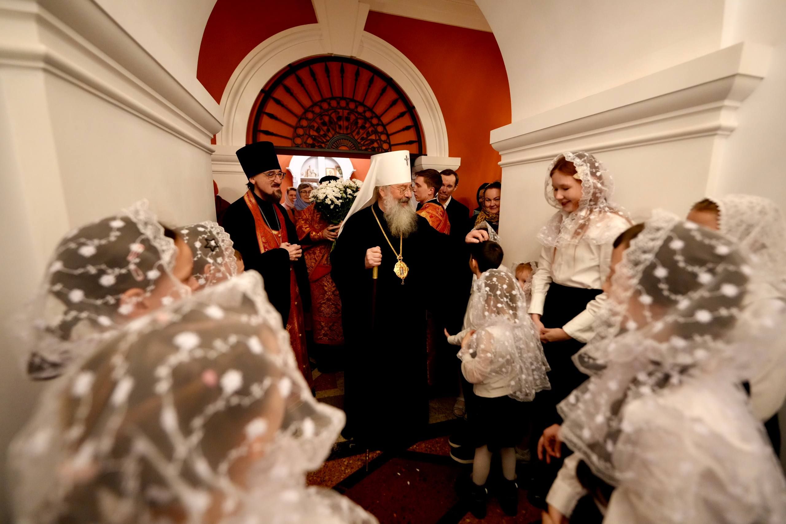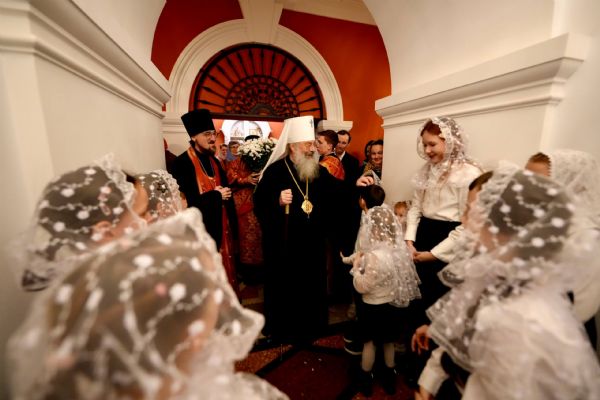 После службы архипастырь преподал верующим благословение. Детям, молившимся за богослужением, священники вручили шоколад.