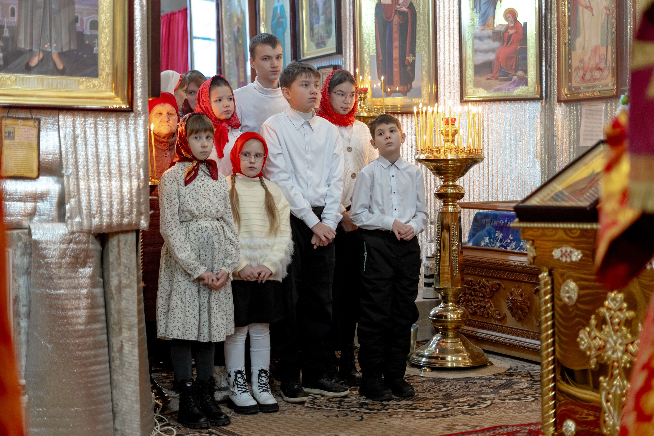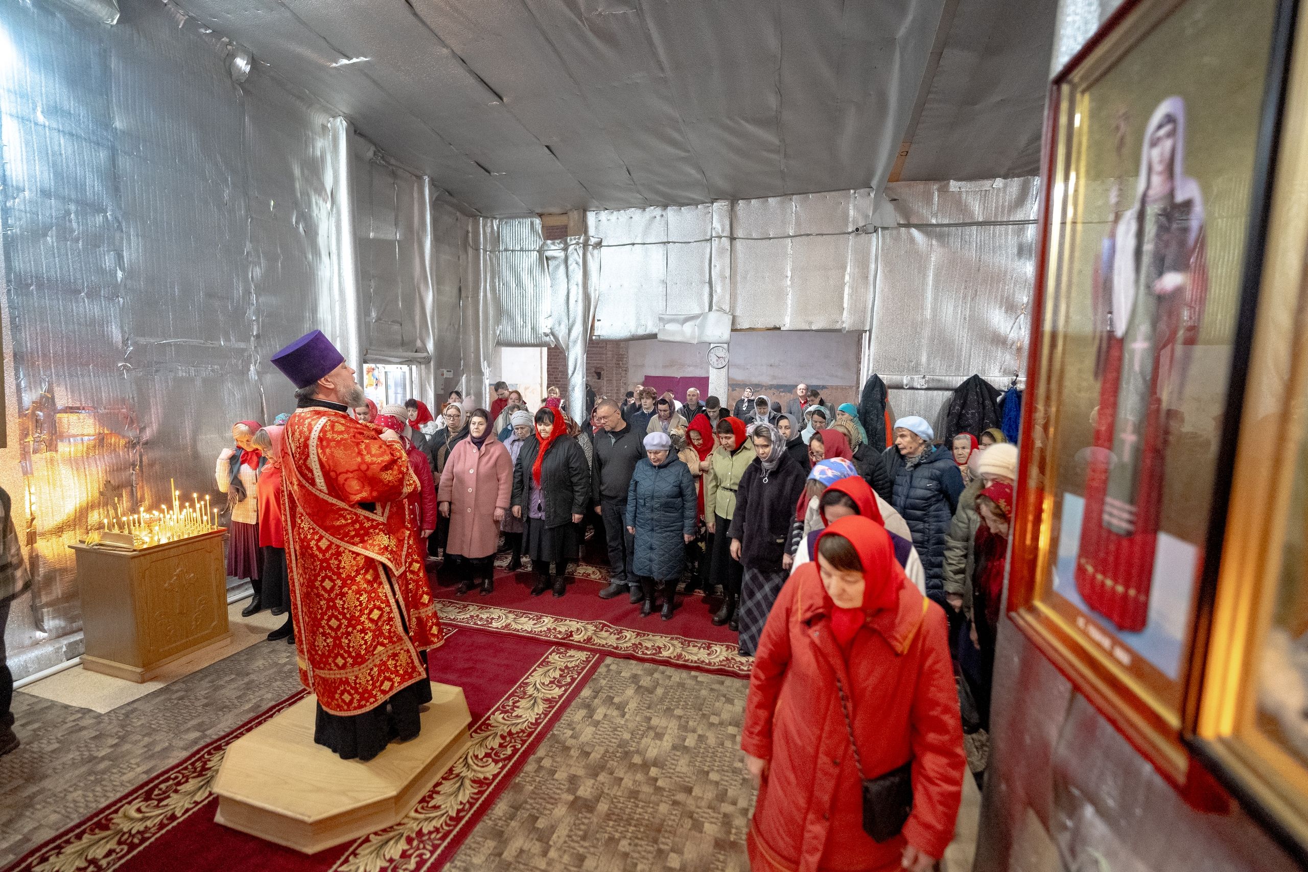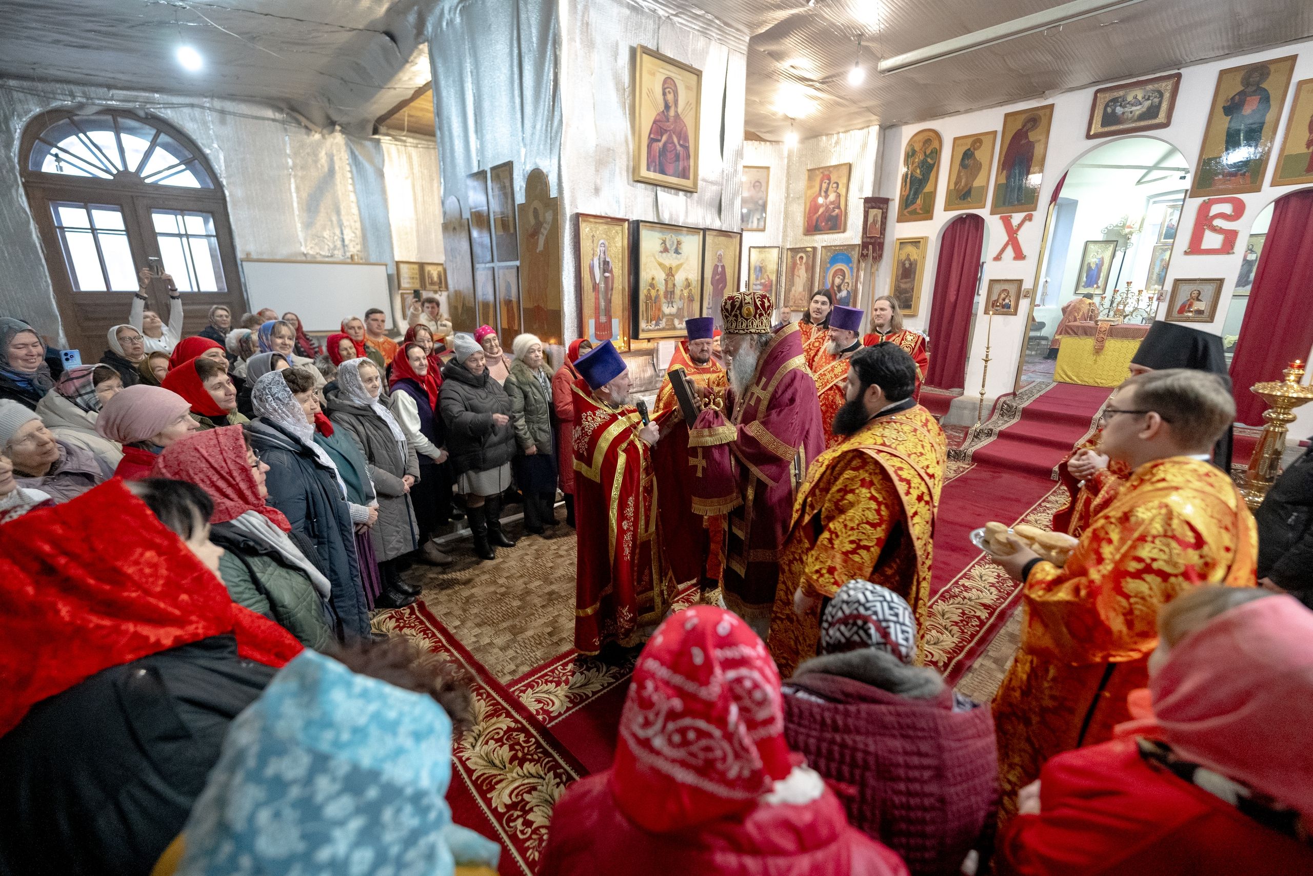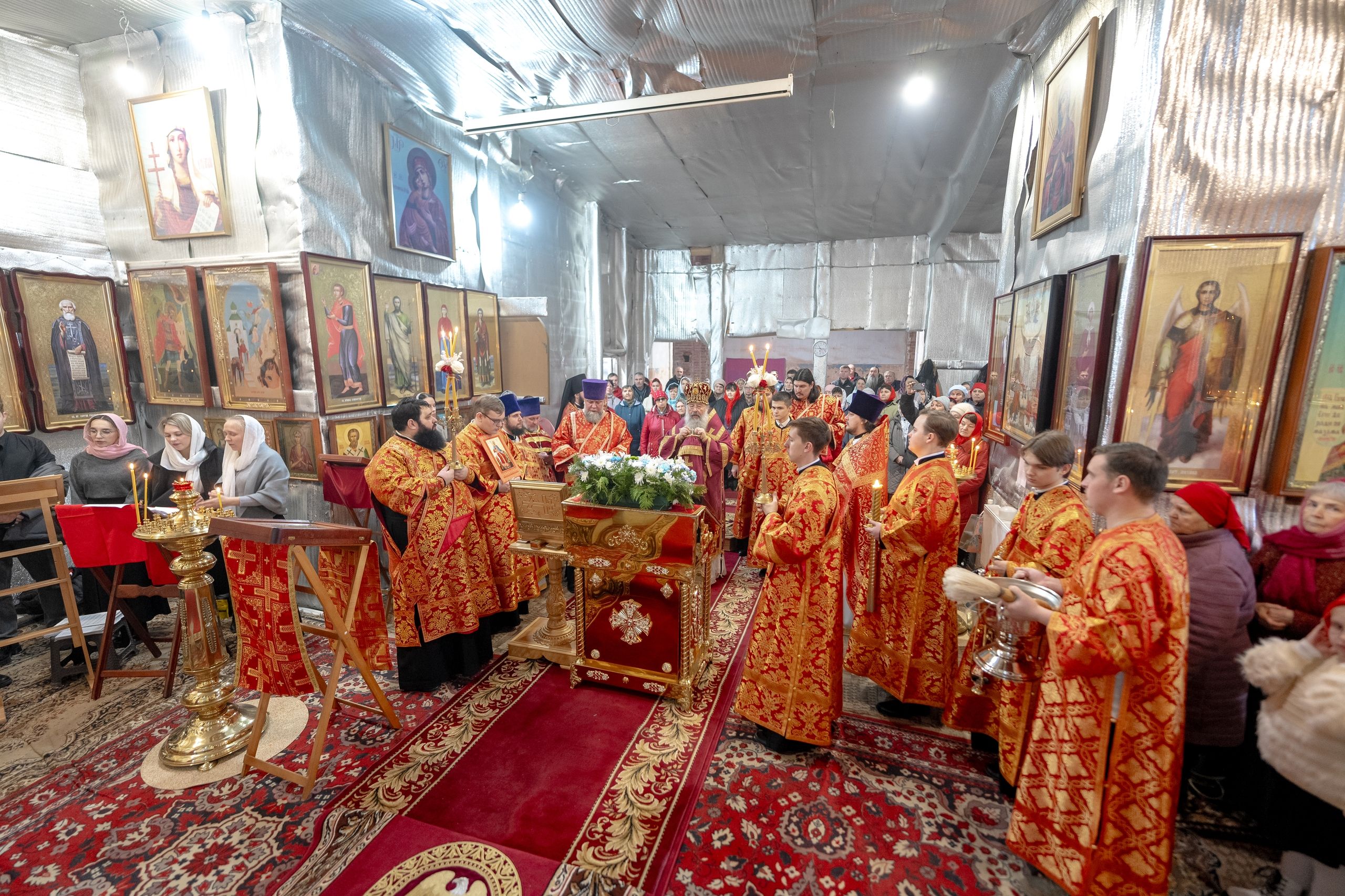 Праздник святой Екатерины для этого старинного храма особенно дорог, потому что один из престолов посвящён великомученице. Это единственный престол в её честь на территории всей Казанской епархии. Радостно, что вы чтите этот праздник: многие пришли в храм в красных платочках в цвет облачений праздника, многие исповедались и причастились Святых Христовых Таин, с чем я вас сердечно поздравляю.