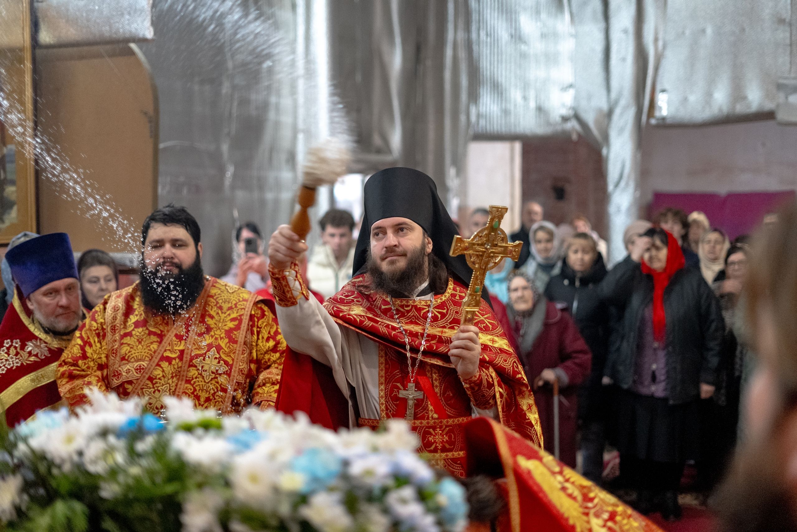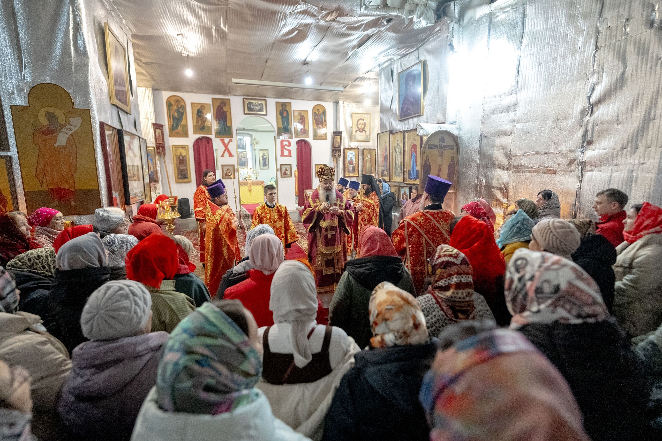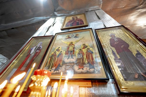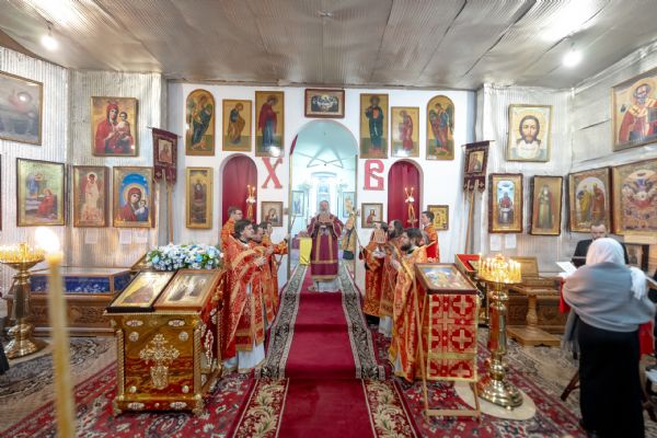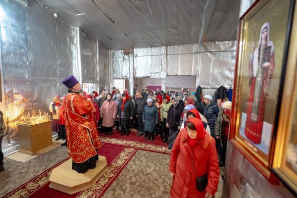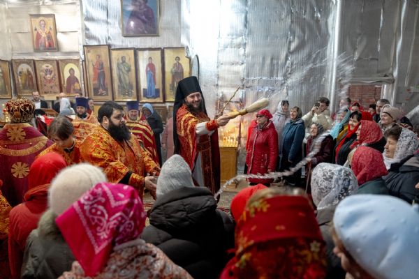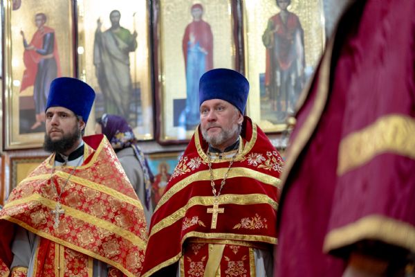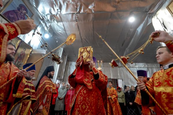 На мирной и сугубой ектениях были вознесены молитвы о Российском воинстве и о мире.