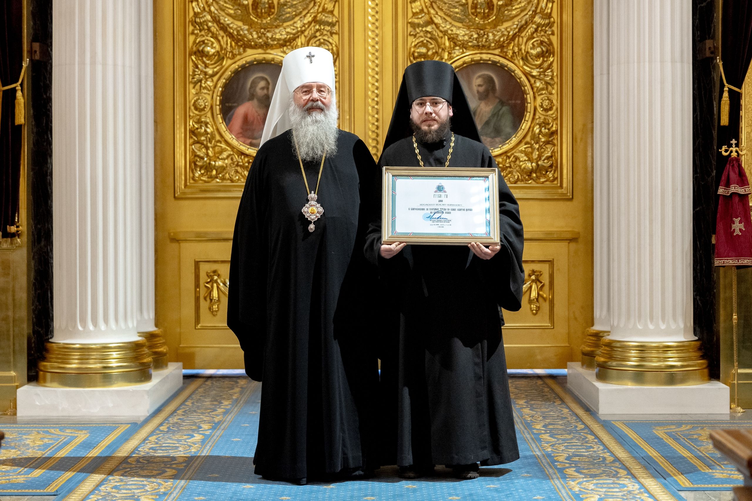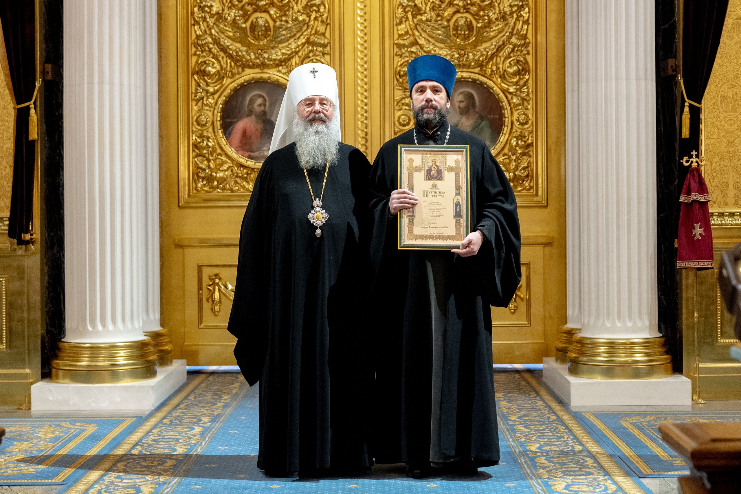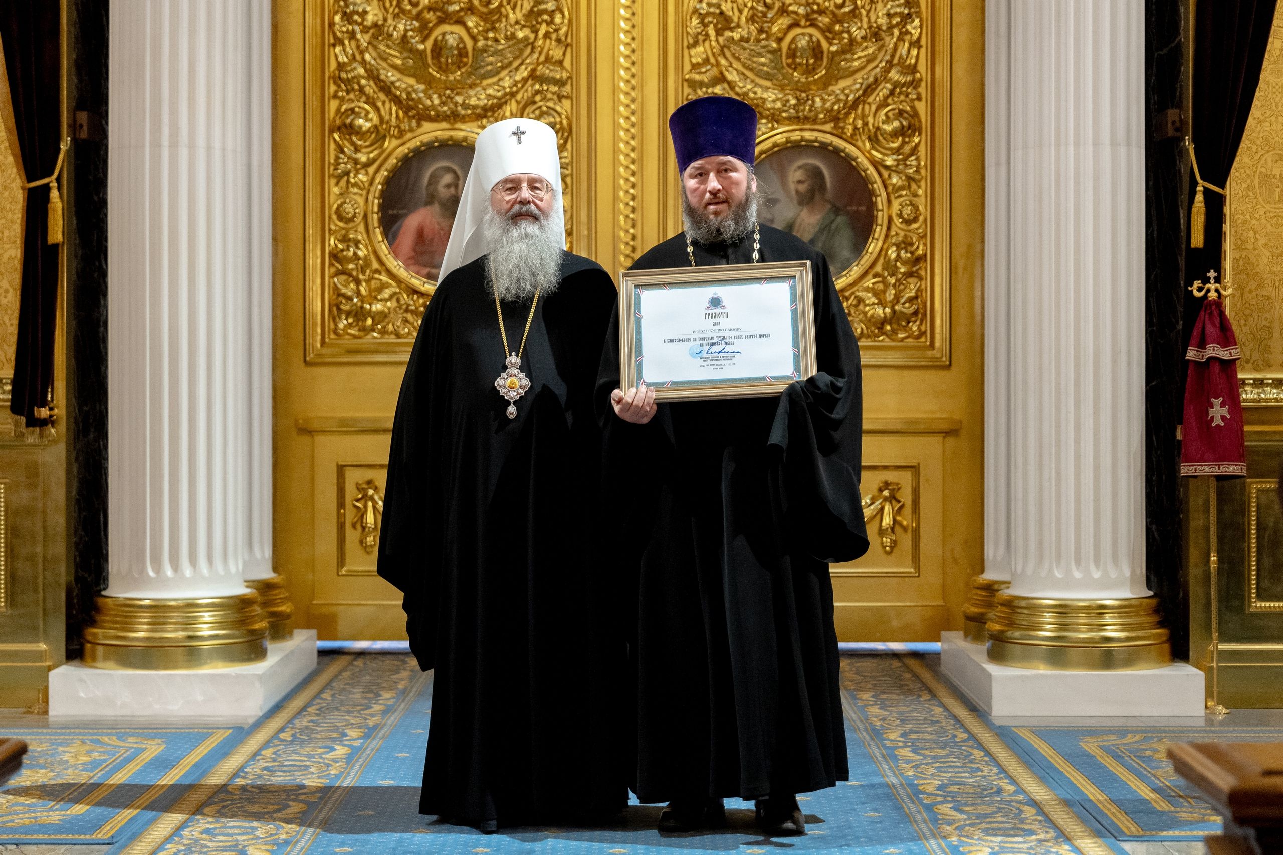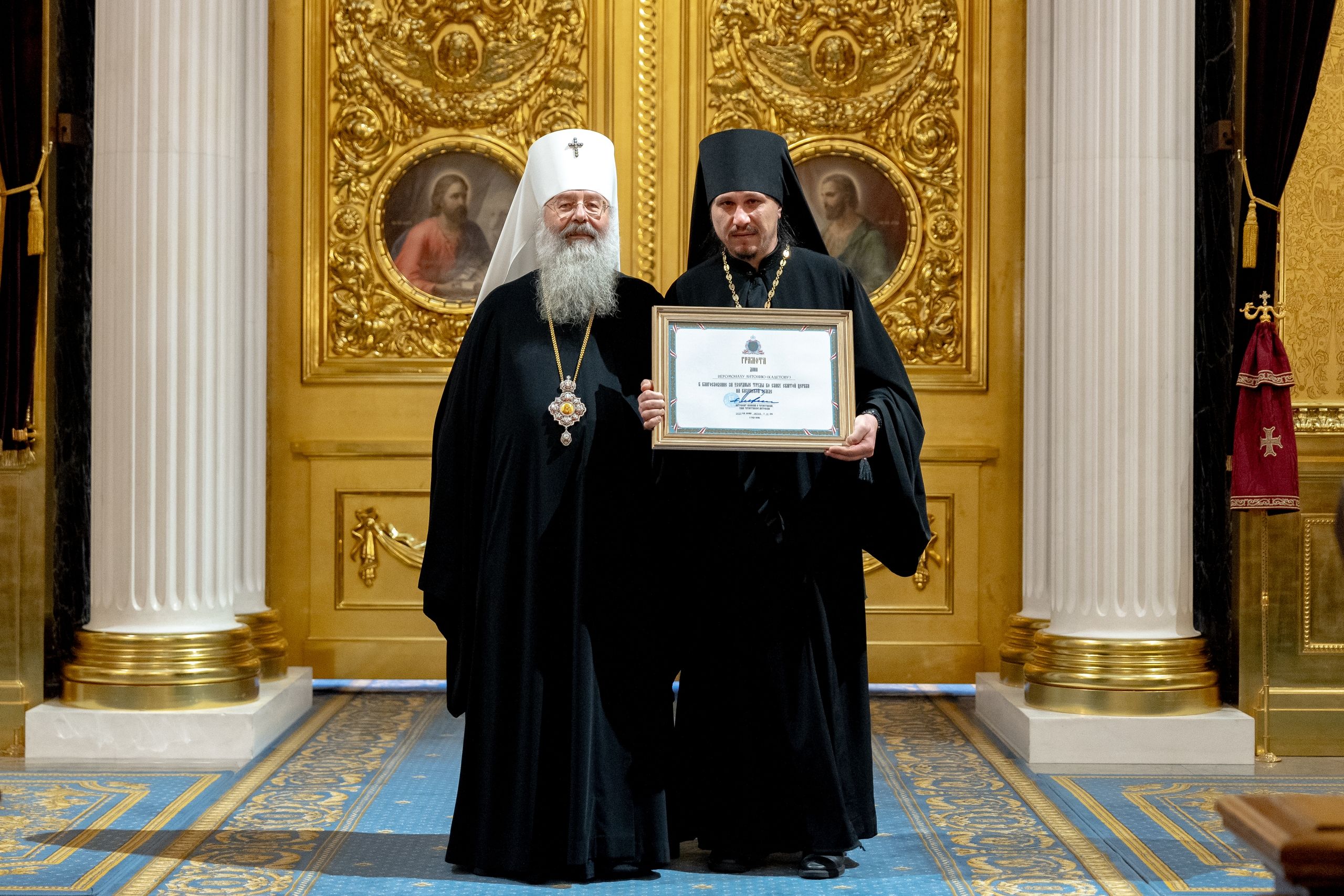 Архиерейских грамот: иерей Рафаил Федоров, в связи с 40-летием со дня рождения; иерей Александр Гудовских, в связи с 40-летием со дня рождения; Михаил Тимофеев, в связи с 40-летием со дня рождения; иерей Святослав Иванов, в связи с 40-летием со дня рождения; иерей Евгений Гаврилкин, в связи с 40-летием со дня рождения; иеромонах Иустин (Денисов), в связи с 40-летием со дня рождения; протоиерей Сергий Нечипоренко, в связи с 20-летием служения в сане пресвитера; иерей Георгий Павлов, в связи с 15-летием священнослужения; иерей Андроник Чурашов, в связи с 15-летием священнослужения; иеромонах Иоасаф (Кириллов), в связи с 15-летием священнослужения; иеромонах Онуфрий (Артюшкин), в связи с 15-летием служения в сане пресвитера; игумен Марк (Виленский), в связи с 15-летием священнослужения; иеромонах Антоний (Кадетов), в связи с 15-летием служения в сане пресвитера; иеромонах Павел (Кузнецов), в связи с 15-летием служения в сане пресвитера; иеромонах Гурий (Рассыпнинский), в связи с 15-летием священнослужения; иерей Андрей Елесин, в связи с 15-летием служения в сане пресвитера; иерей Рустик Тухватуллин, в связи с 15-летием служения в сане пресвитера; иерей Иоанн Васильев, в связи с 15-летием священнослужения; иерей Сергий Чернов, в связи с 15-летием служения в сане пресвитера; иерей Артемий Петров, в связи с 15-летием священнослужения; иеромонах Харлампий (Егоров), в связи с 10-летием служения в сане пресвитера; иерей Сергий Подопрелов, в связи с 10-летием священнослужения; иерей Марк Александров, в связи с 10-летием священнослужения; иерей Сергий Вохмянин, в связи с 10-летием священнослужения; иерей Глеб Кривошеин, в связи с 10-летием служения в сане пресвитера; иерей Григорий Пашпорин, в связи с 10-летием служения в сане пресвитера; иерей Владимир Благоверный, в связи с 10-летием священнослужения; иерей Максим Самарин, в связи с 10-летием священнослужения.