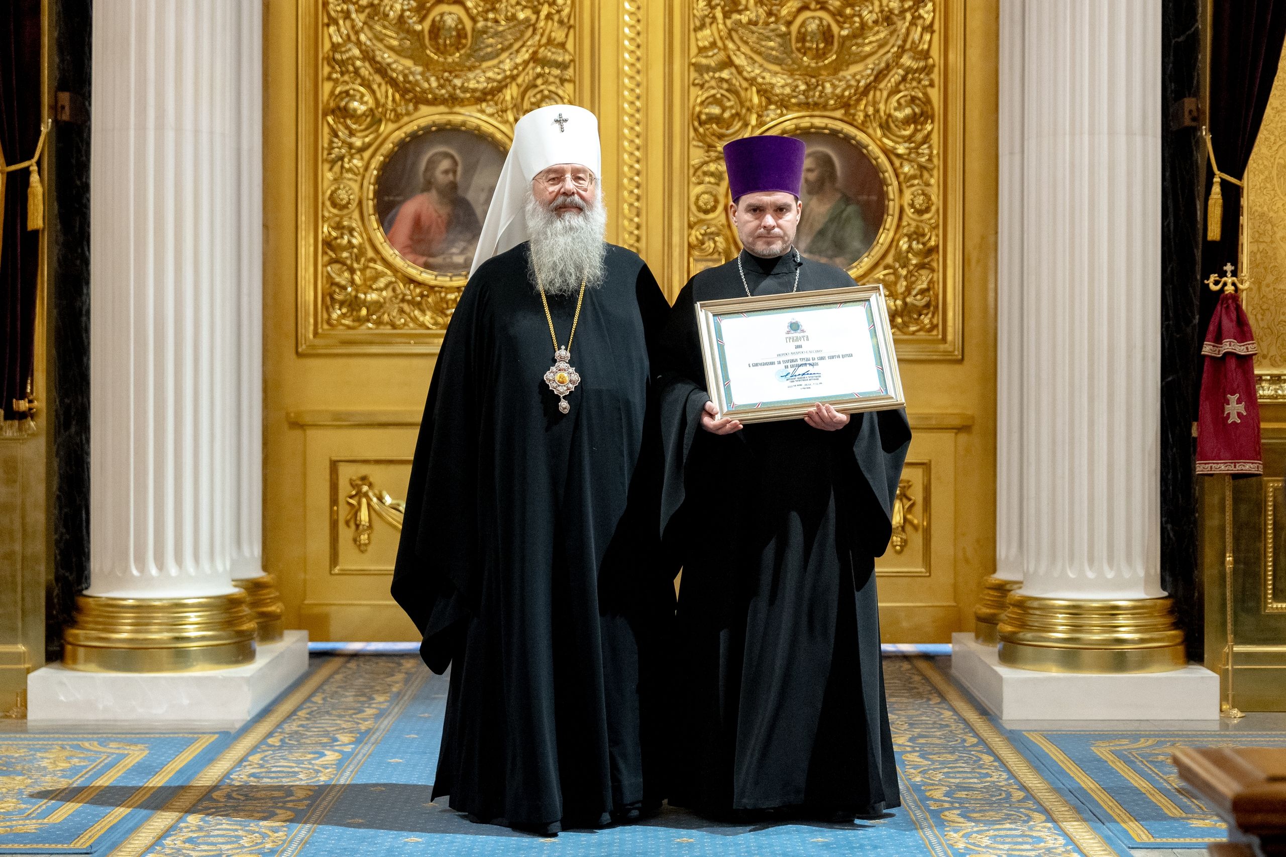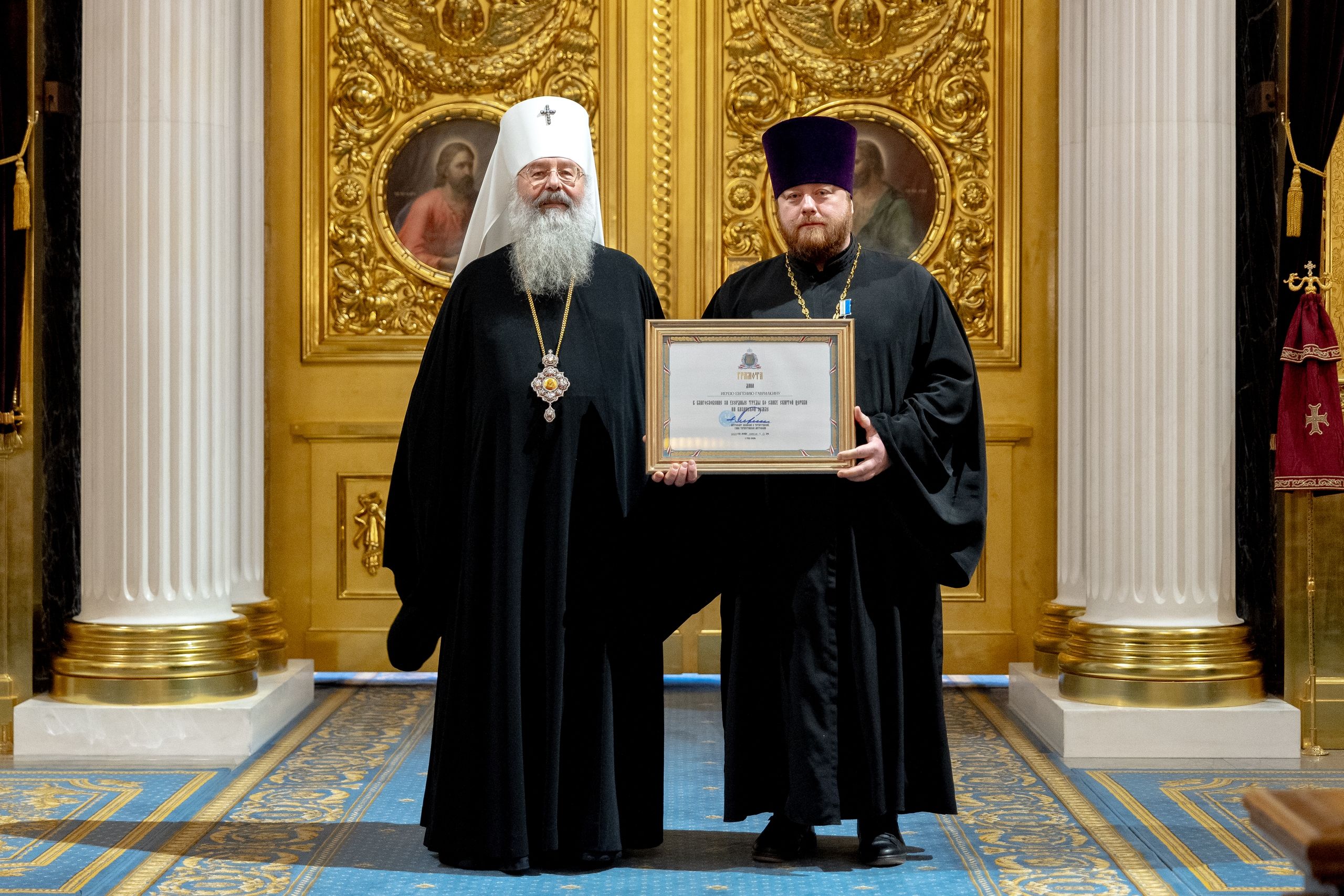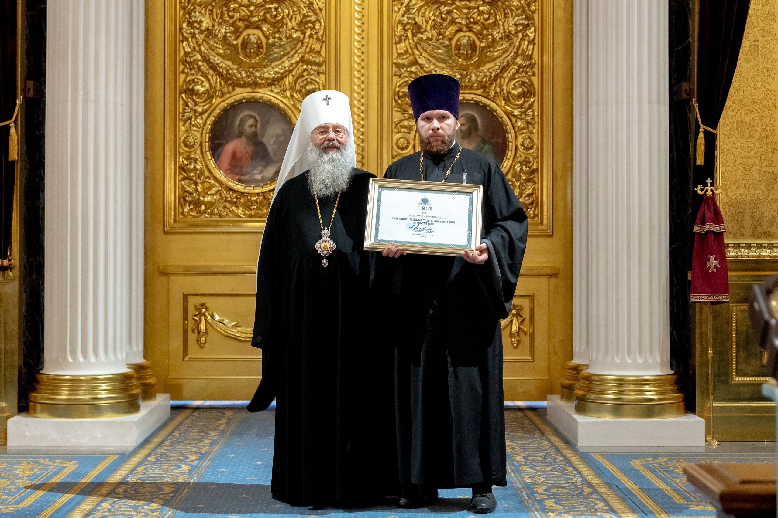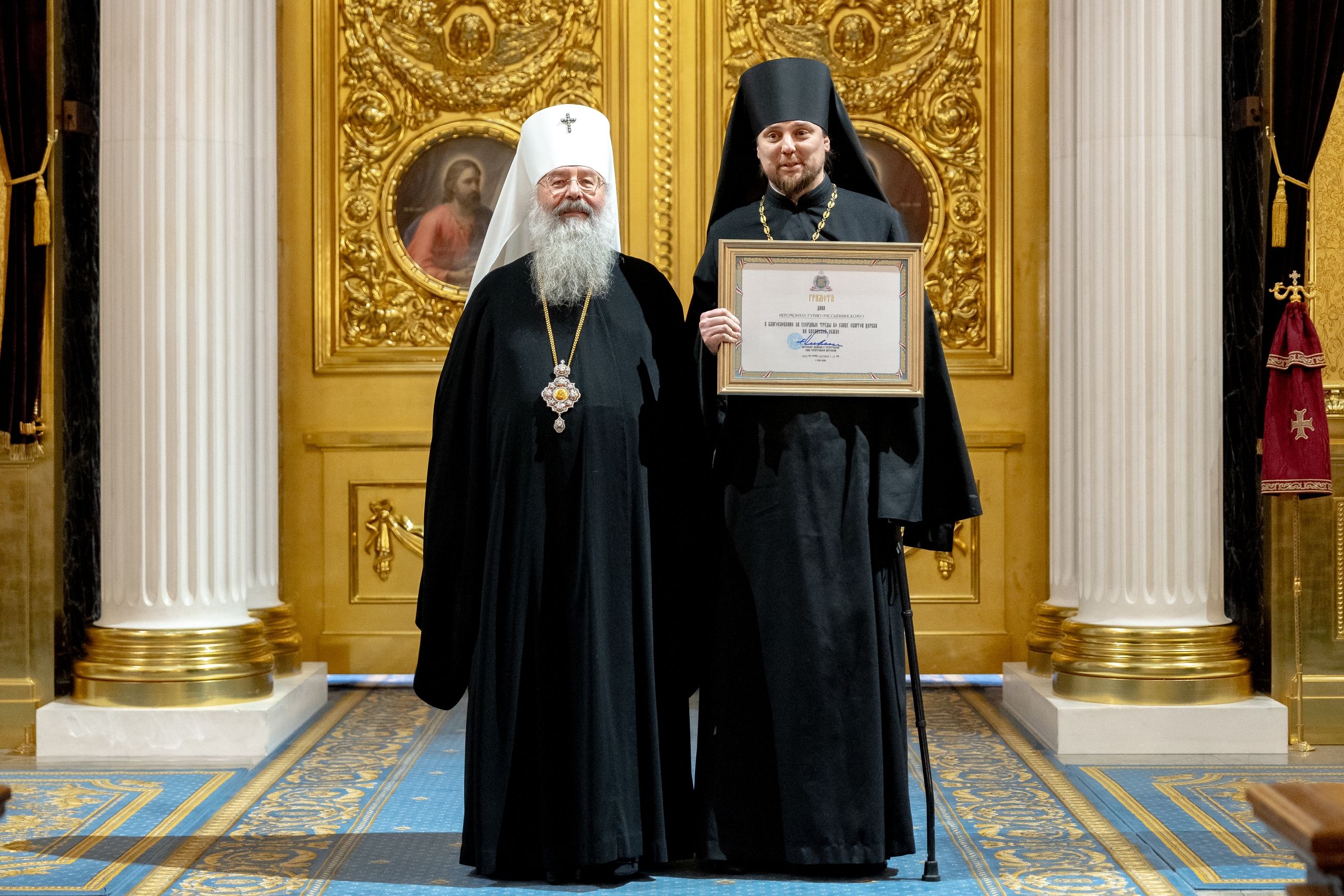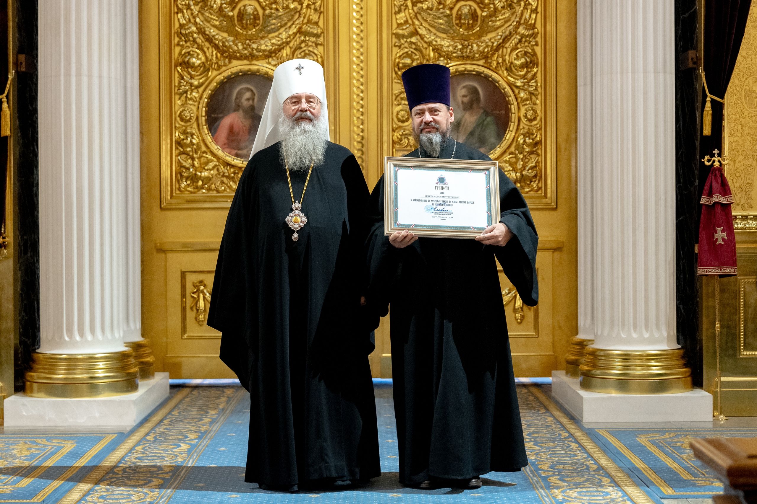 Архиерейских грамот: иерей Рафаил Федоров, в связи с 40-летием со дня рождения; иерей Александр Гудовских, в связи с 40-летием со дня рождения; Михаил Тимофеев, в связи с 40-летием со дня рождения; иерей Святослав Иванов, в связи с 40-летием со дня рождения; иерей Евгений Гаврилкин, в связи с 40-летием со дня рождения; иеромонах Иустин (Денисов), в связи с 40-летием со дня рождения; протоиерей Сергий Нечипоренко, в связи с 20-летием служения в сане пресвитера; иерей Георгий Павлов, в связи с 15-летием священнослужения; иерей Андроник Чурашов, в связи с 15-летием священнослужения; иеромонах Иоасаф (Кириллов), в связи с 15-летием священнослужения; иеромонах Онуфрий (Артюшкин), в связи с 15-летием служения в сане пресвитера; игумен Марк (Виленский), в связи с 15-летием священнослужения; иеромонах Антоний (Кадетов), в связи с 15-летием служения в сане пресвитера; иеромонах Павел (Кузнецов), в связи с 15-летием служения в сане пресвитера; иеромонах Гурий (Рассыпнинский), в связи с 15-летием священнослужения; иерей Андрей Елесин, в связи с 15-летием служения в сане пресвитера; иерей Рустик Тухватуллин, в связи с 15-летием служения в сане пресвитера; иерей Иоанн Васильев, в связи с 15-летием священнослужения; иерей Сергий Чернов, в связи с 15-летием служения в сане пресвитера; иерей Артемий Петров, в связи с 15-летием священнослужения; иеромонах Харлампий (Егоров), в связи с 10-летием служения в сане пресвитера; иерей Сергий Подопрелов, в связи с 10-летием священнослужения; иерей Марк Александров, в связи с 10-летием священнослужения; иерей Сергий Вохмянин, в связи с 10-летием священнослужения; иерей Глеб Кривошеин, в связи с 10-летием служения в сане пресвитера; иерей Григорий Пашпорин, в связи с 10-летием служения в сане пресвитера; иерей Владимир Благоверный, в связи с 10-летием священнослужения; иерей Максим Самарин, в связи с 10-летием священнослужения.