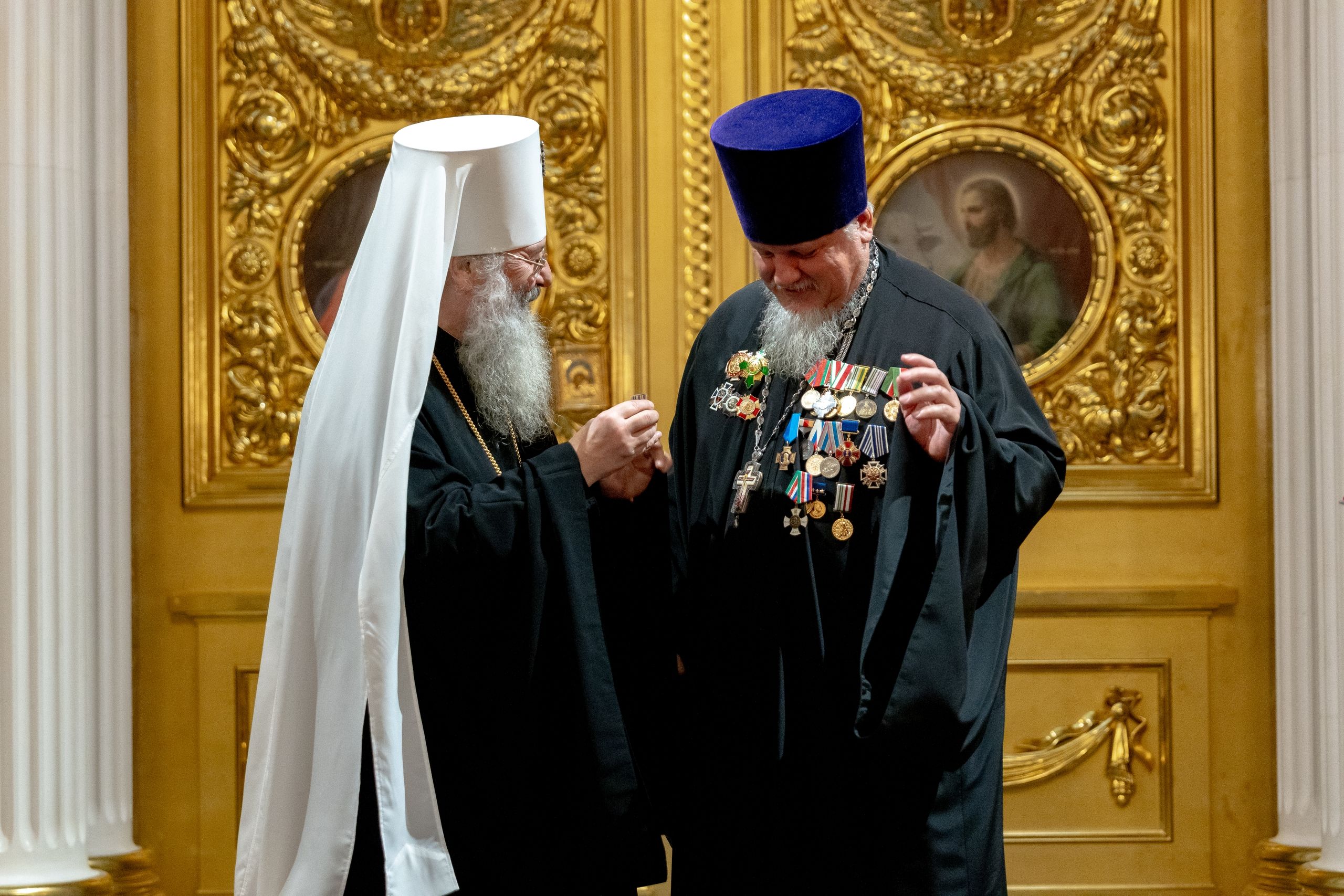 В завершение собрания глава Татарстанской митрополии вручил священнослужителям, отметившим в 2025 году юбилейные даты, церковные награды. Указом Святейшего Патриарха Московского и всея Руси Кирилла клирики Казанской епархии, особо потрудившиеся на благо Святой Церкви и отметившие памятные даты, удостоены следующих наград: