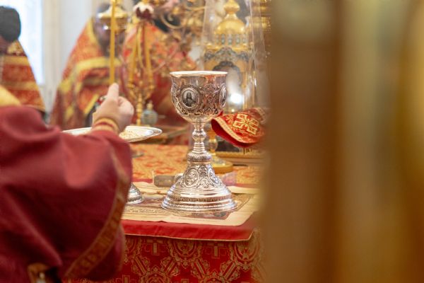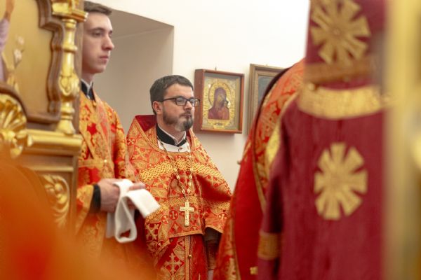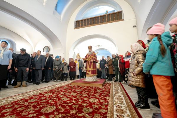 На мирной и сугубой ектениях были вознесены молитвы о Российском воинстве и о мире. По запричастном стихе проповедь произнёс игумен Пимен (Ивентьев). В завершение было совершено славление великомученице Варваре.