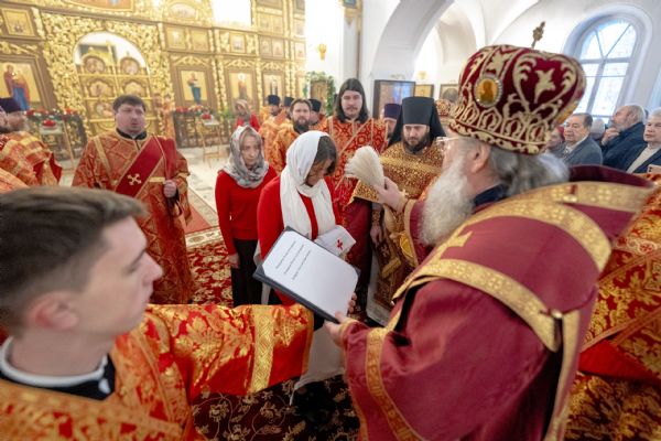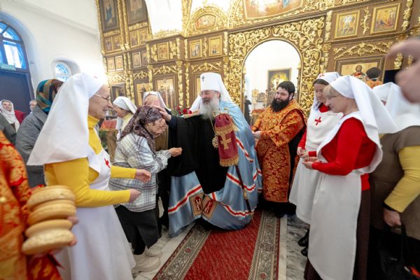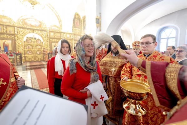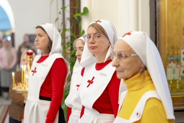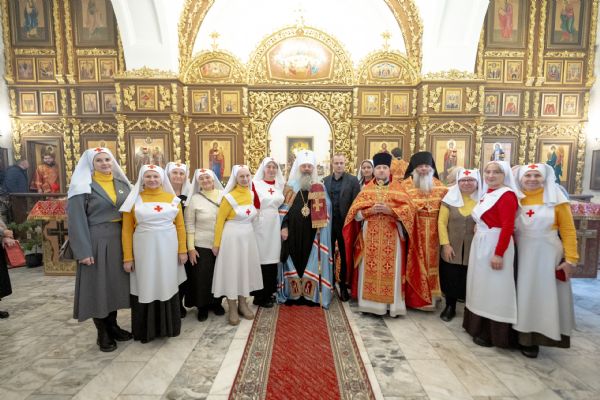 Перед началом богослужения архипастырь совершил посвящение сестёр милосердия новосозданного сестричества во имя святого равноапостольного князя Владимира.