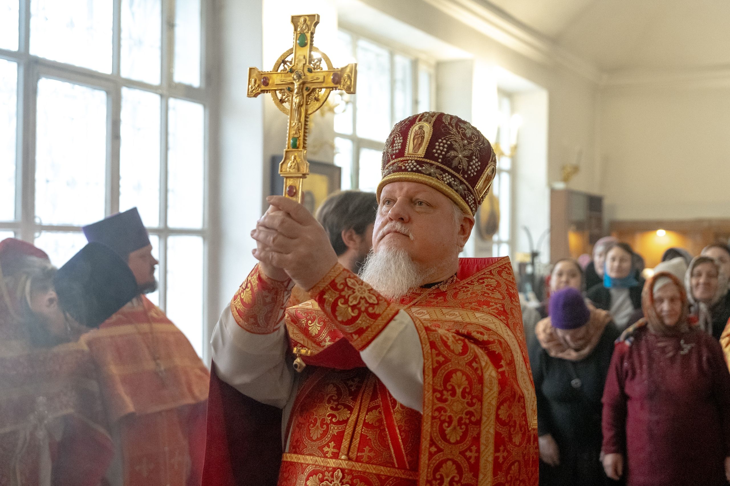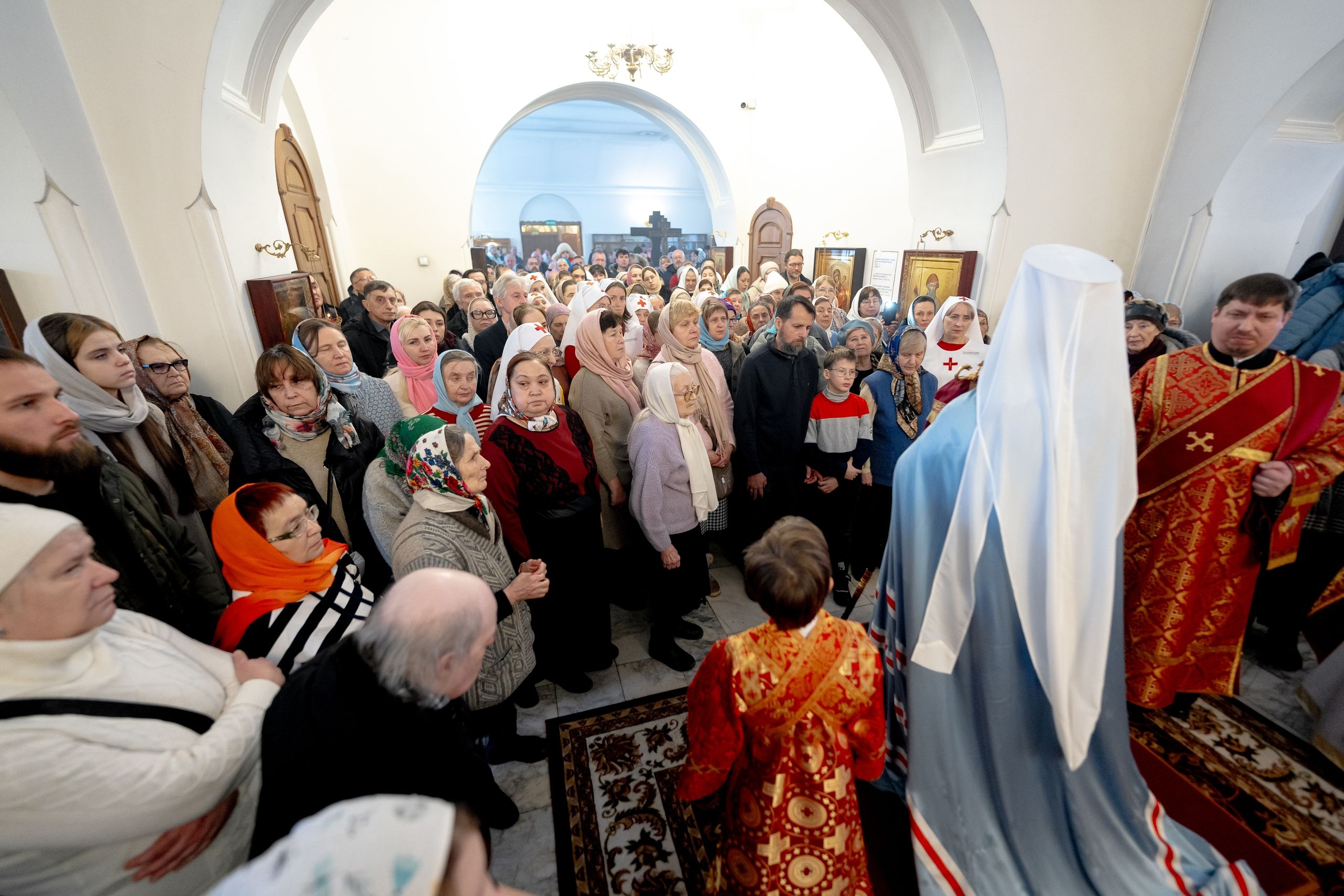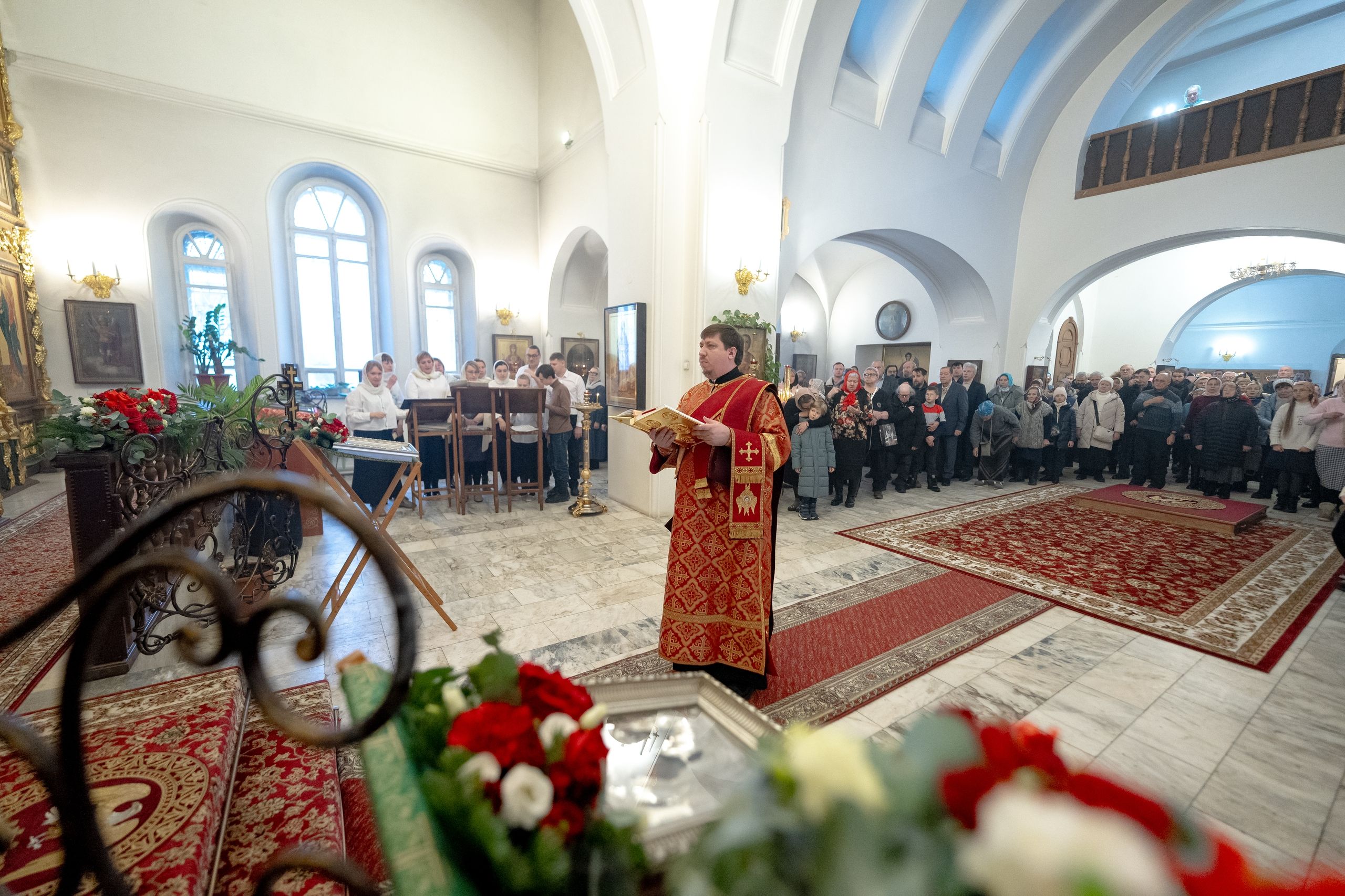 Песнопения исполнили два хора: архиерейский смешанный под управлением Марины Литвиненко и приходской под управлением Алисы Маминой.