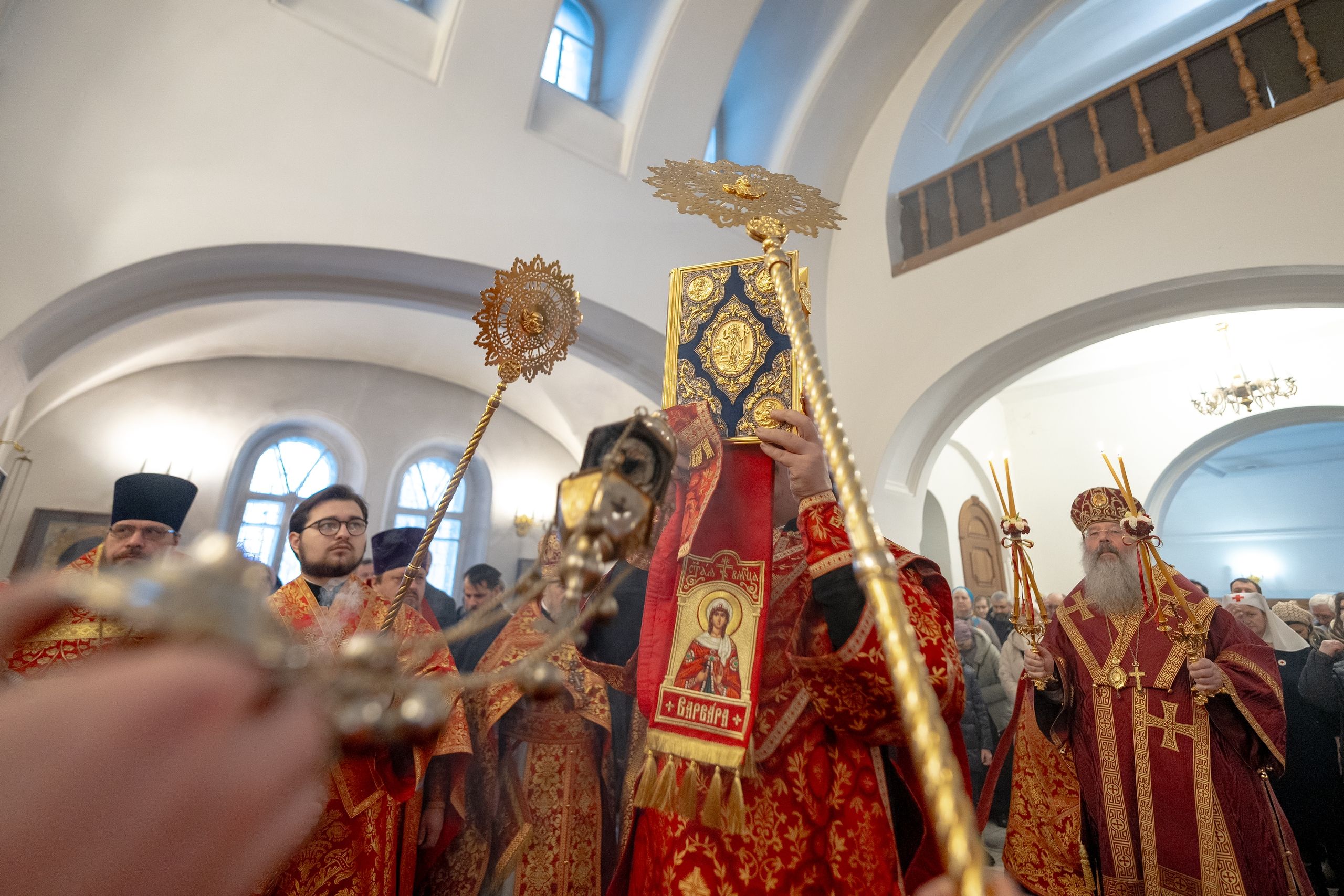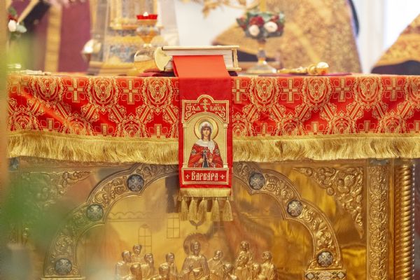 Сегодня мы молитвенно отмечаем праздник, который очень дорог нашему народу. Мощи святой великомученицы Варвары некогда были перенесены на нашу землю и ныне пребывают в Князь-Владимирском соборе Киева. Да, этот собор уже давно в руках раскольников, но мощи святой — здесь, на Русской земле, и великомученица была и остаётся покровительницей всего христианского рода, особенно же тех, кто её почитает. Сегодня мы с верой и любовью совершаем память этой удивительной святой, предстоя в замечательном храме, освящённом в её честь.
