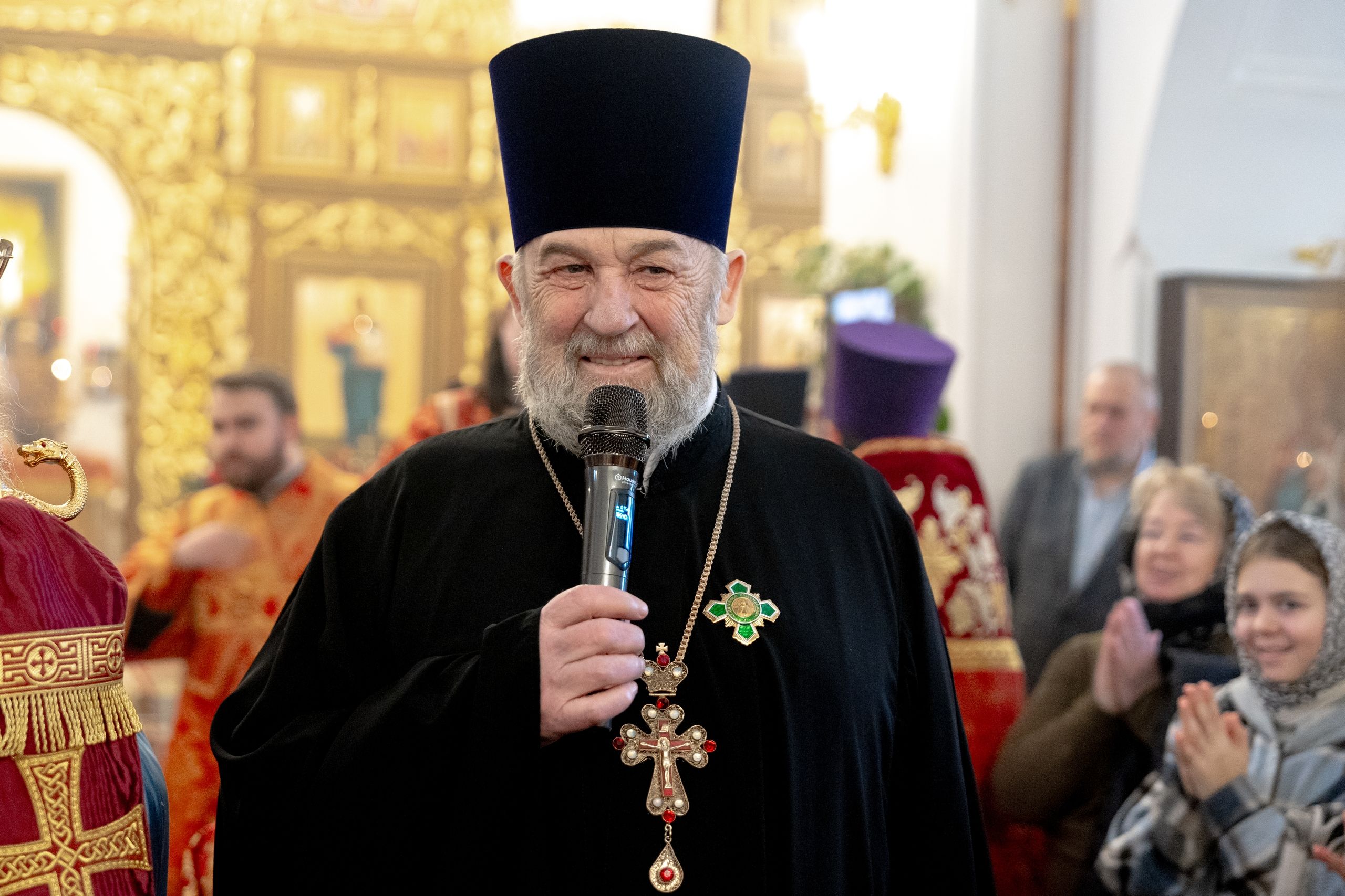 Митрополит Кирилл вручил протоиерею Виталию Тимофееву орден преподобного Сергия Радонежского. Патриаршей награды почётный настоятель Варваринского храма удостоен в благодарность за многолетние труды и в связи с 70-летием со дня рождения. Отец Виталий поблагодарил владыку за молитвы и сказал добрые слова прихожанам.
