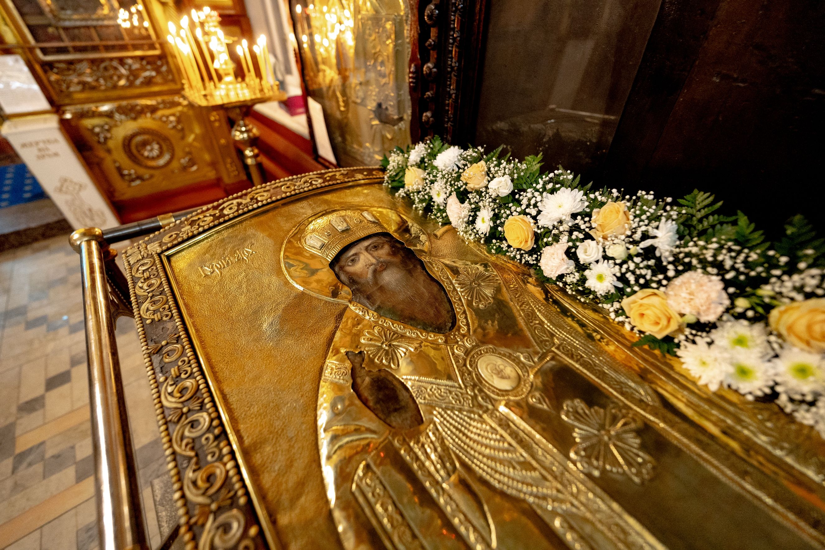 А сейчас мы с любовью молимся перед святыми мощами и желаем, чтобы каждый молитвенник и богомолец, пришедший сегодня в этот святой храм, получил утешение от апостола этой земли, от нашего первого епископа, который проложил дорогу христианству здесь, на Казанской земле.