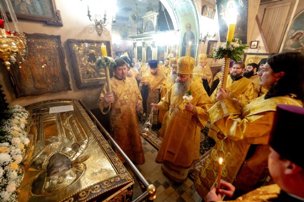После чтения Евангелия на полиелее проповедь произнёс протоиерей Николай Троицкий. В завершение духовенство пропело величание святителю Гурию у раки с мощами святого.