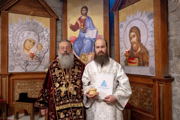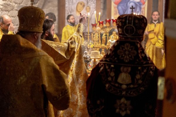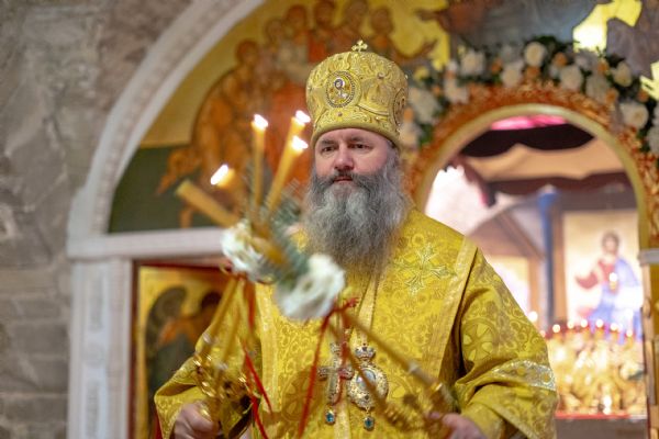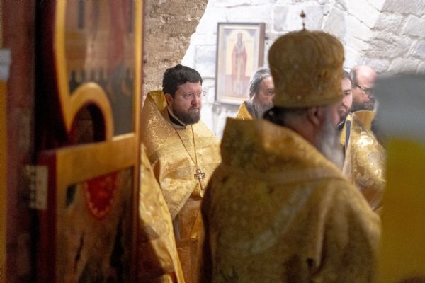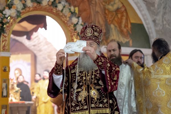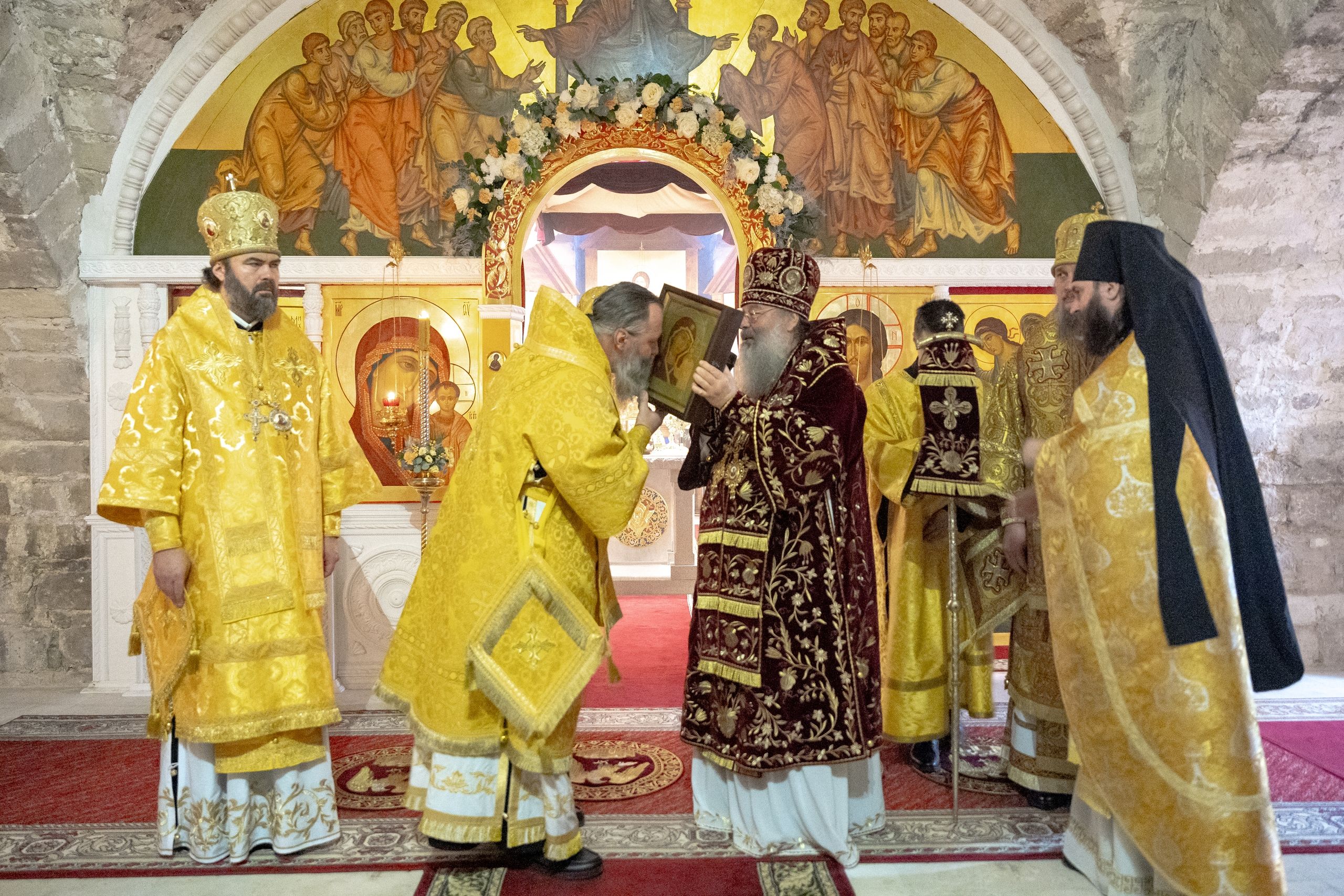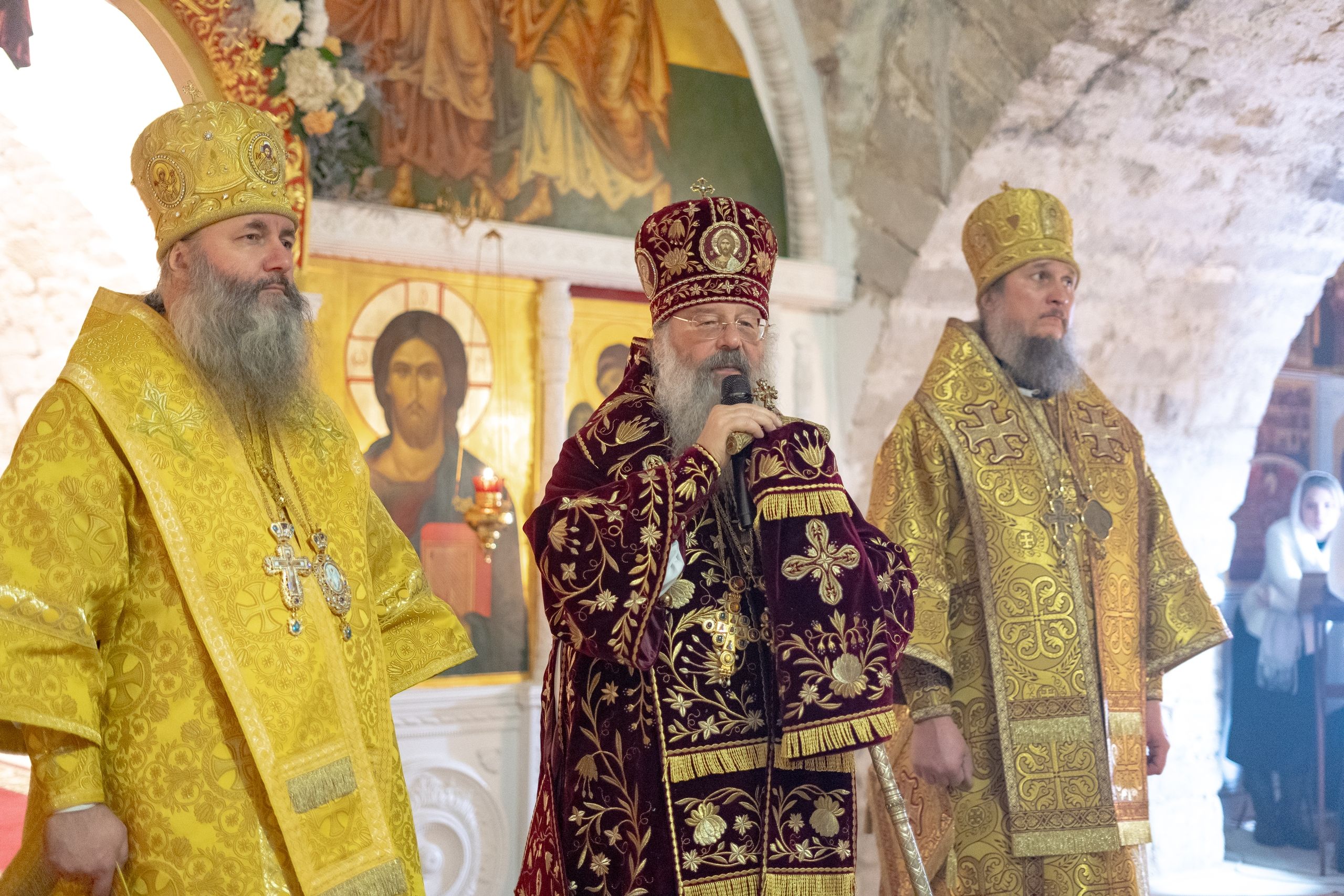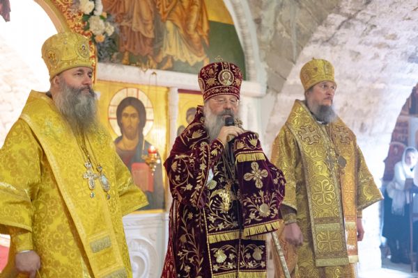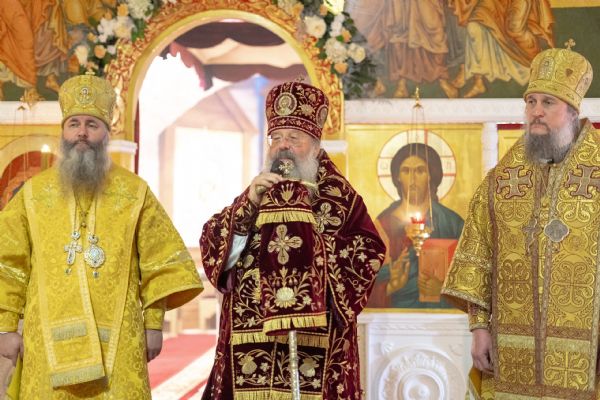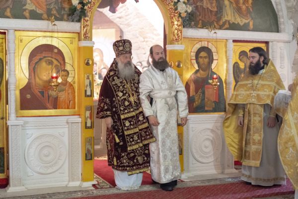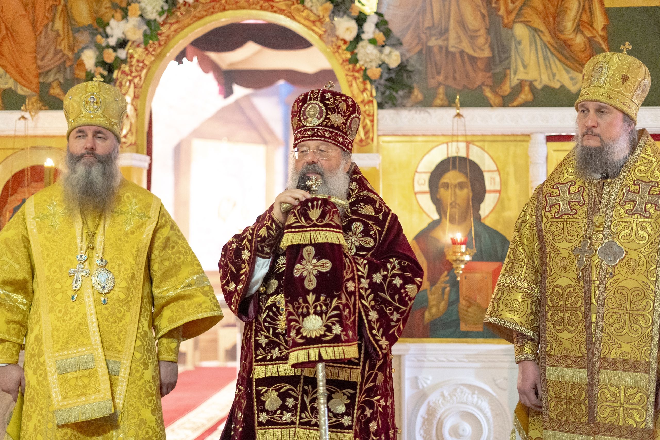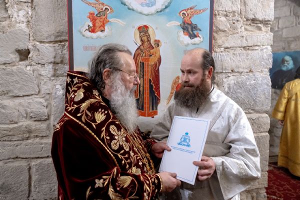 Я хотел бы сегодня поблагодарить тебя, отец Виктор, за труды, которые ты вместе со своими прихожанами и братией несёшь здесь все эти годы. Благодаря вашему усердию, молитве и любви к этому святому храму мы сегодня имеем возможность совершать Литургию на вновь освящённом престоле во имя святителя Гурия и всех святых, от века Богу угодивших.