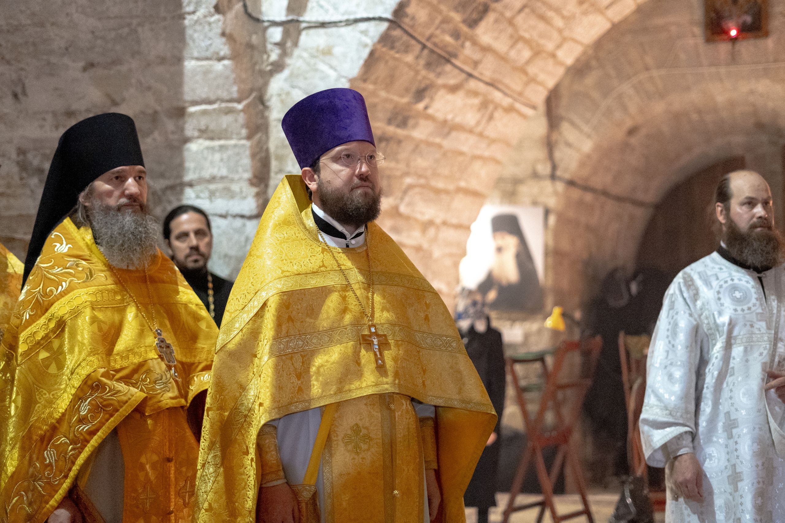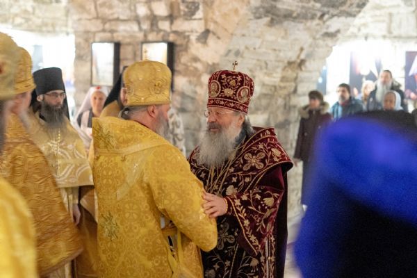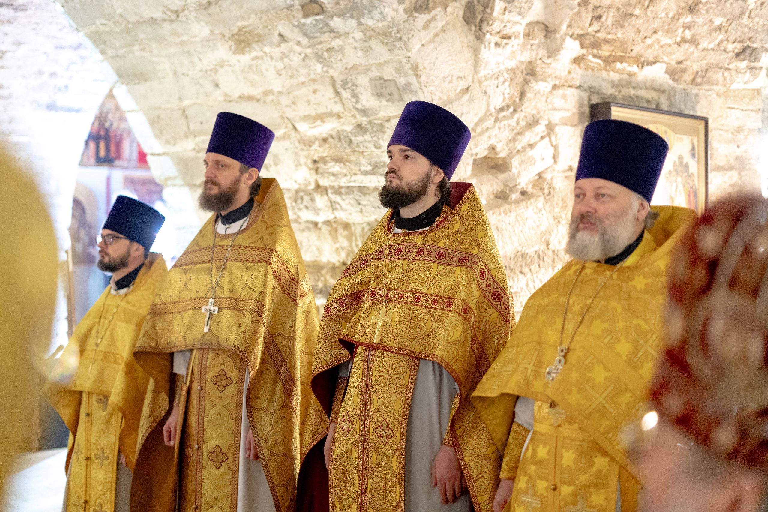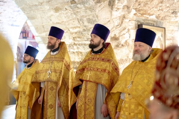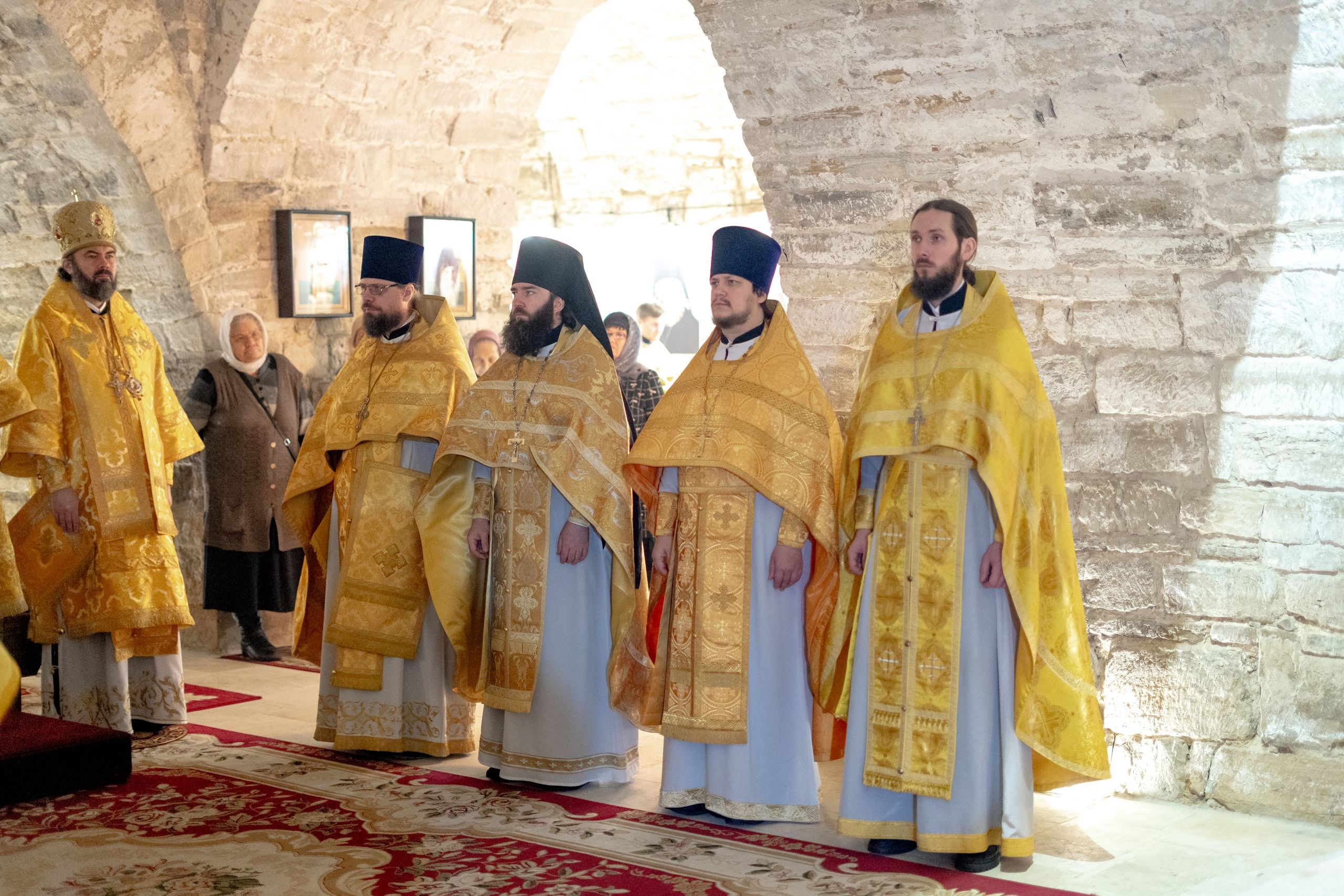 Архипастырям сослужили секретарь Татарстанской митрополии иеромонах Кирилл (Корытко), ключарь Благовещенского собора Казанского кремля иерей Виктор Бельских, настоятель Кизического монастыря города Казани игумен Пимен (Ивентьев), настоятель Свияжского Иоанно-Предтеченского монастыря игумен Аркадий (Логинов), настоятель Иаонно-Предтеченского монастыря города Казани игумен Алексий (Яцейко), благочинный III округа города Казани протоиерей Алексий Краевский, настоятель Софийского прихода города Казани протоиерей Александр Павлов, ректор Казанской духовной семинарии иерей Никита Кузнецов, настоятель архиерейского подворья священномученика Кирилла Казанского иерей Василий Крючков, настоятель Варваринского храма города Казани иерей Димитрий Кудрявский, настоятель Спасо-Евдокиевского храма города Казани иерей Димитрий Аликин.