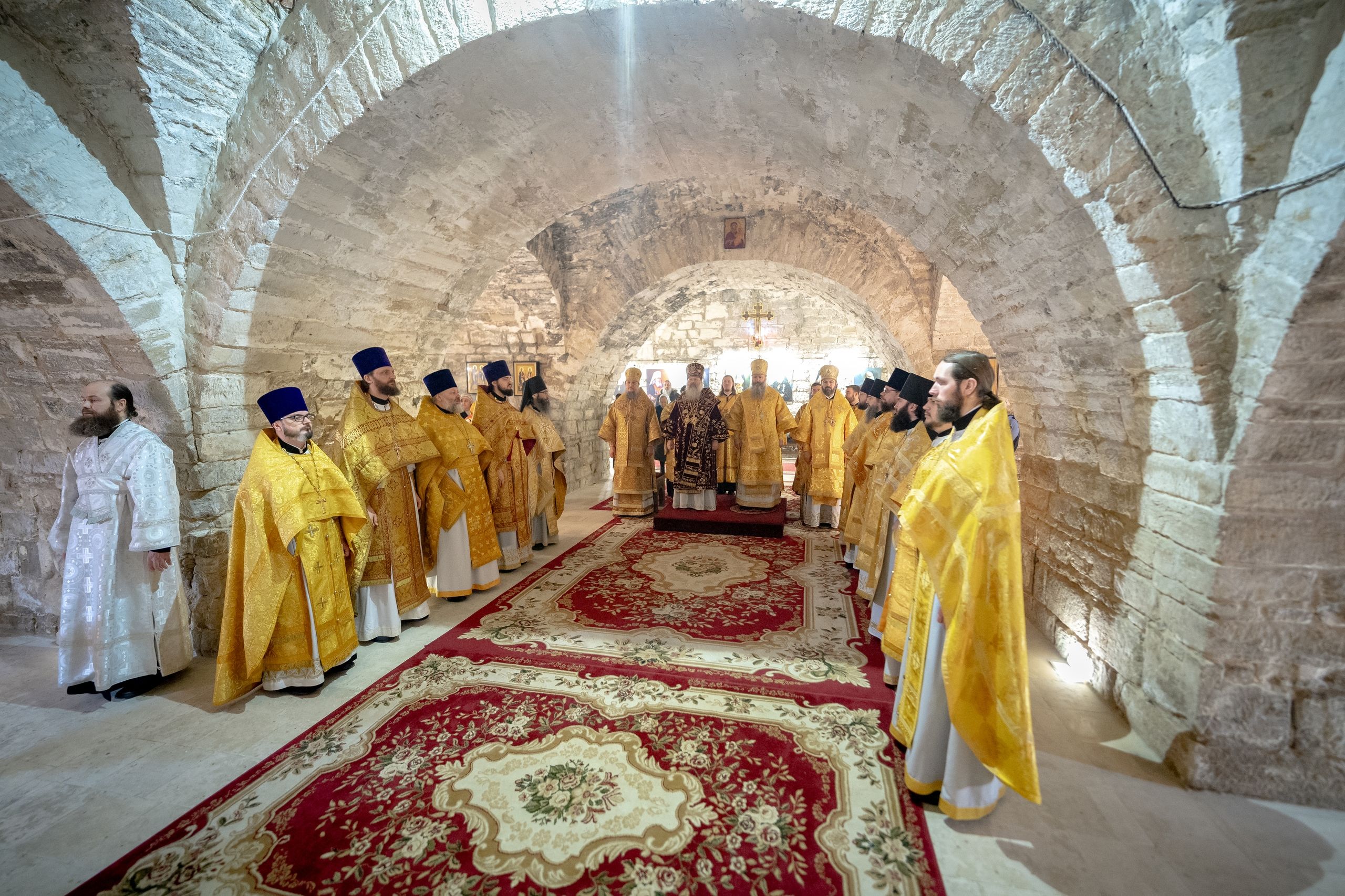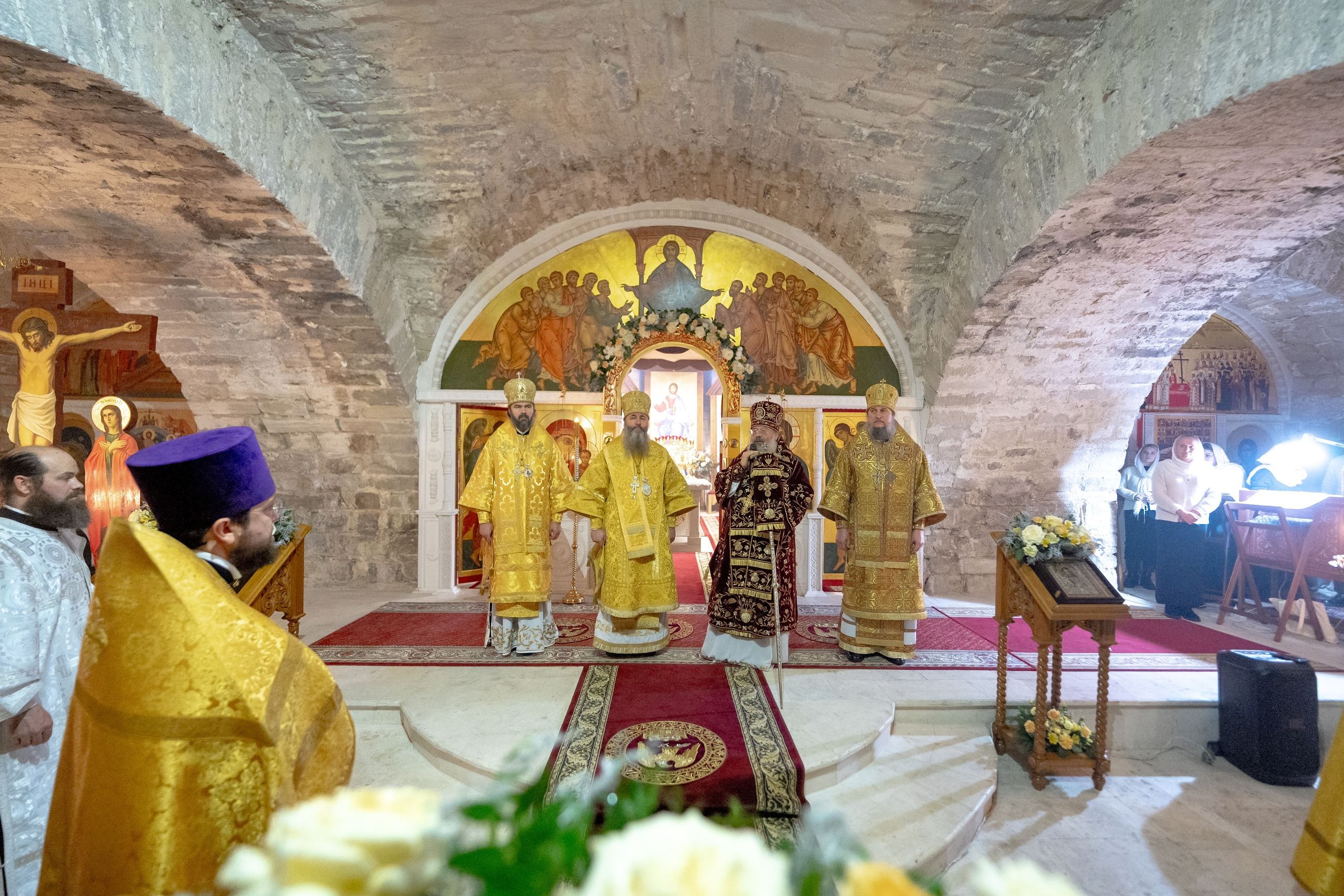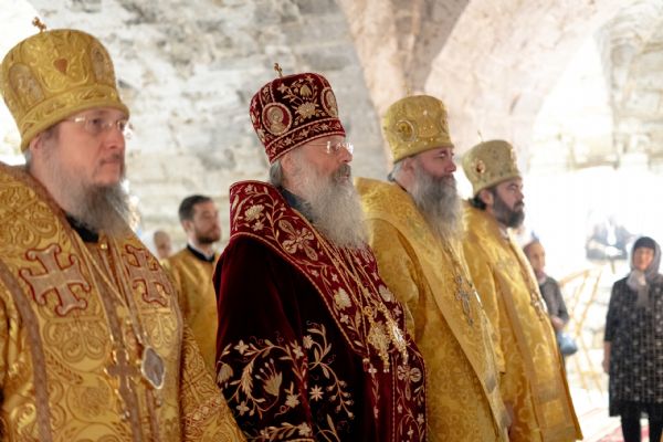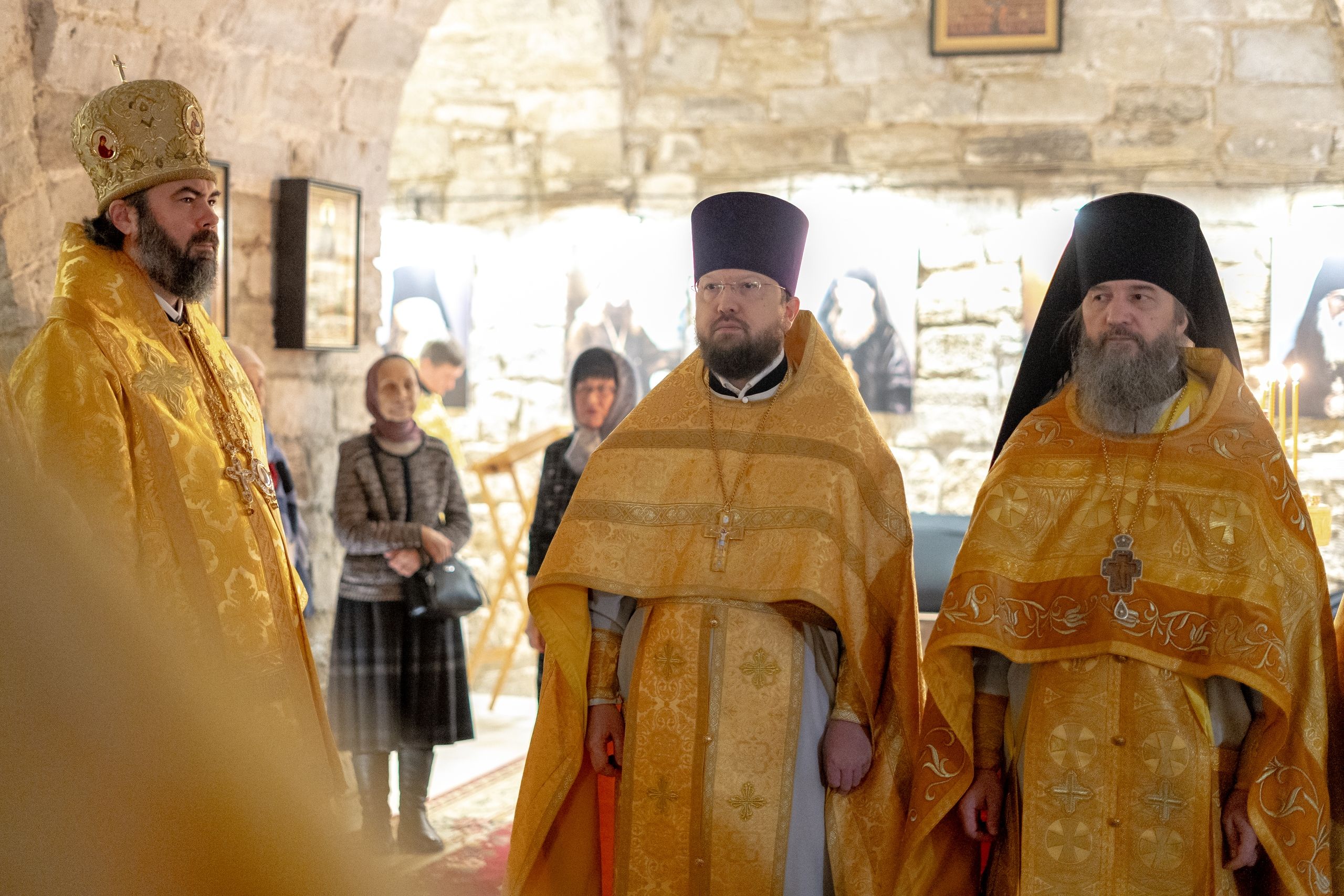Архипастырям сослужили секретарь Татарстанской митрополии иеромонах Кирилл (Корытко), ключарь Благовещенского собора Казанского кремля иерей Виктор Бельских, настоятель Кизического монастыря города Казани игумен Пимен (Ивентьев), настоятель Свияжского Иоанно-Предтеченского монастыря игумен Аркадий (Логинов), настоятель Иаонно-Предтеченского монастыря города Казани игумен Алексий (Яцейко), благочинный III округа города Казани протоиерей Алексий Краевский, настоятель Софийского прихода города Казани протоиерей Александр Павлов, ректор Казанской духовной семинарии иерей Никита Кузнецов, настоятель архиерейского подворья священномученика Кирилла Казанского иерей Василий Крючков, настоятель Варваринского храма города Казани иерей Димитрий Кудрявский, настоятель Спасо-Евдокиевского храма города Казани иерей Димитрий Аликин.