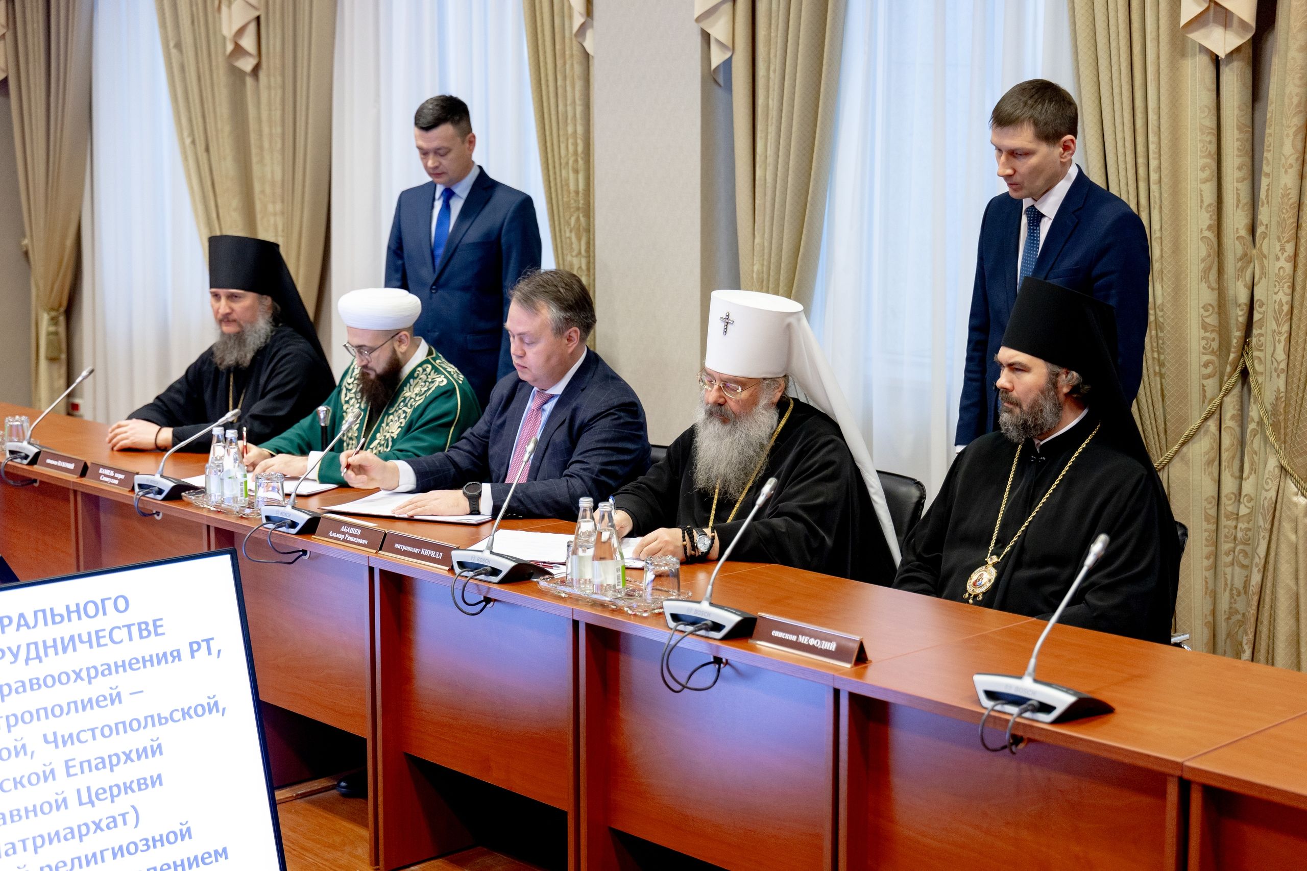 Подписи на документе поставили министр здравоохранения Республики Татарстан Альмир Абашев, митрополит Казанский и Татарстанский Кирилл, муфтий Татарстана Камиль хазрат Самигуллин.
