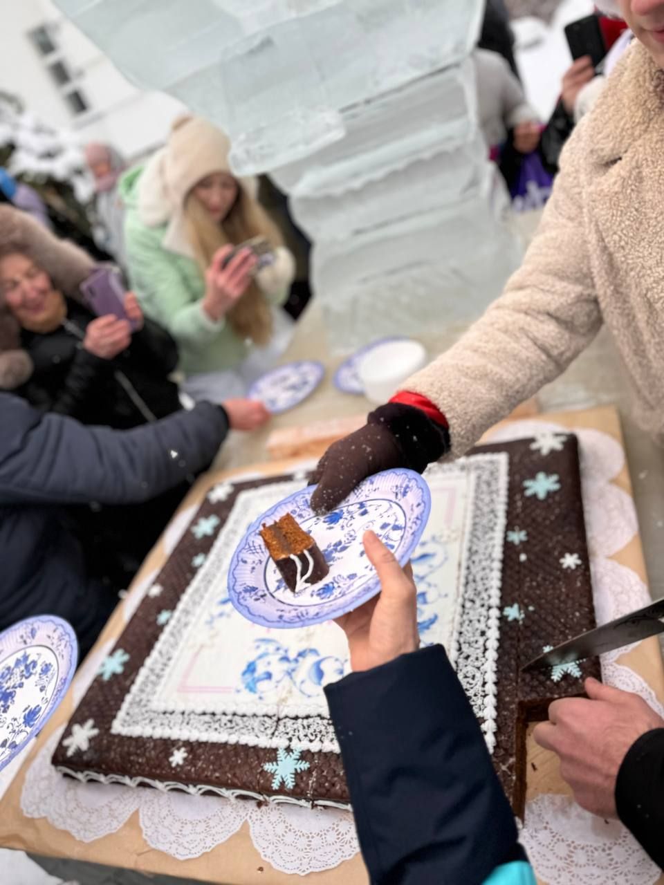 Почётные гости разрезали пряничный торт, которым затем угостили пришедших на праздник детей и взрослых, осмотрели работы мастеров, принявших участие в конкурсе пряничного искусства.