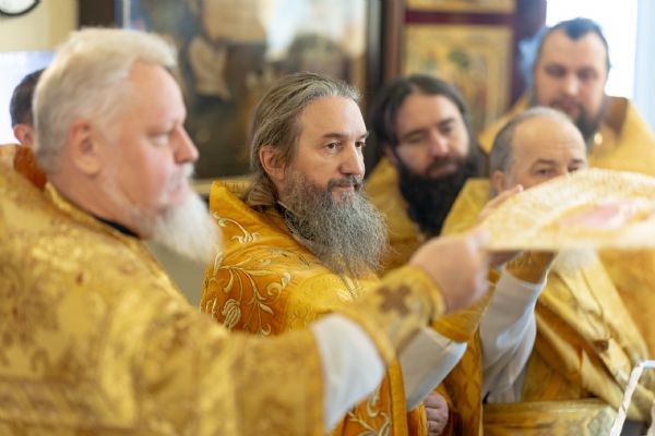 Его Высокопреосвященству сослужили секретарь Татарстанской митрополии иеромонах Кирилл (Корытко), благочинный I округа города Казани протоиерей Владимир Самойленко, наместник Свияжского Успенского мужского монастыря игумен Аркадий (Логинов), настоятель Иоанно-Предтеченского мужского монастыря города Казани игумен Алексий (Яцейко), преподаватели Казанской духовной семинарии в священном сане, клирики семинарского храма.