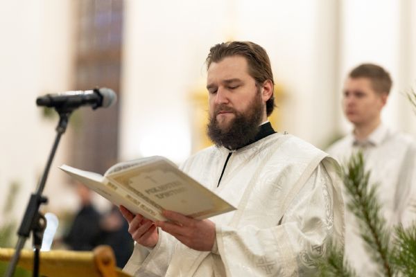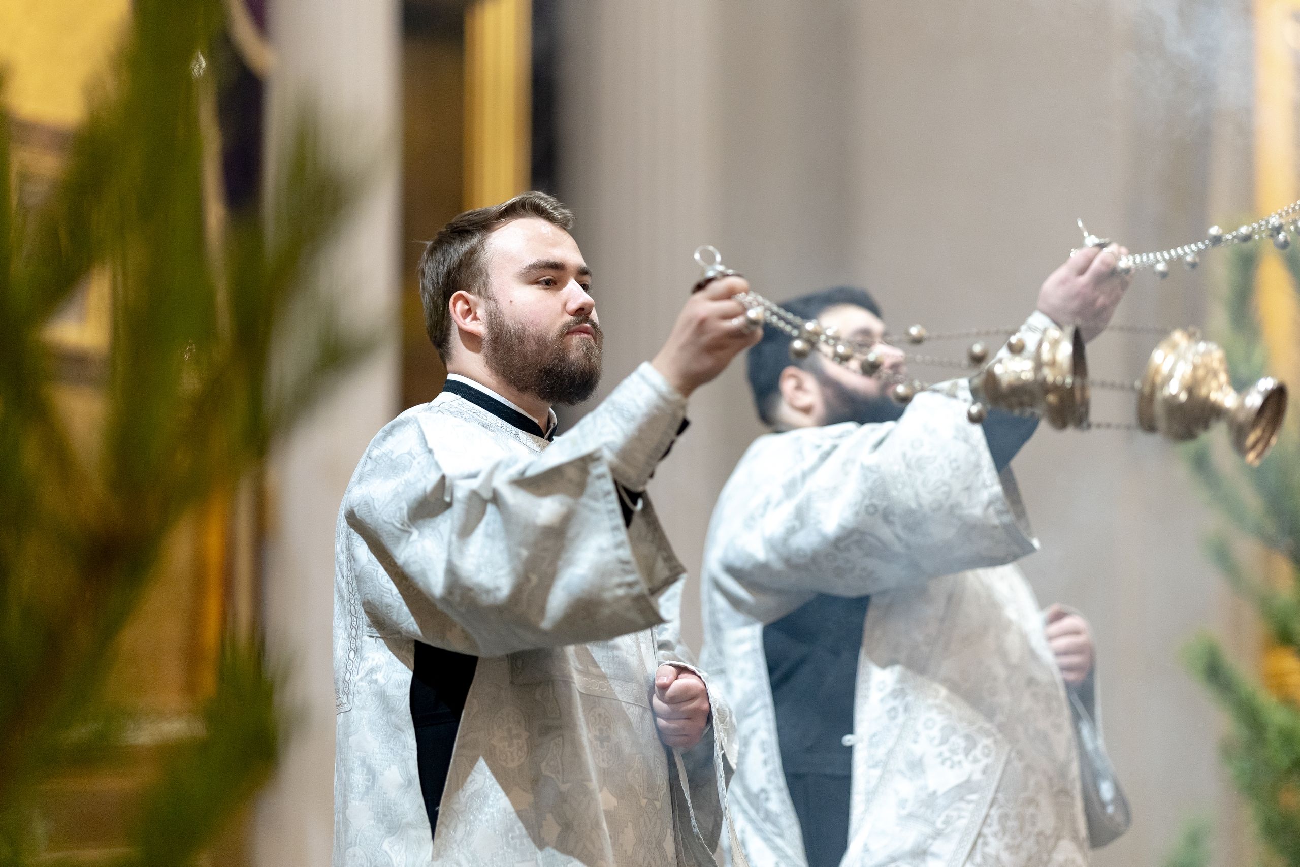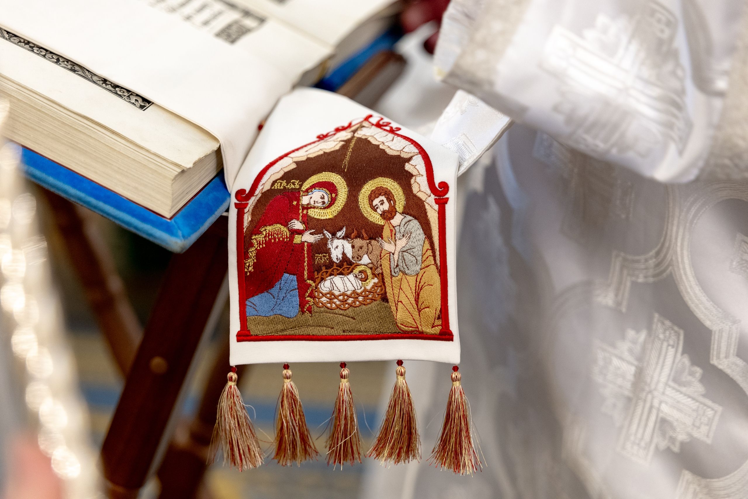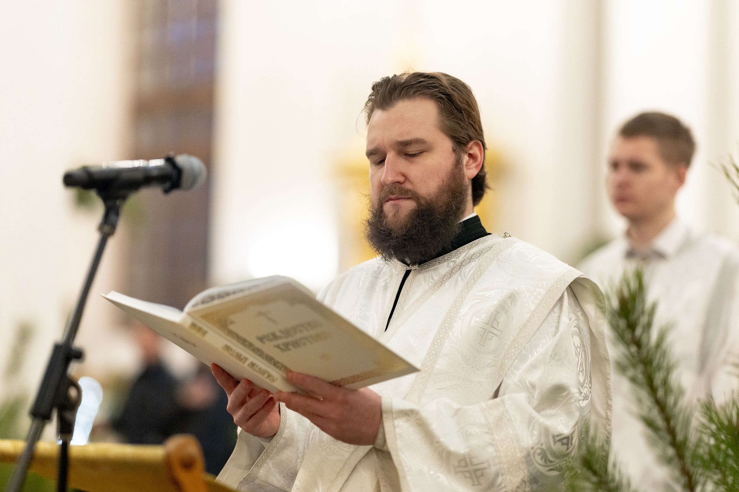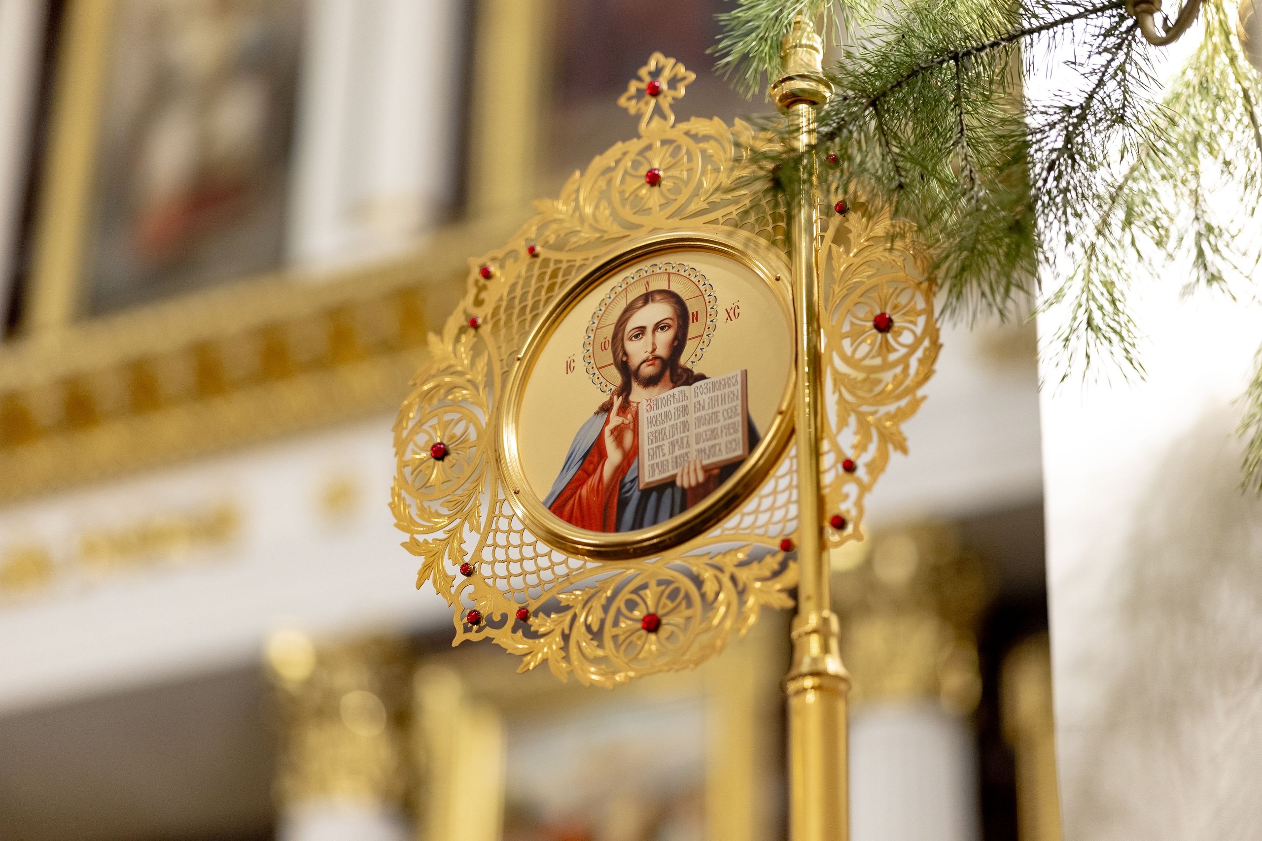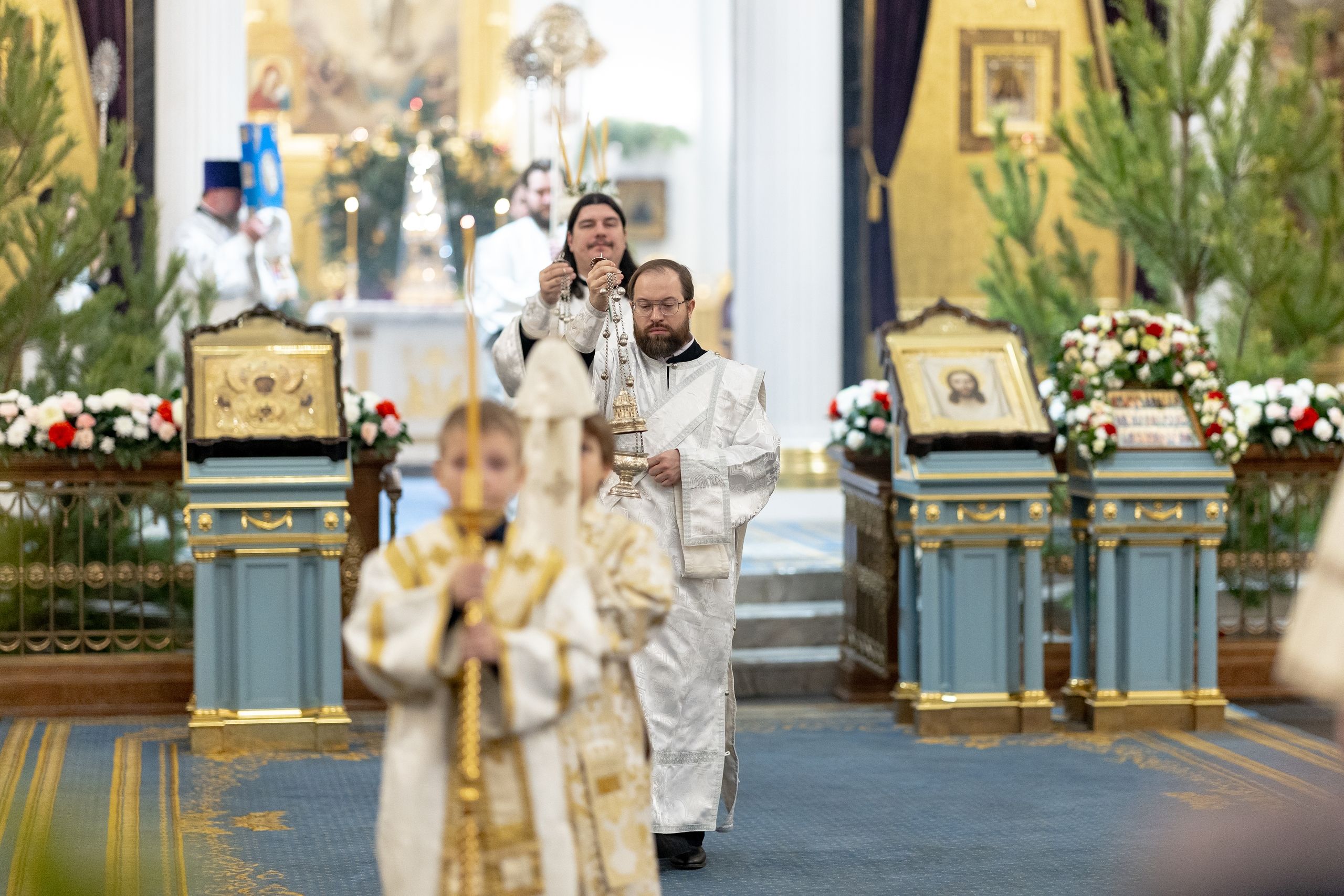 В завершение богослужения на середину храма была вынесена свеча, символизирующая Рождественскую звезду. Духовенство и хор пропели тропарь и кондак праздника Рождества Христова.