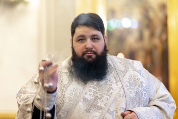 На мирной и сугубой ектениях были вознесены молитвы о Российском воинстве и о мире. По запричастном стихе проповедь произнёс насельник монастыря иеромонах Гермоген (Рубан).