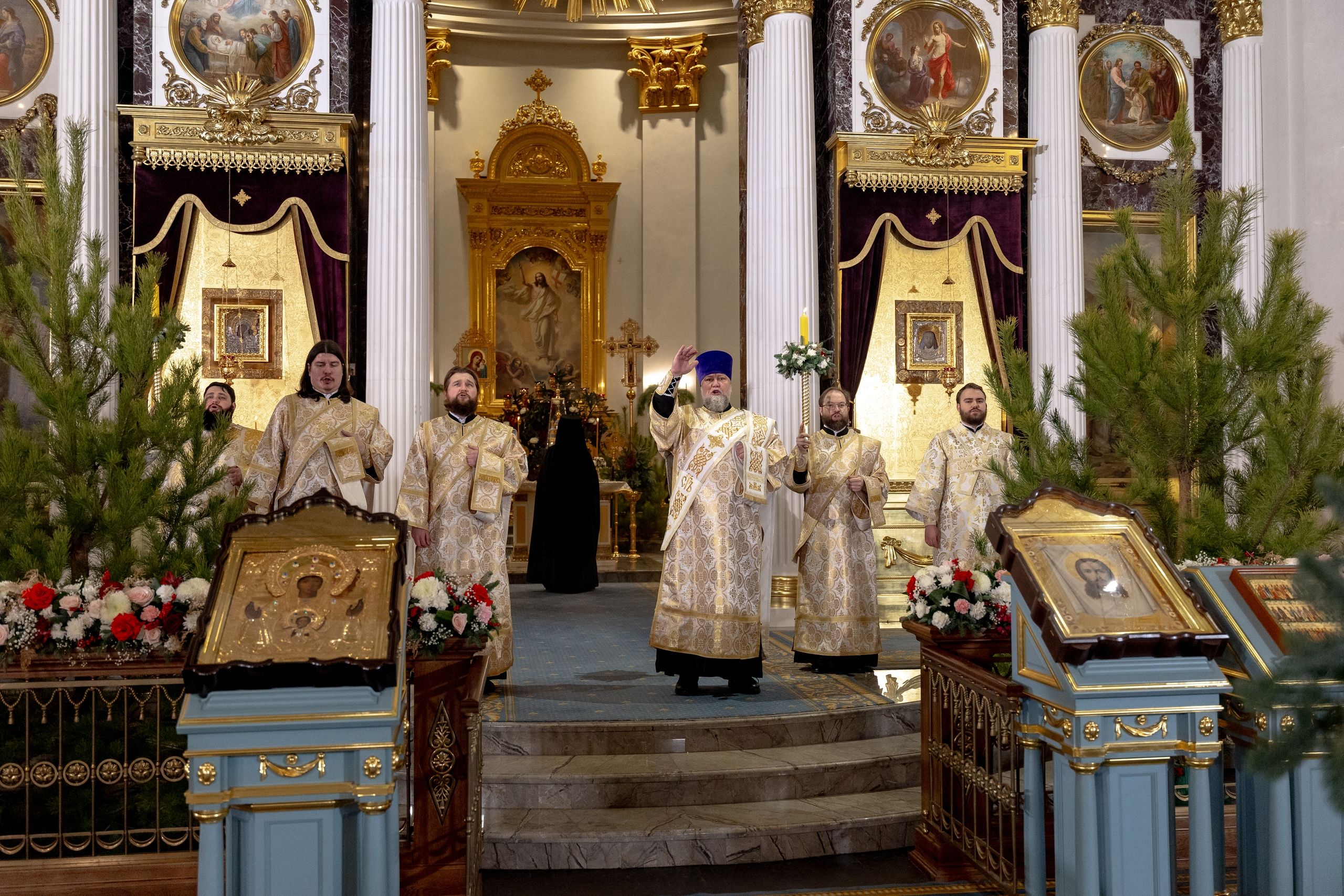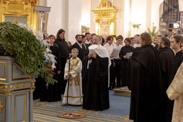 Вечером 6 января 2026 года, в канун праздника Рождества Господа Бога и Спаса нашего Иисуса Христа, митрополит Казанский и Татарстанский Кирилл совершил всенощное бдение в кафедральном соборе Казанской иконы Божией Матери Казанского Богородицкого мужского монастыря.