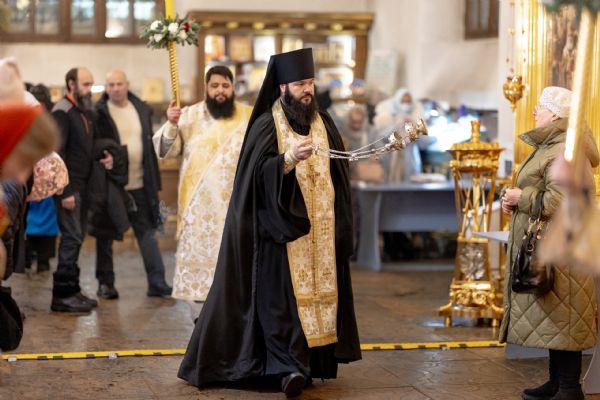 Его Высокопреосвященству сослужили наместник игумен Марк (Виленский) и насельники Богородицкой обители в священном сане.