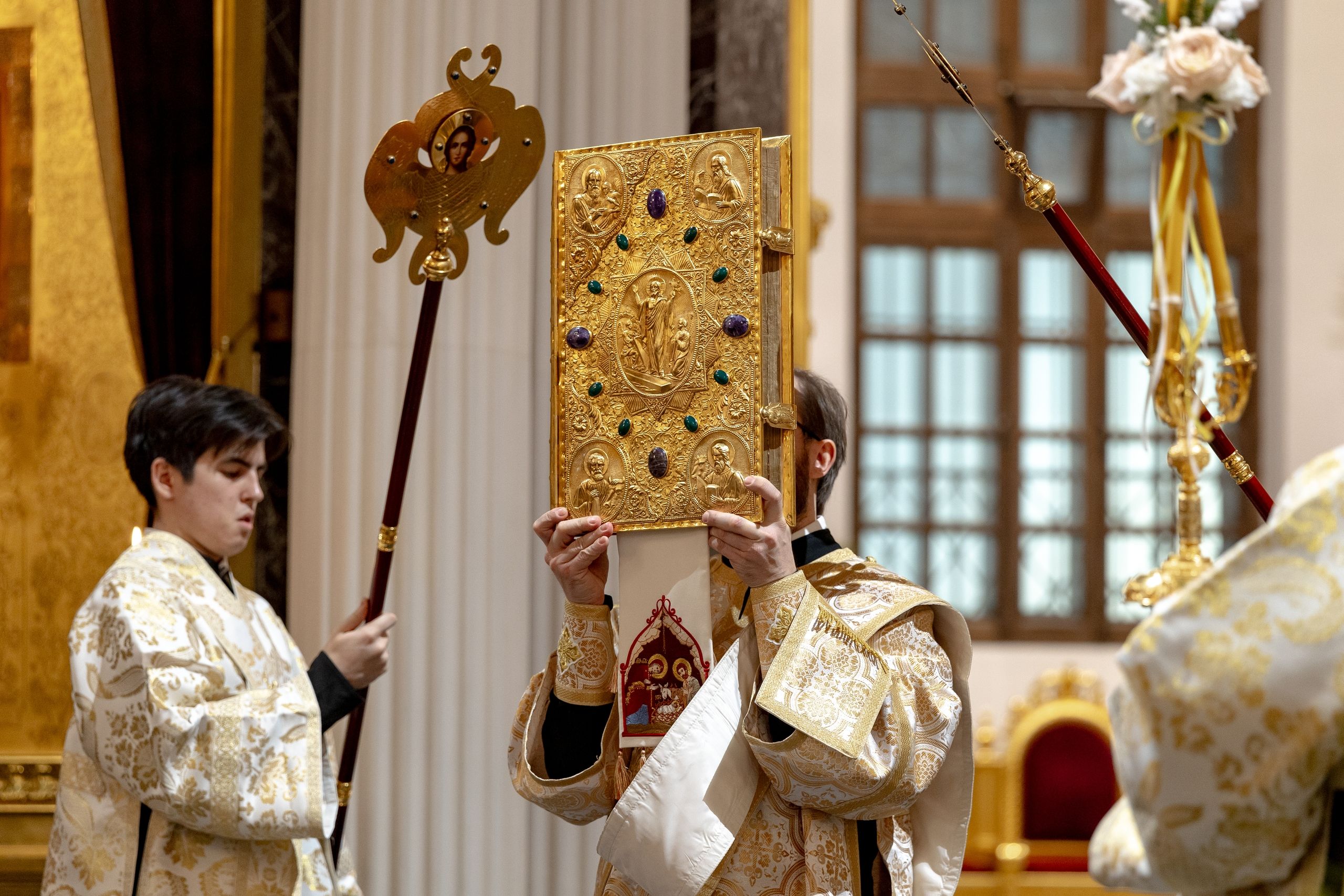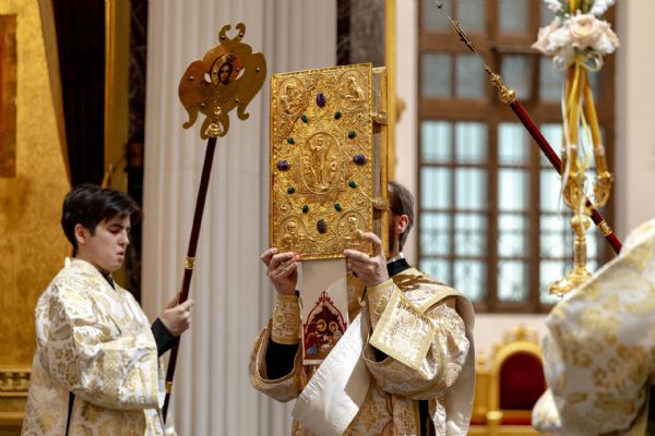 Песнопения исполнили два архиерейских хора: смешанный под управлением Марины Литвиненко и мужской под управлением Дениса Рогова.
