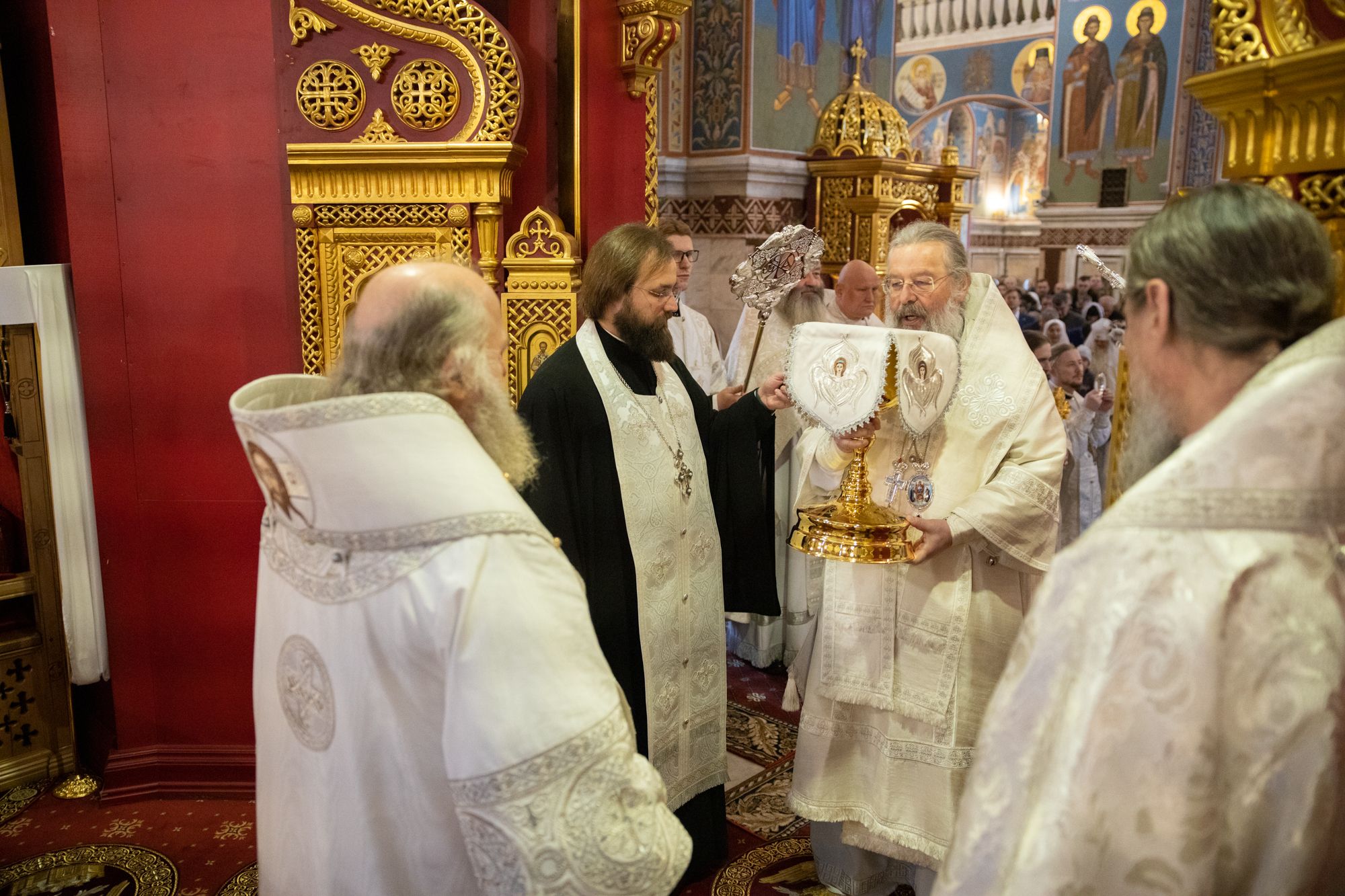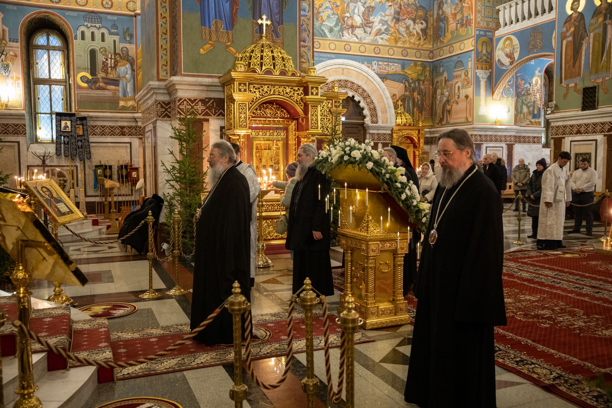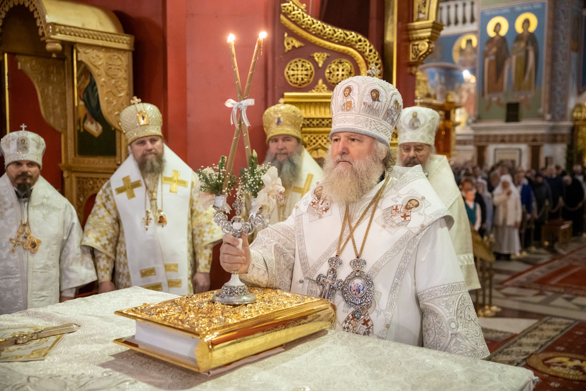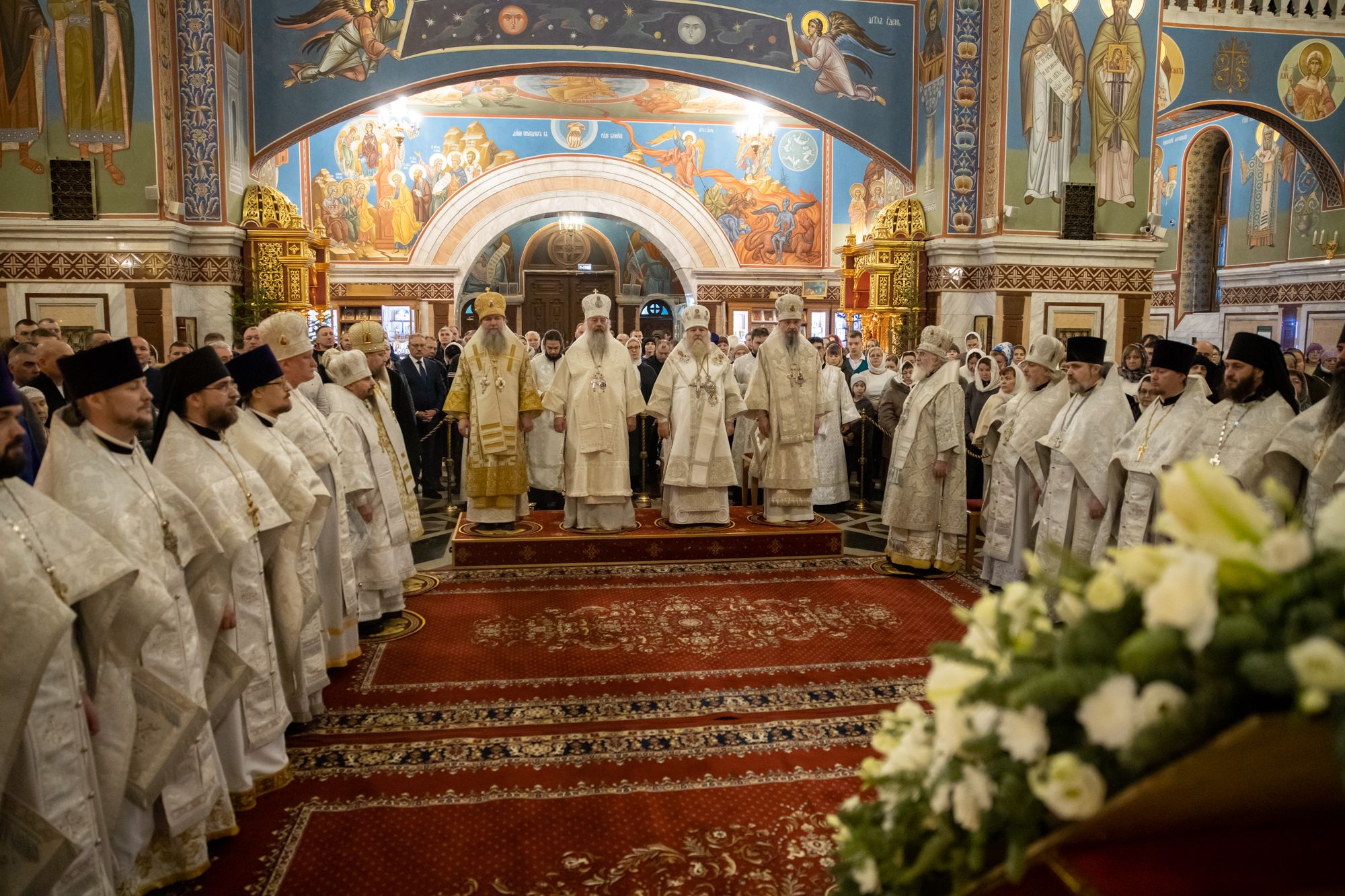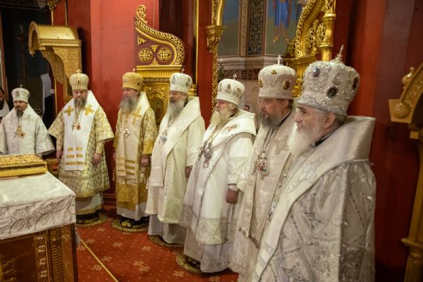 Божественную литургию совершили митрополит Ханты-Мансийский и Сургутский Павел, митрополит Казанский и Татарстанский Кирилл, митрополит Сингапурский и Юго-Восточно-Азиатский Сергий, митрополит Екатеринбургский и Верхотурский Евгений, архиепископ Салехардский и Ново-Уренгойский Николай, епископ Тихвинский и Лодейнопольский Мстислав, епископ Югорский и Няганский Михаил.