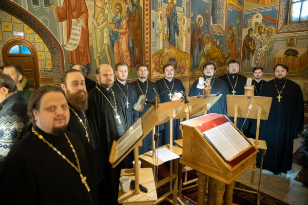 Архипастырям сослужили клирики храмов города Ханты-Мансийска и священнослужители, сопровождающие архипастырей во время визита в Ханты-Мансийскую епархию.