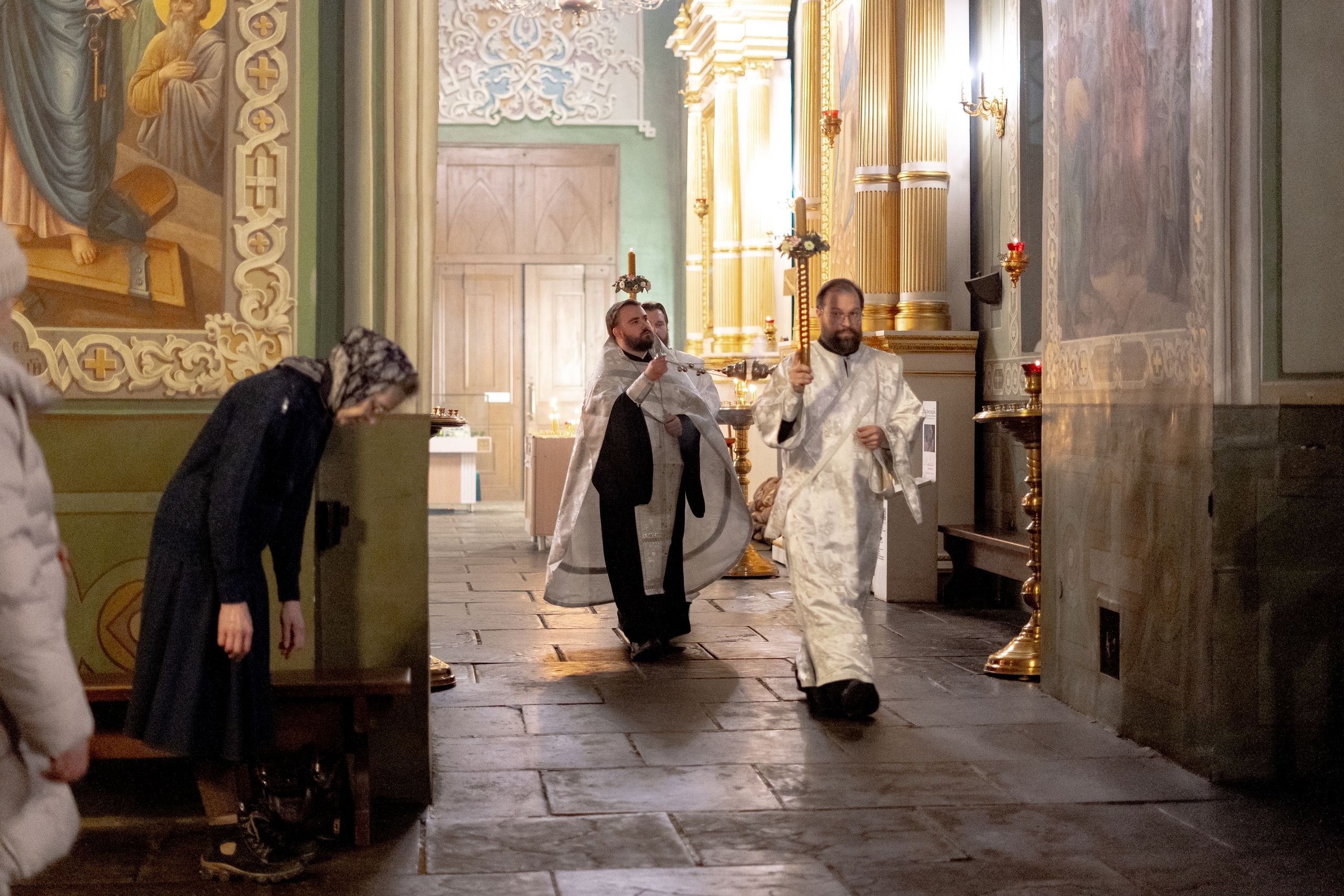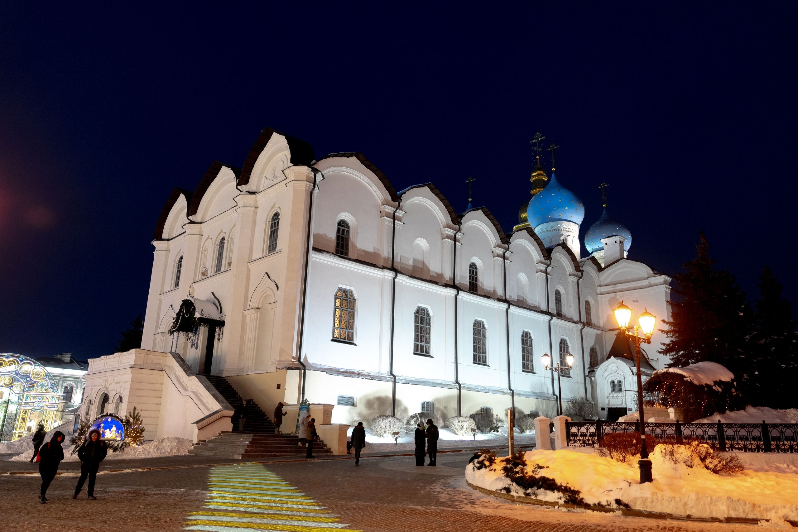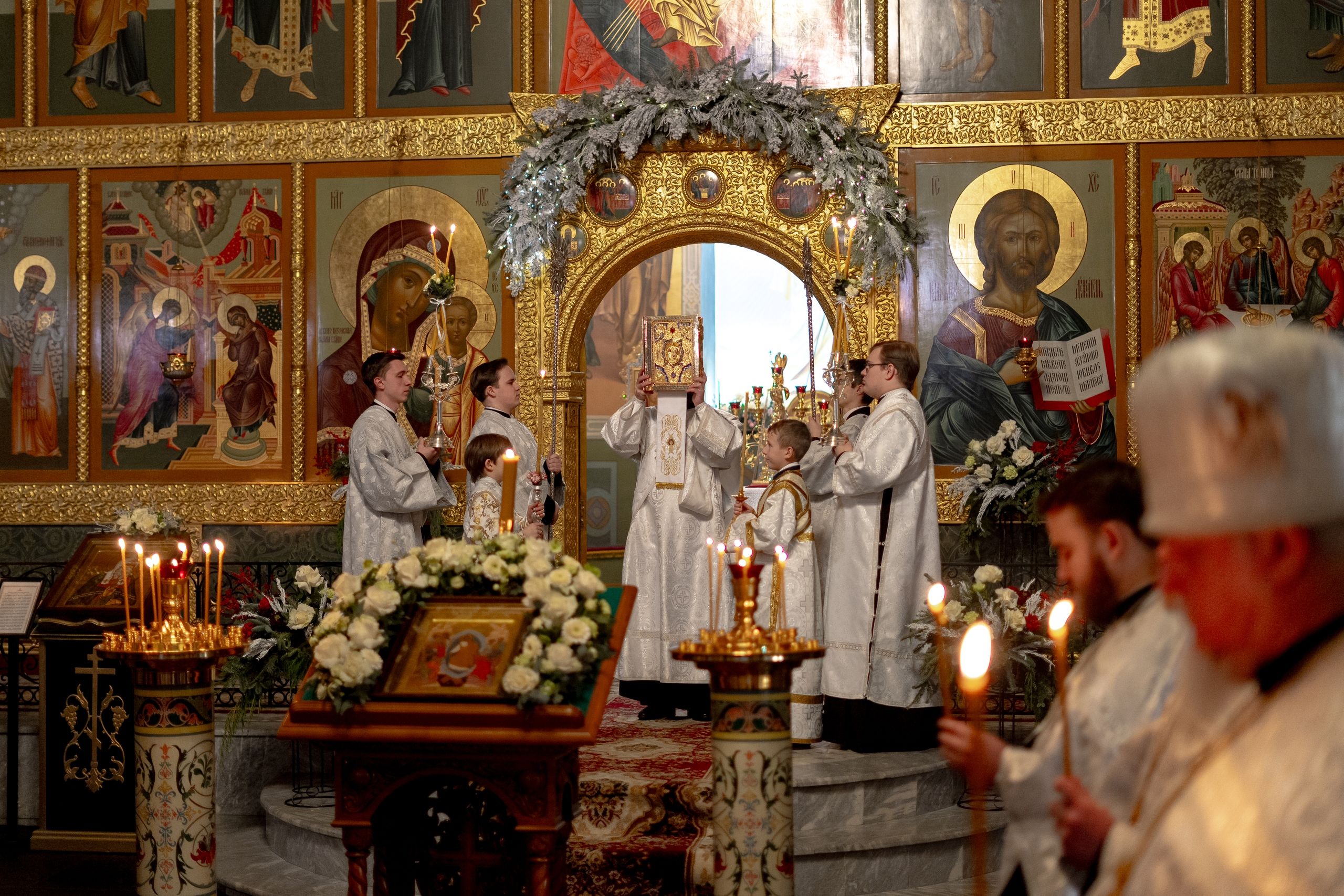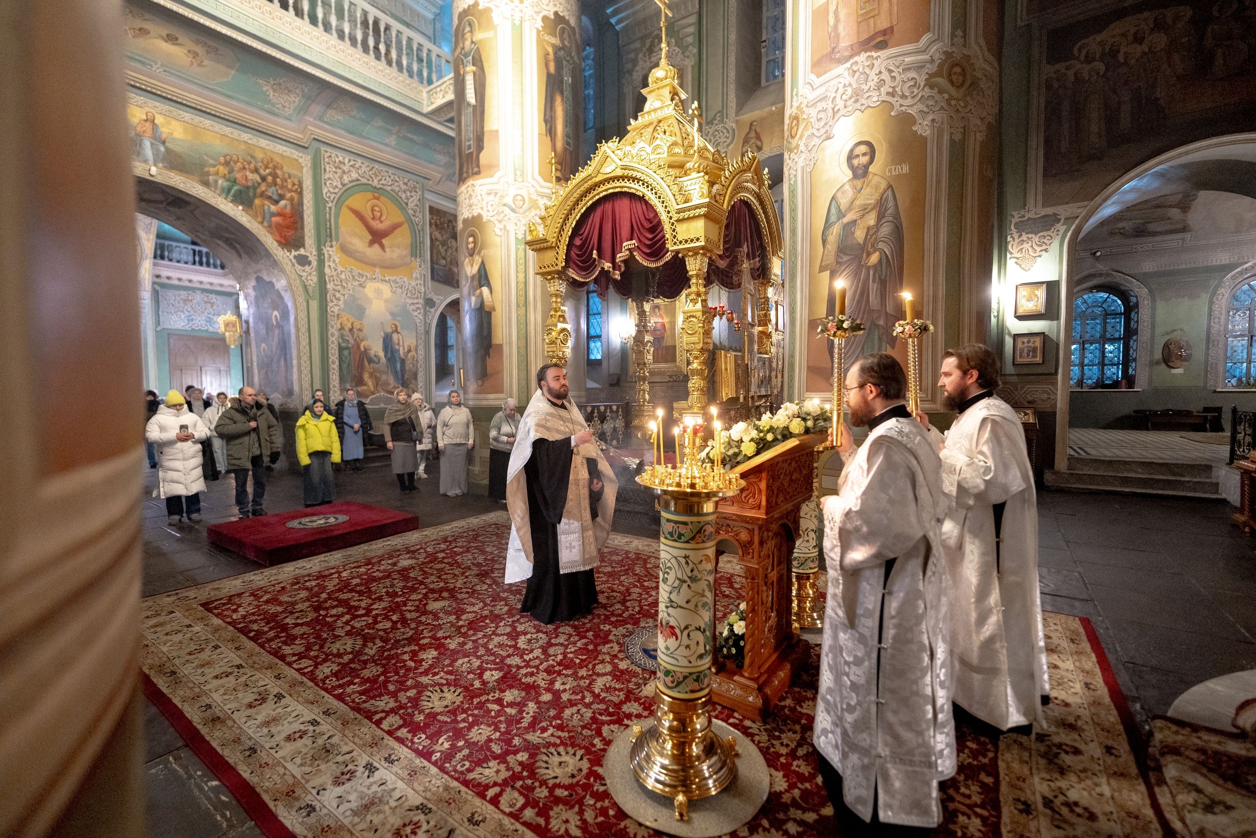 Его Высокопреосвященству сослужили благочинный I Казанского округа протоиерей Владимир Самойленко, ключарь Благовещенского собора иерей Виктор Бельских, клирик собора иерей Александр Махов, клирики храма преподобного Серафима Саровского города Казани иерей Никита Ярош и иерей Роман Ермолаев.