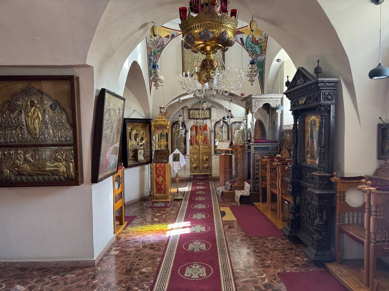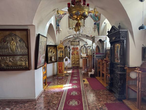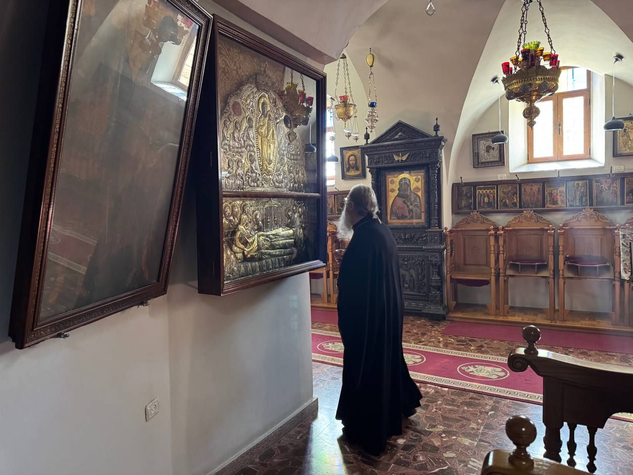 После беседы с Патриархом Феофилом митрополит Кирилл в сопровождении священнослужителей посетил монастырь святых равноапостольных Константина и Елены при Иерусалимской Патриархии.