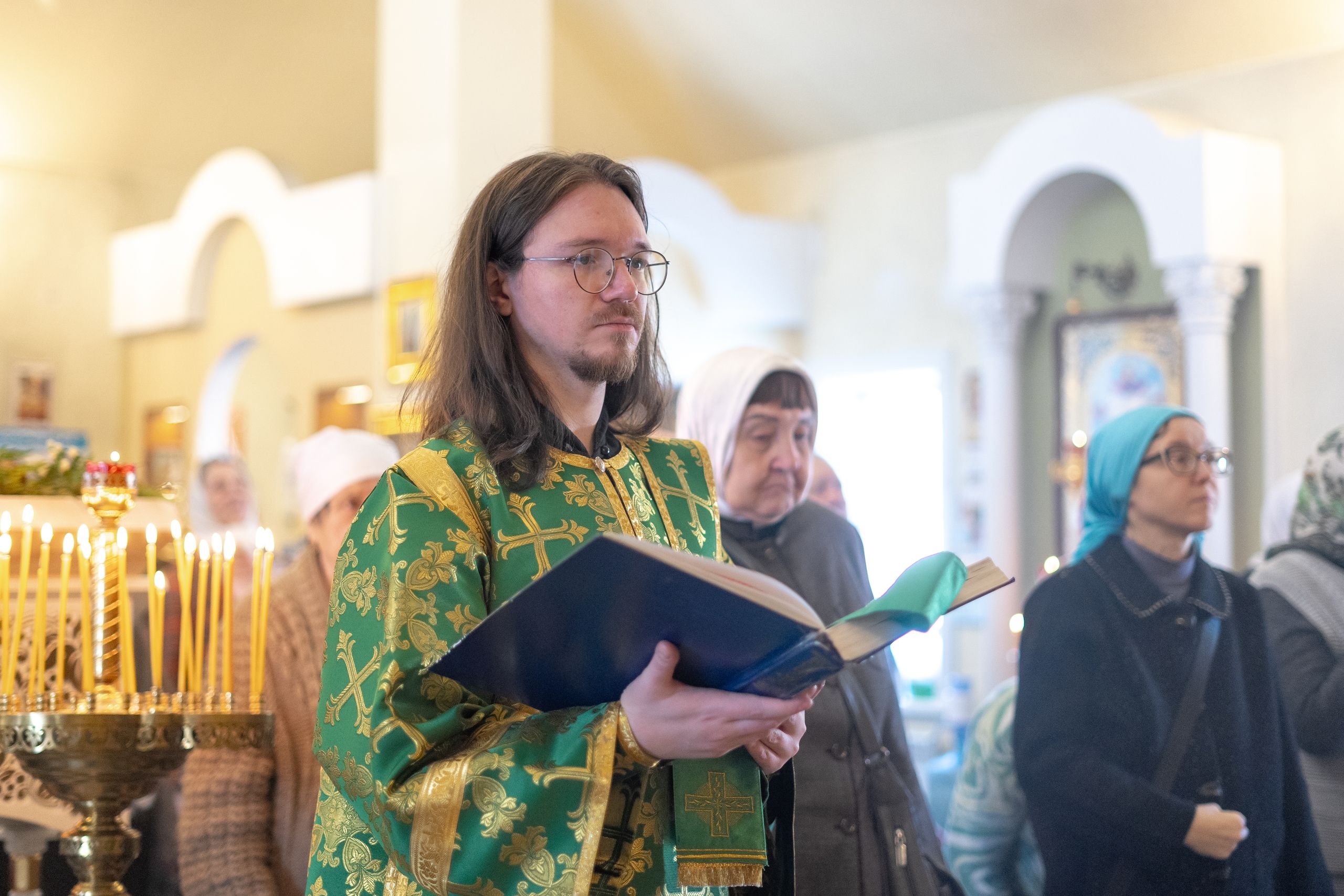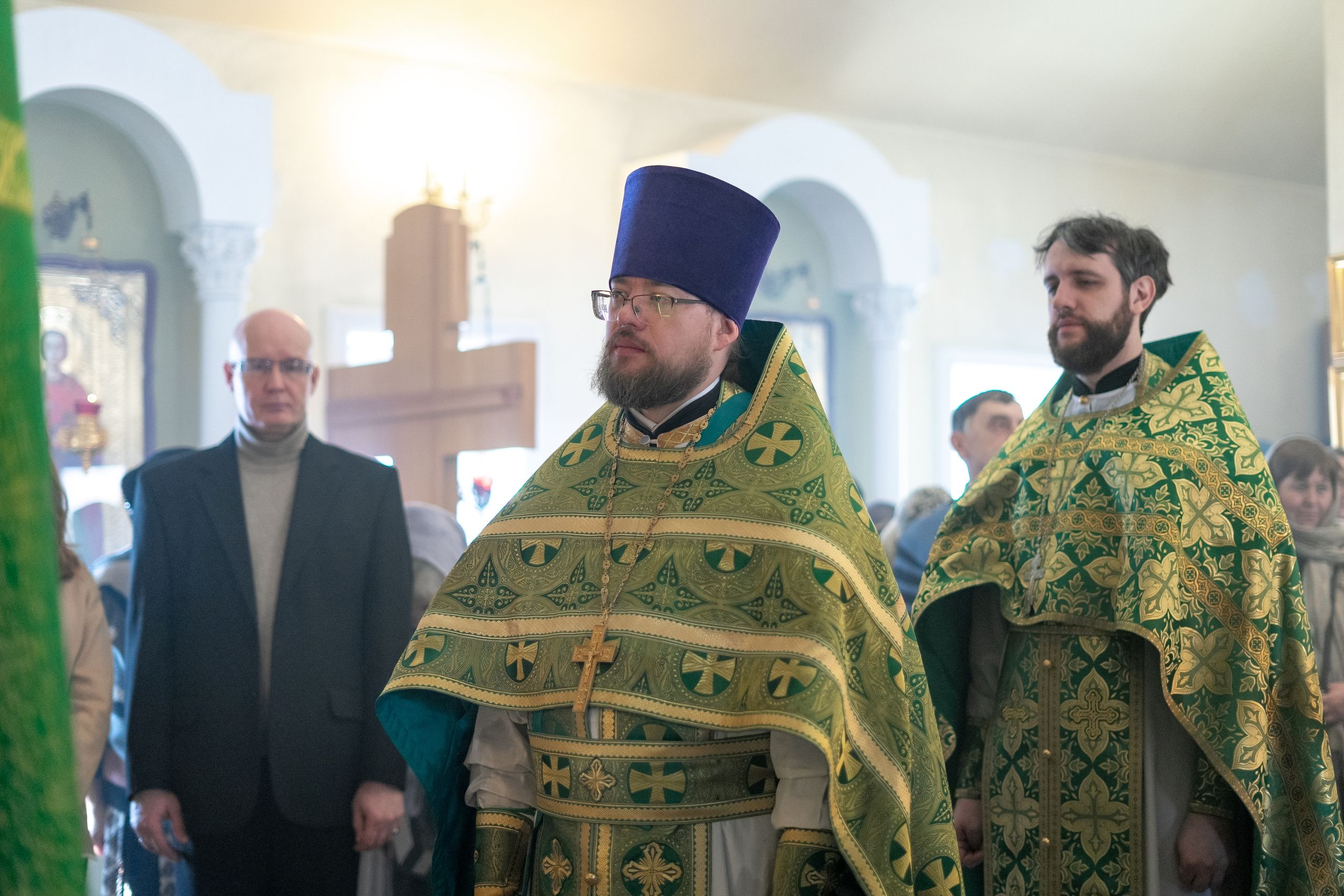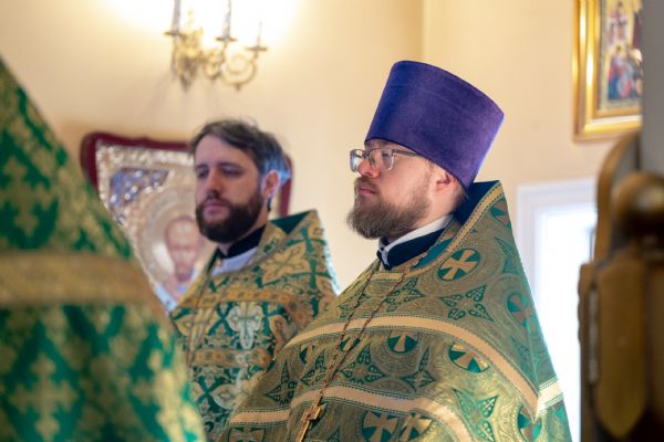 Божественную литургию совершили благочинный III Казанского округа протоиерей Алексий Краевский, настоятель прихода иерей Александр Ермолин, настоятель Кирилловского храма города Казани иерей Василий Крючков, клирик Иоанно-Кронштадтского храма при Казанской духовной семинарии иерей Максим Чернобровкин.