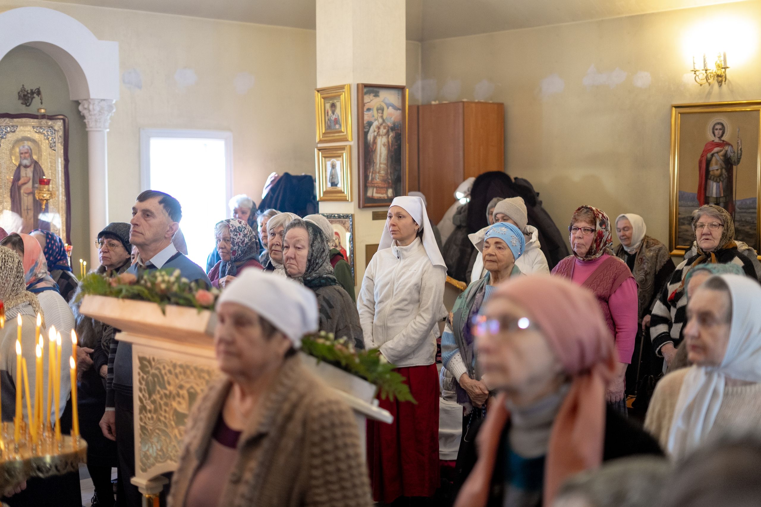 В храме молились многочисленные прихожане.