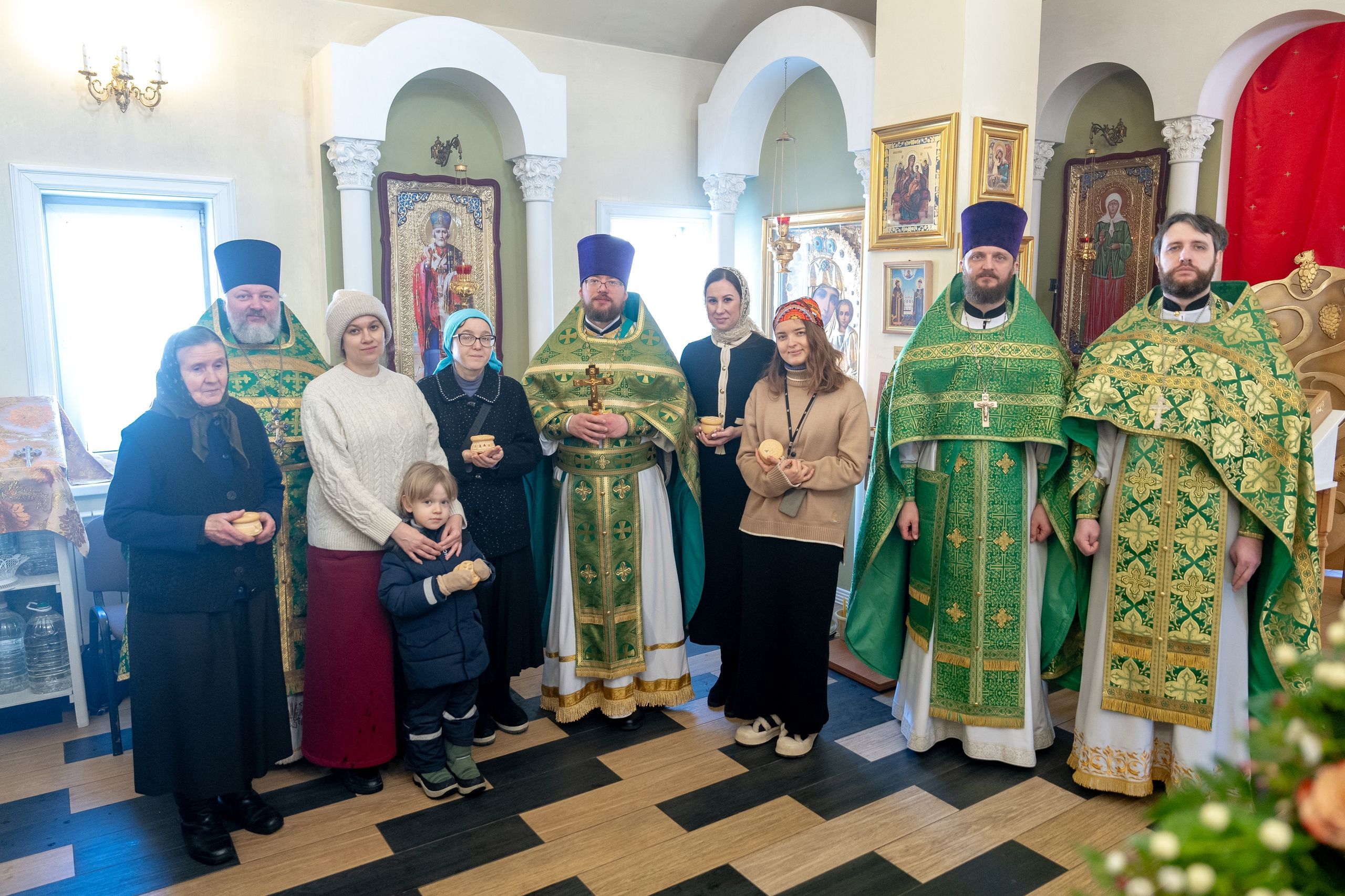 Затем настоятель прихода поздравил участников богослужения с престольным праздником и поблагодарил собратьев-священников за радость совместной молитвы в памятный день. По традиции прихода было сделано общее фото именинников с настоятелем и священнослужителей.