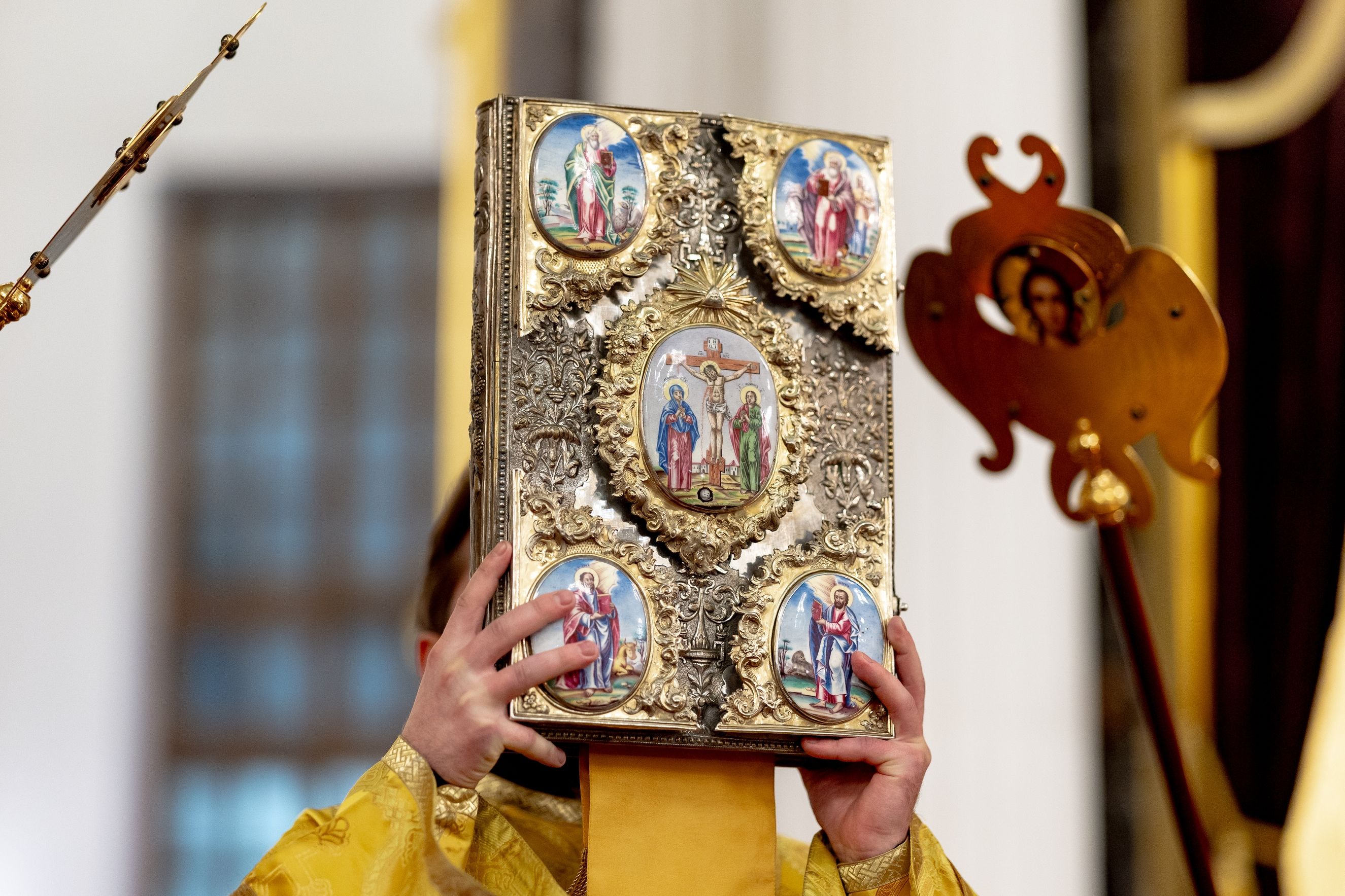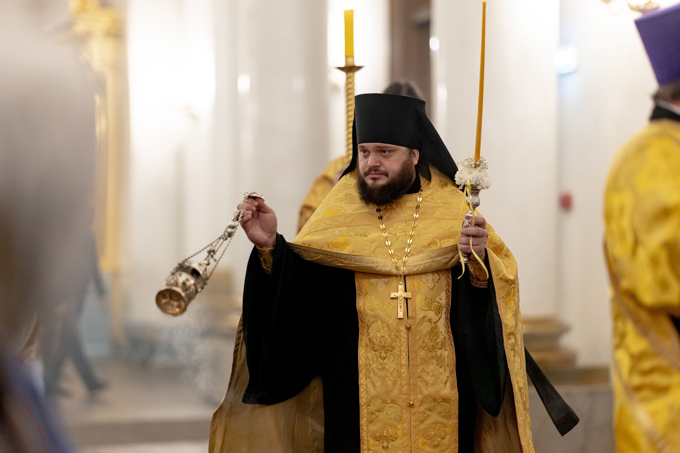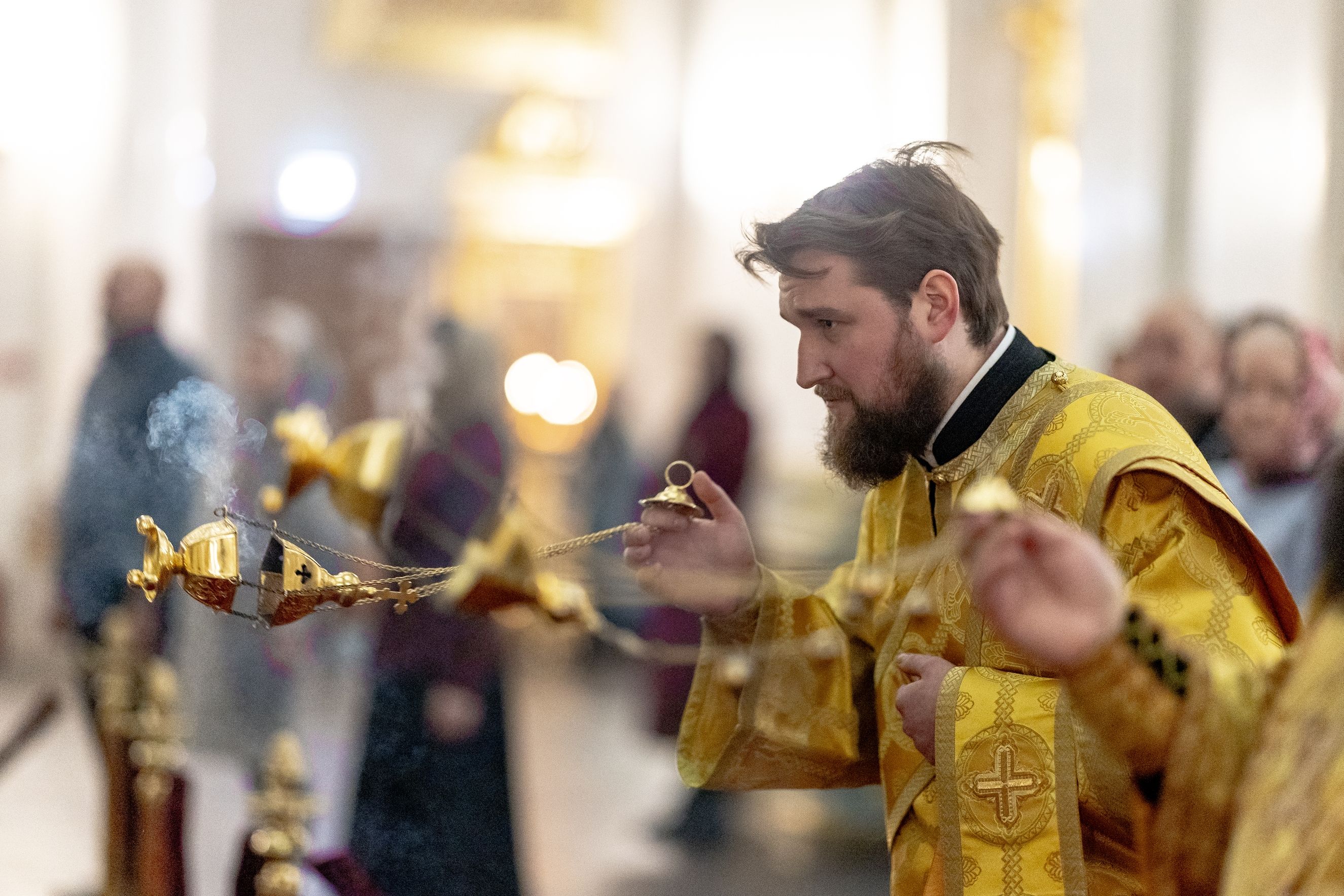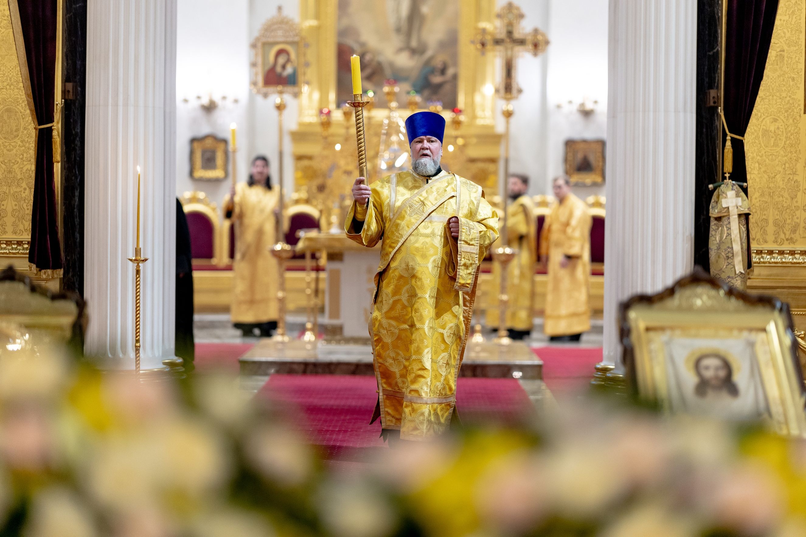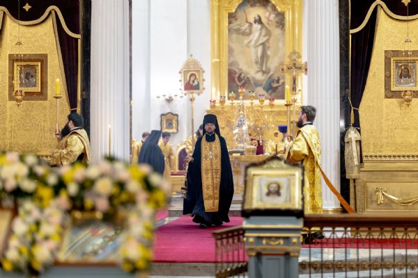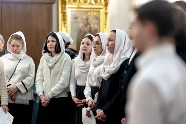 Песнопения исполнили два архиерейских хора: смешанный под управлением Марины Литвиненко и мужской под управлением Дениса Рогова.