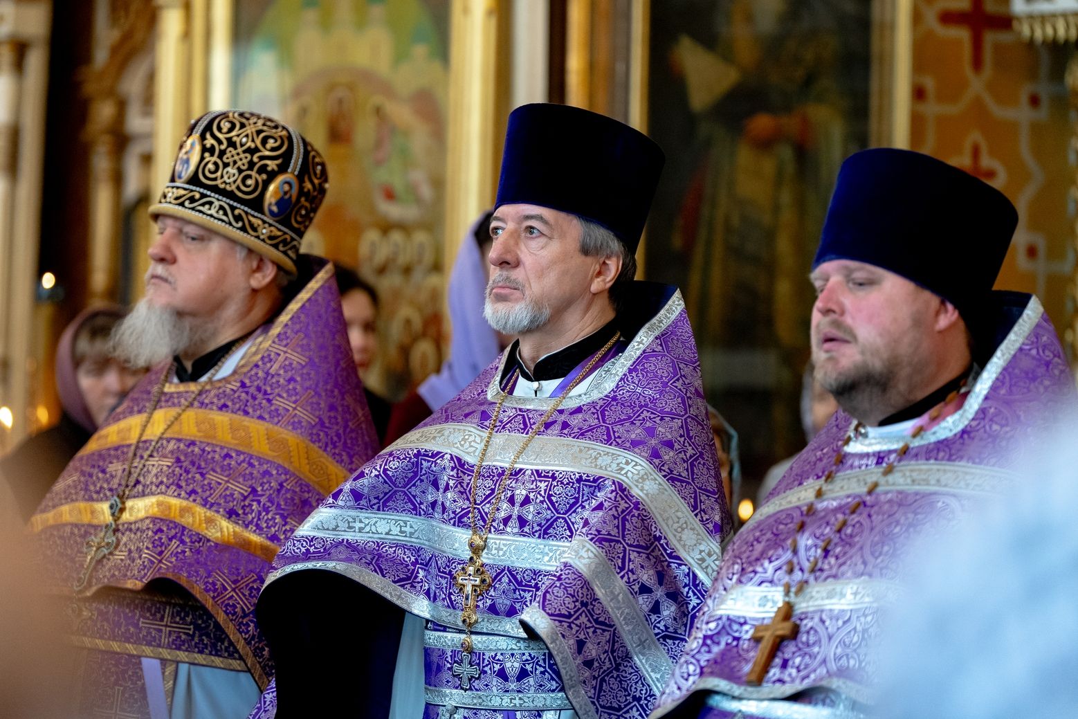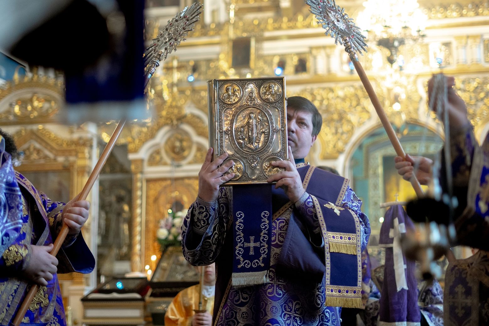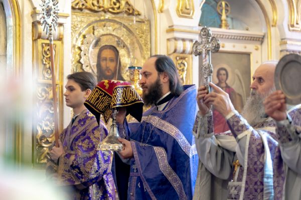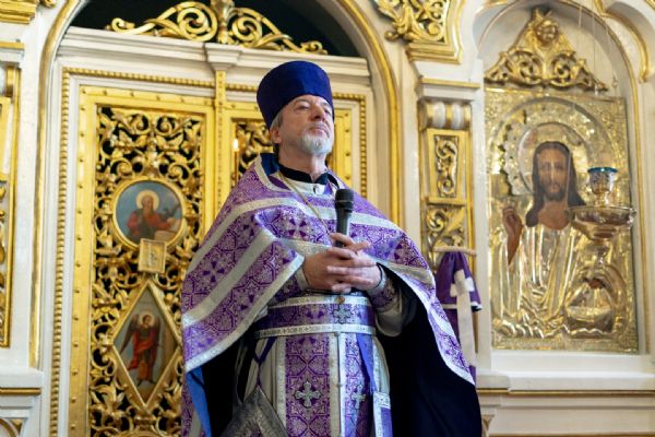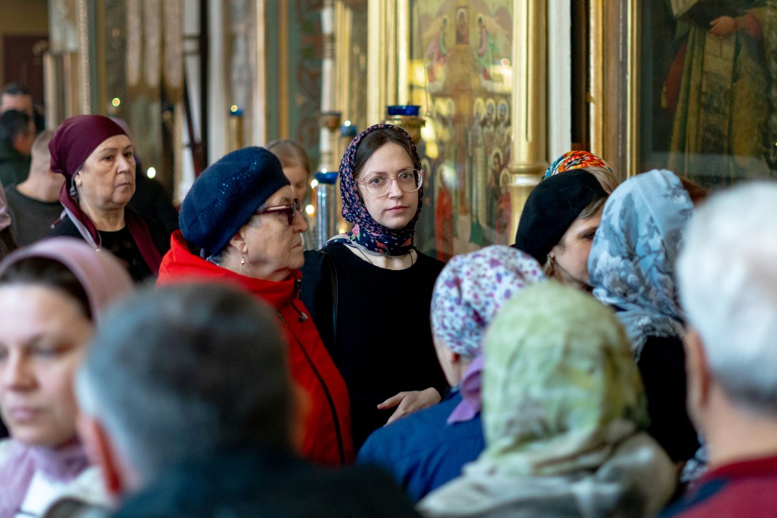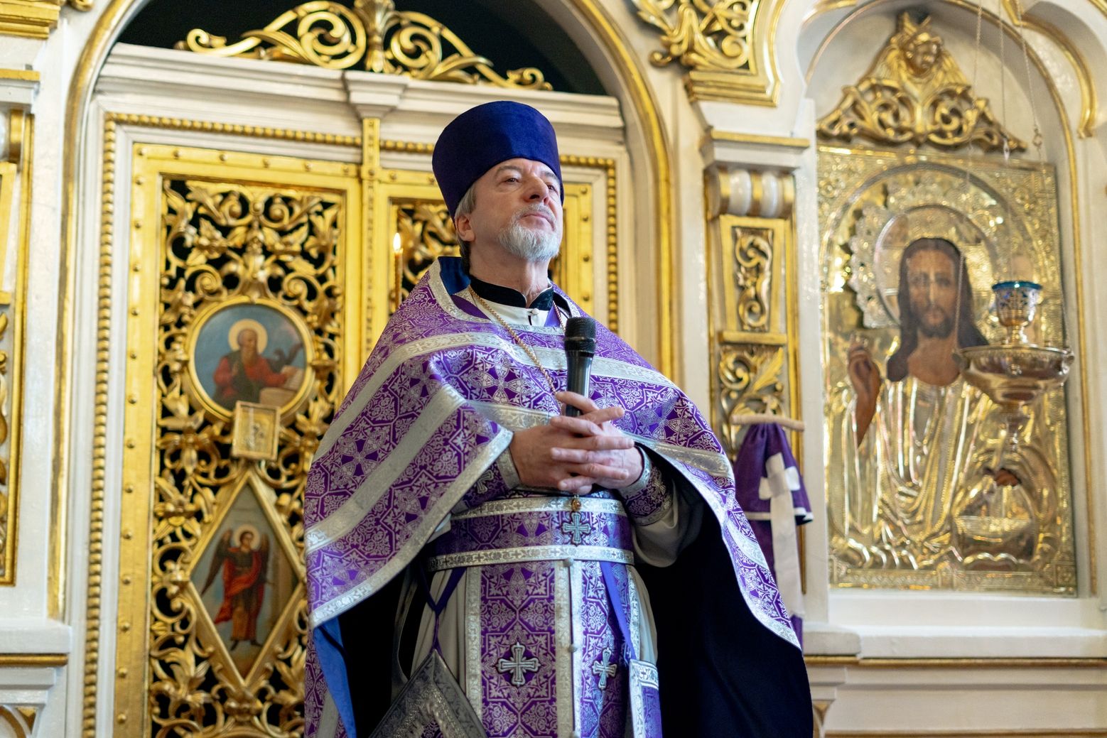 На мирной и сугубой ектениях были вознесены молитвы о Российском воинстве и о мире. По запричастном стихе проповедь произнёс протоиерей Иоанн Барсуков.