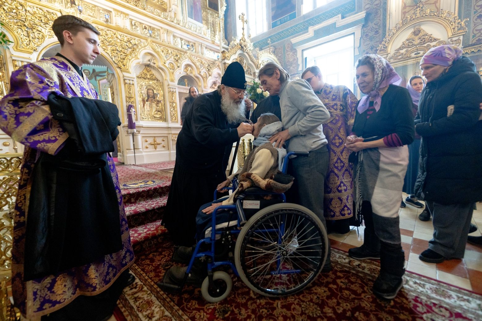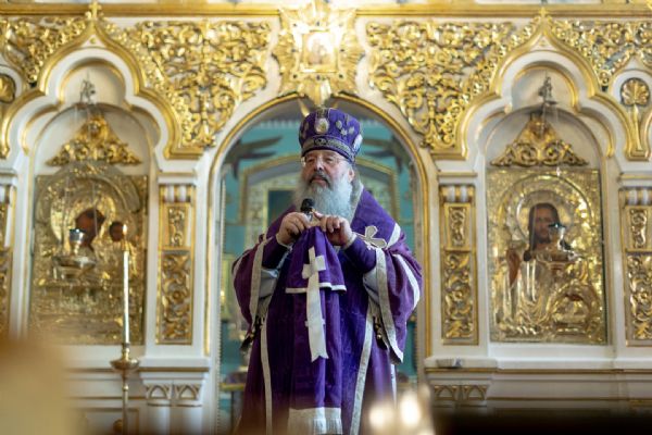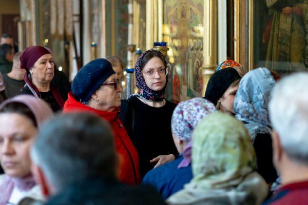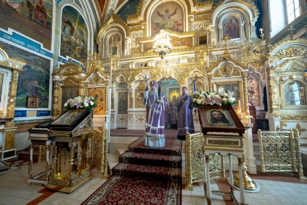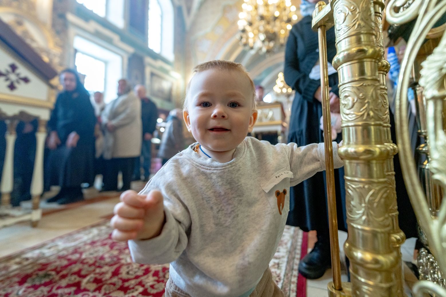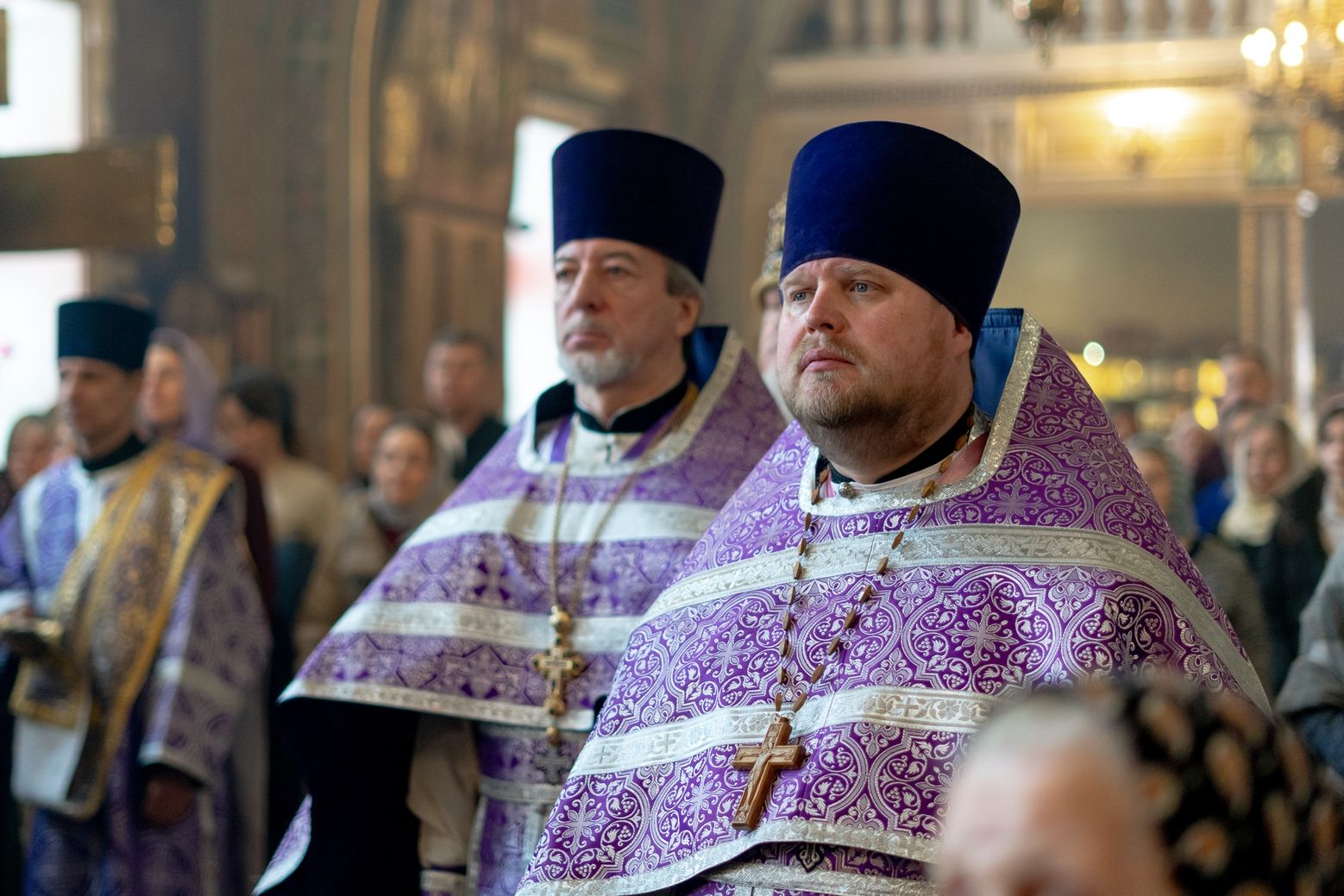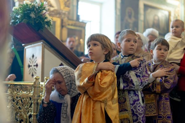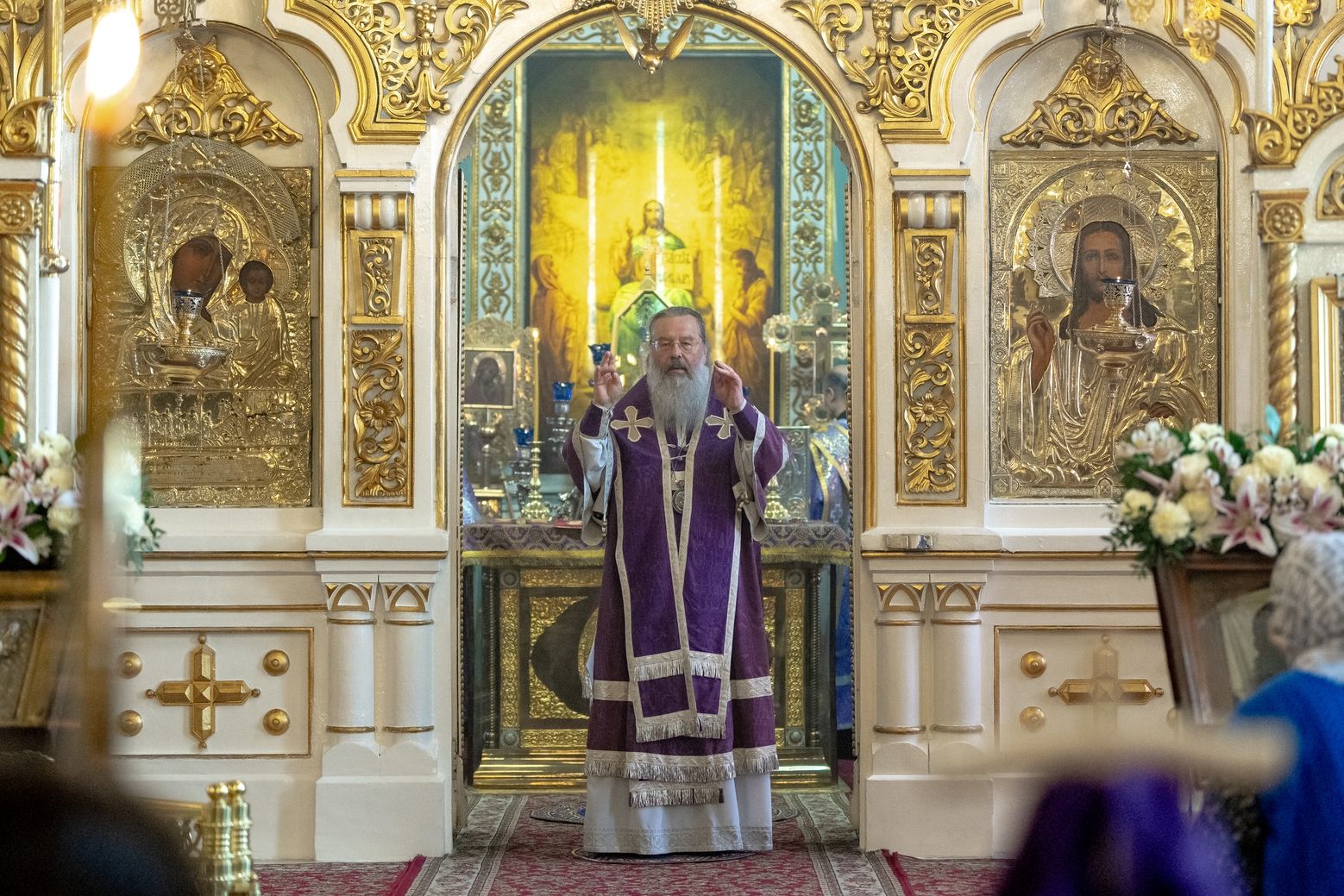 На мирной и сугубой ектениях были вознесены молитвы о Российском воинстве и о мире. По запричастном стихе проповедь произнёс протоиерей Иоанн Барсуков.