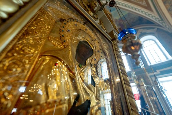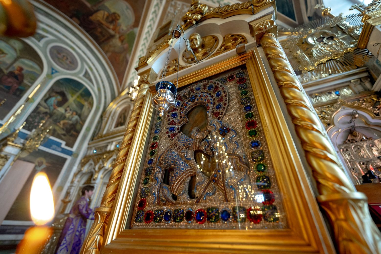 В завершение было совершено славление Божией Матери перед Иверским образом, великомученику Феодору Тирону и святителю Алексию Московскому.