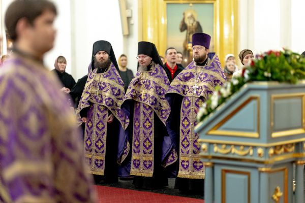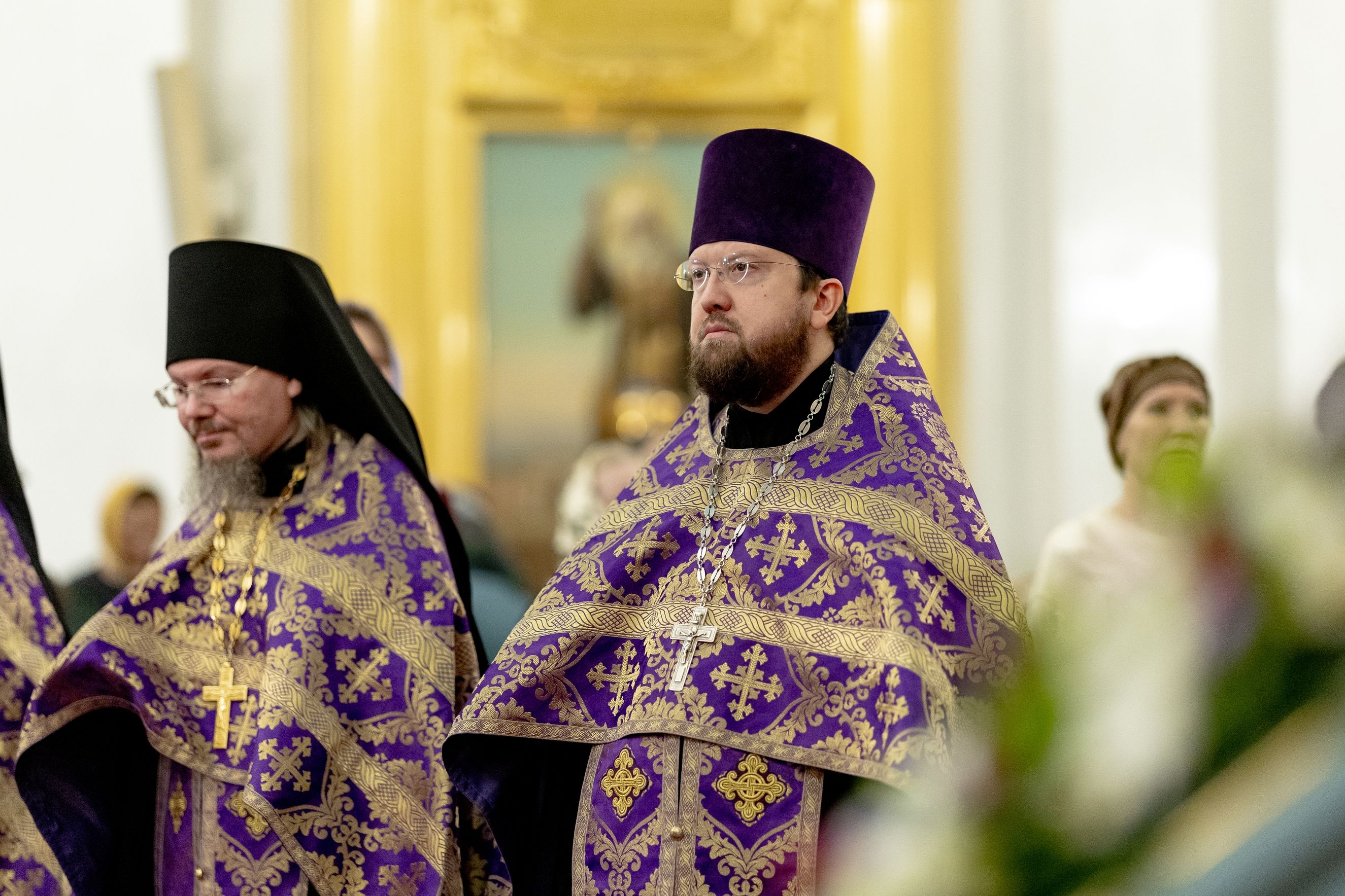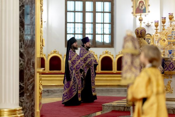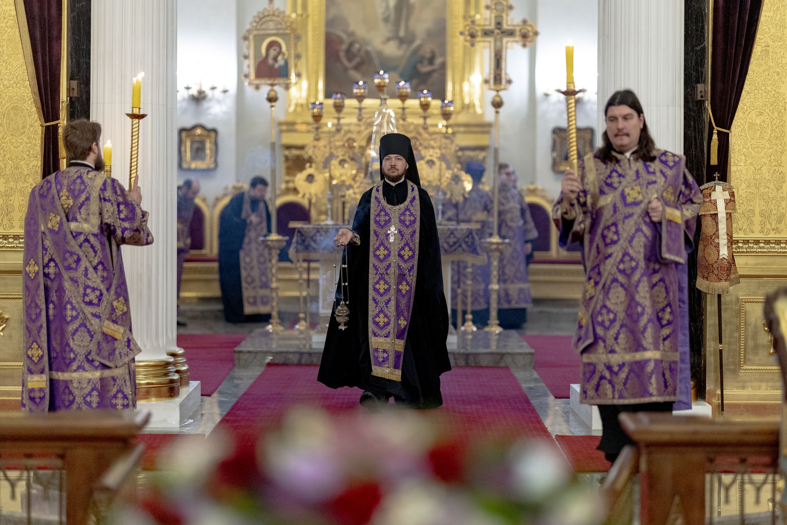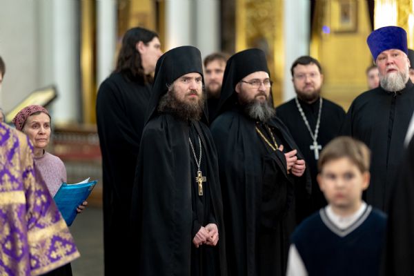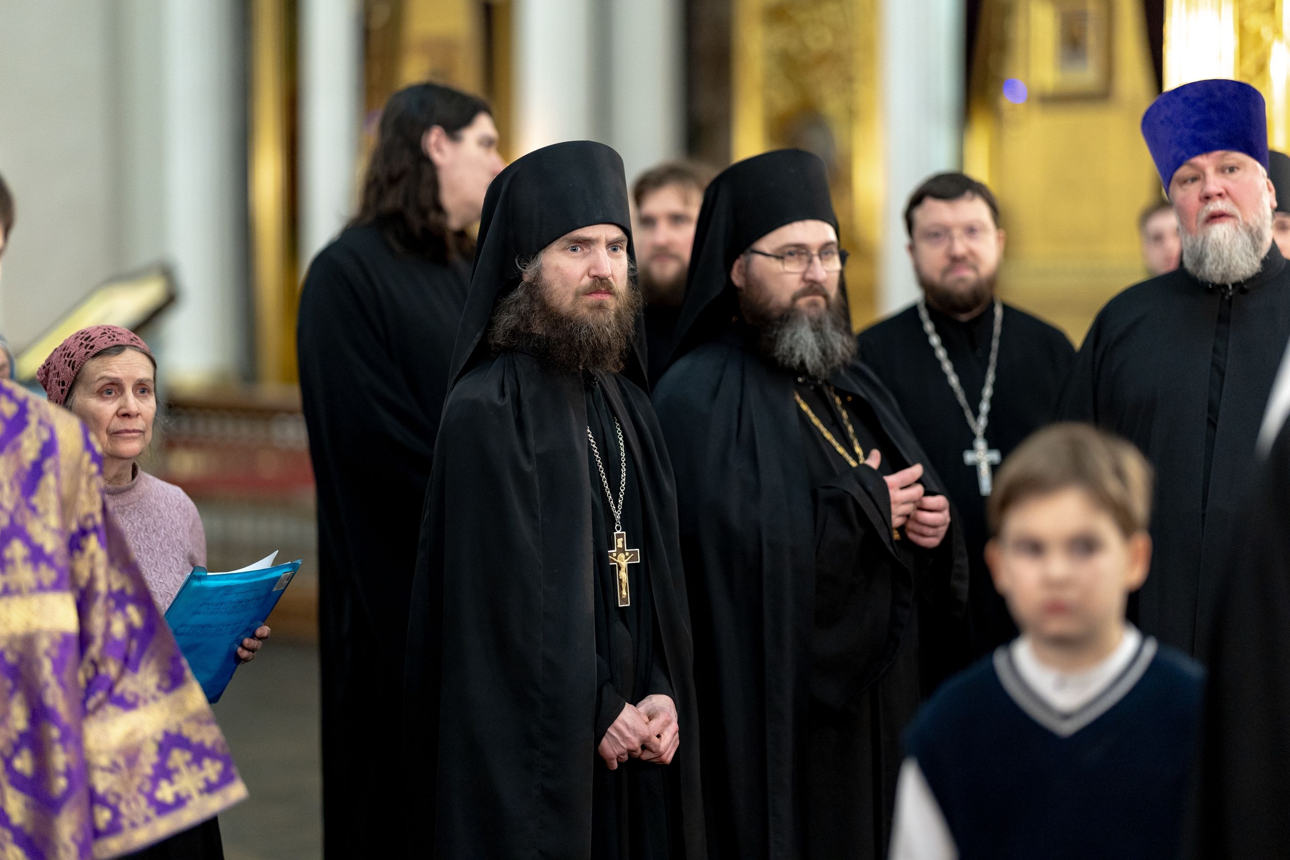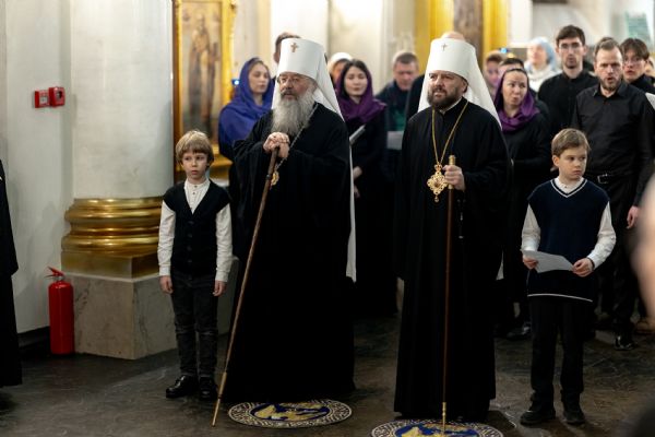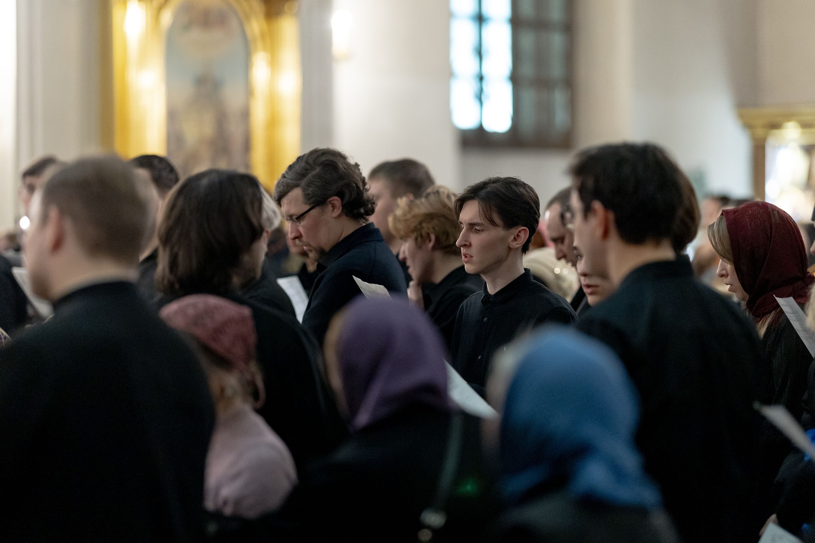 Песнопения исполнили два архиерейских хора: смешанный под управлением Марины Литвиненко и мужской под управлением Дениса Рогова.
