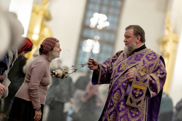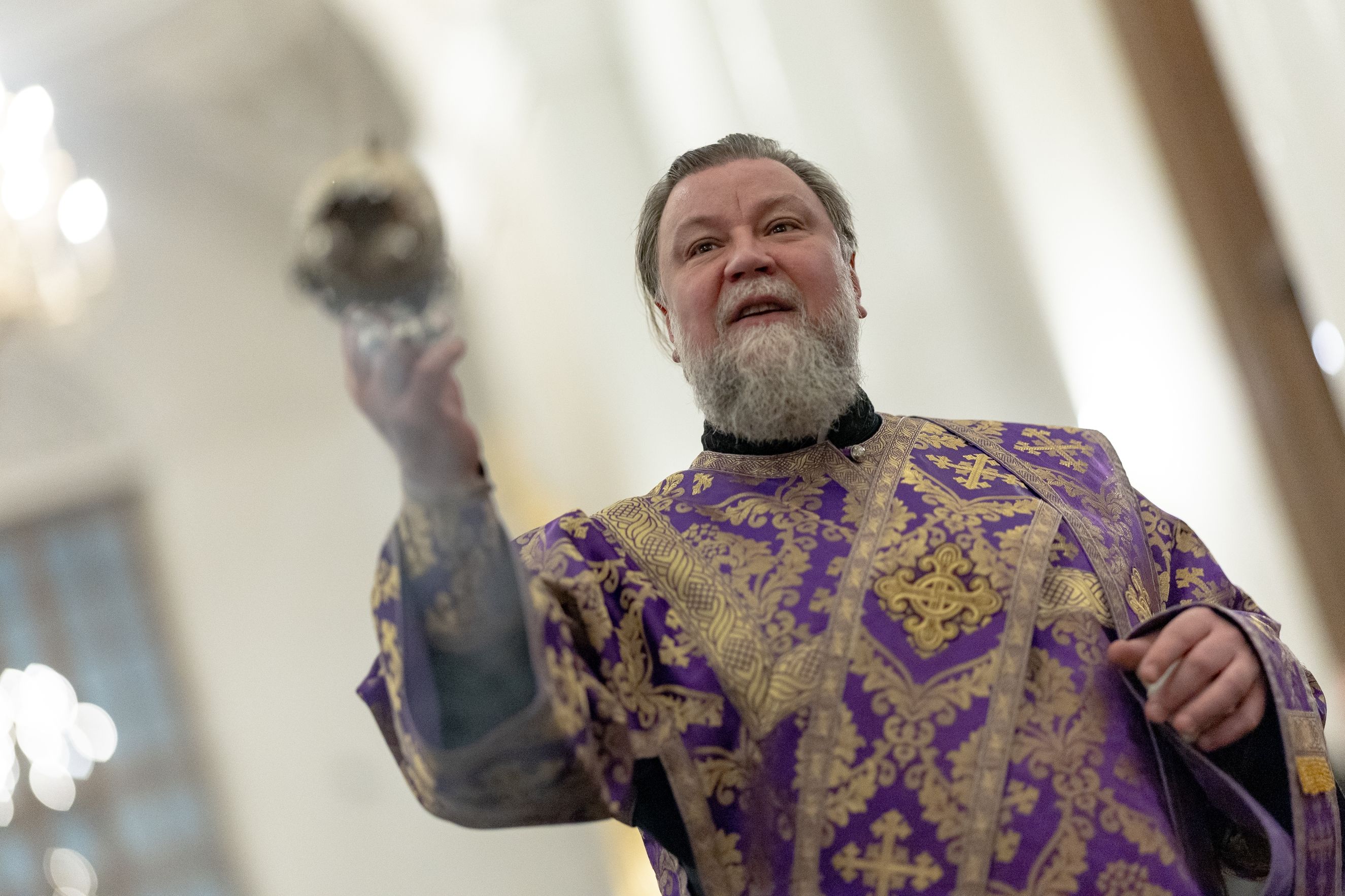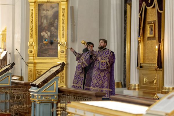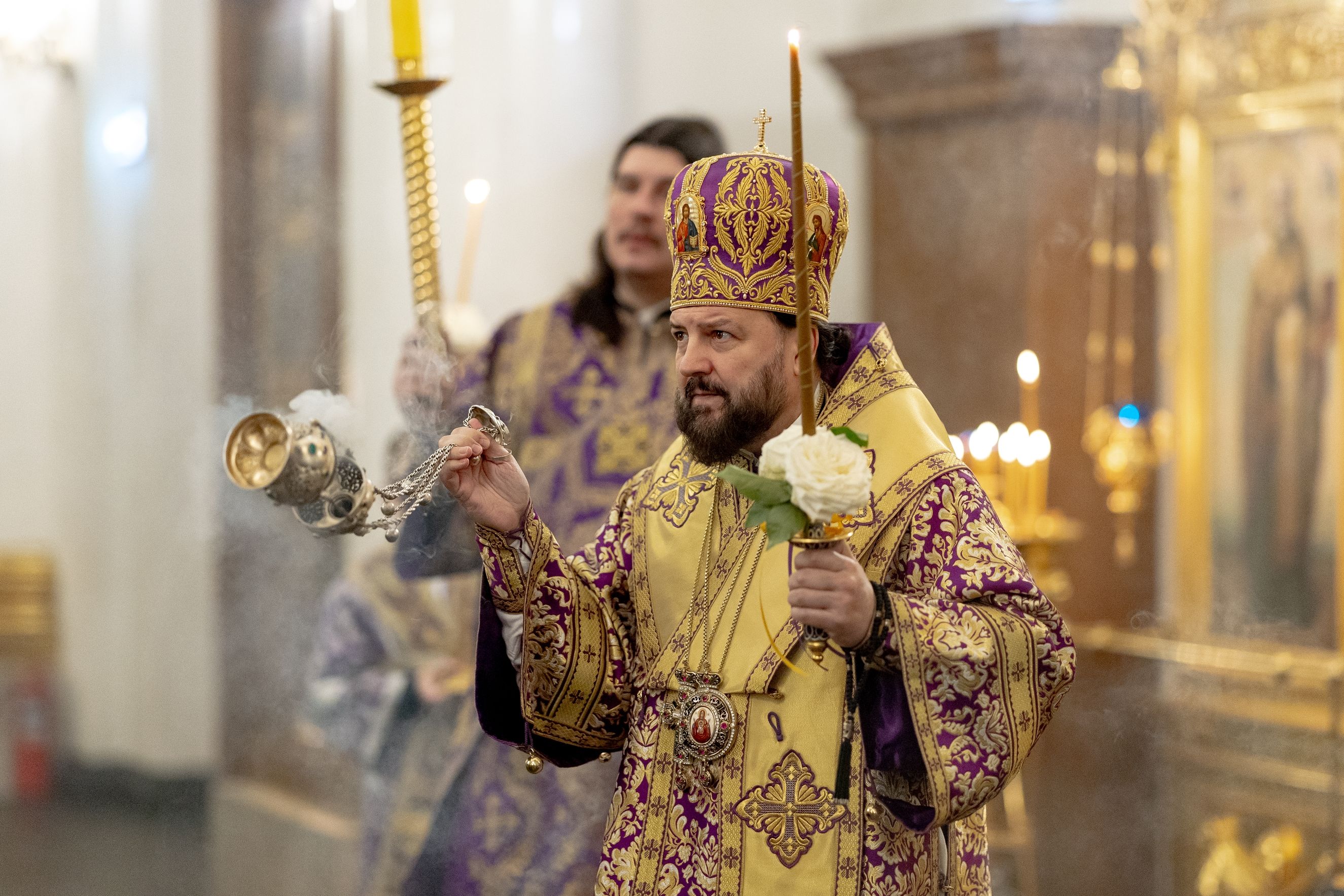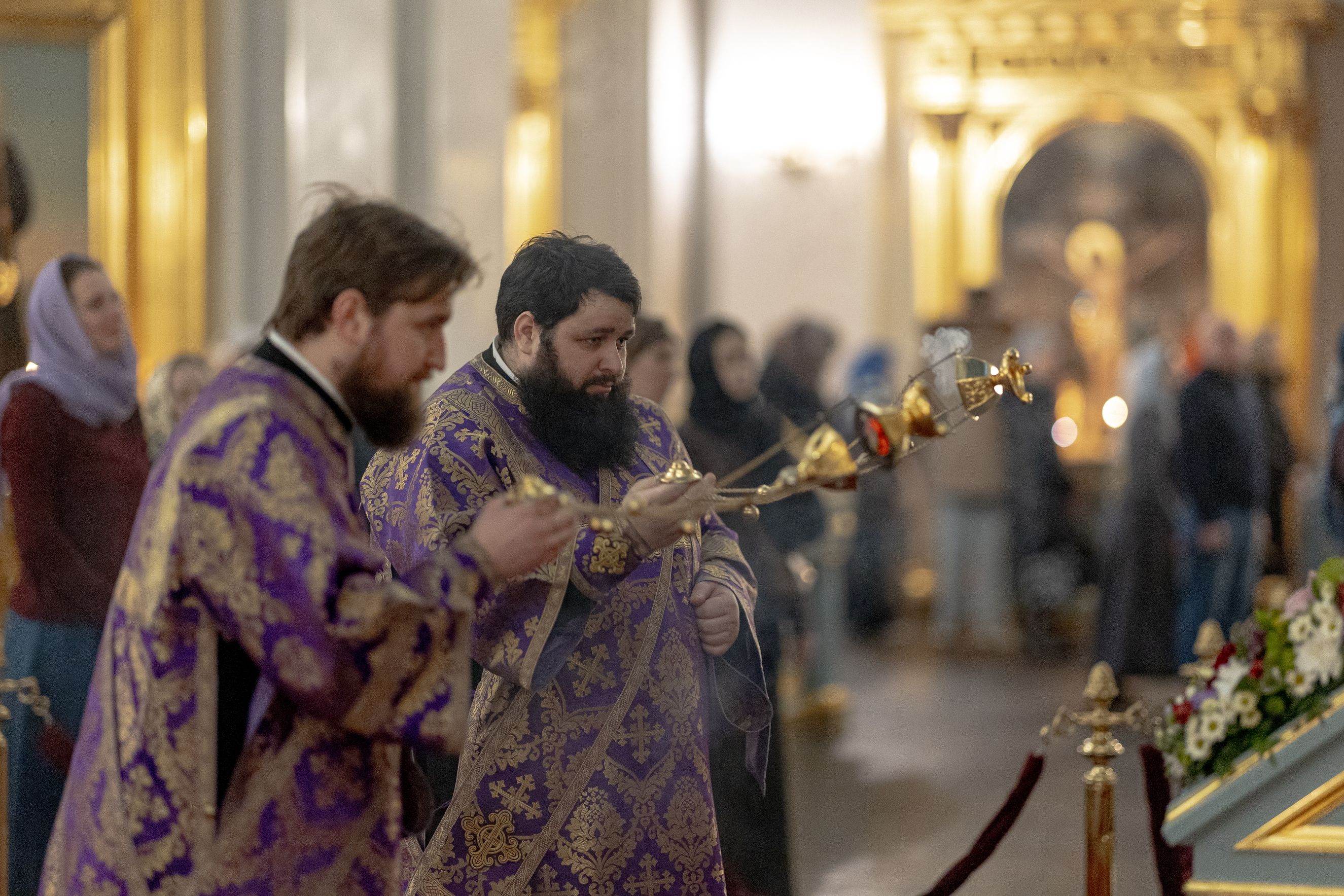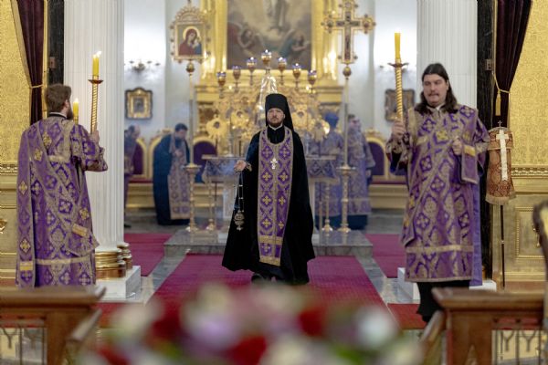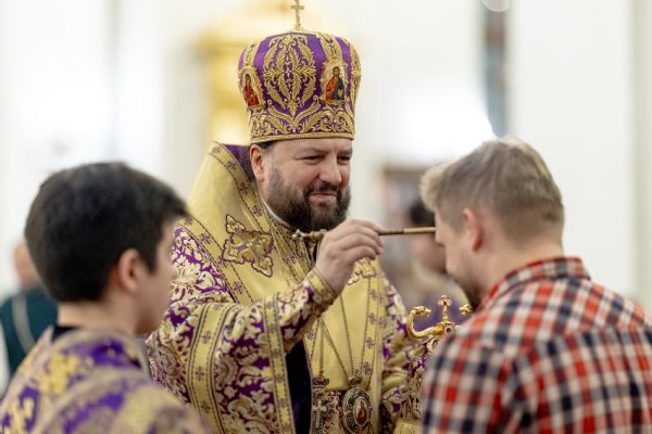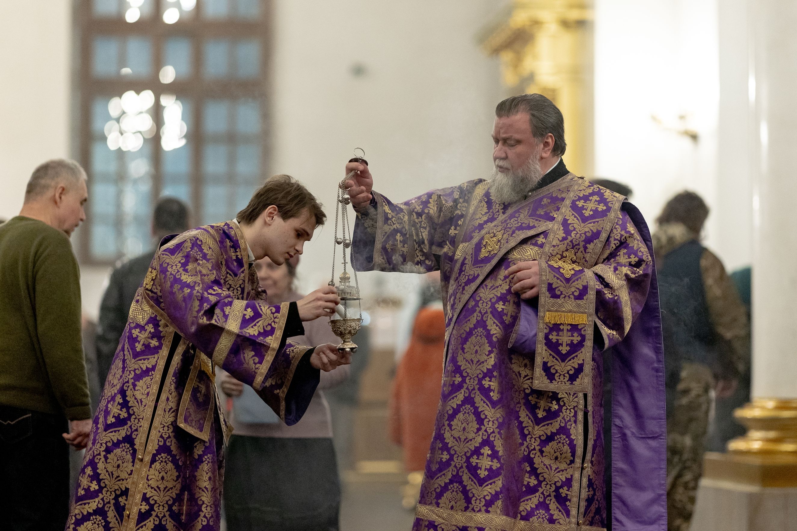 Песнопения исполнили два архиерейских хора: смешанный под управлением Марины Литвиненко и мужской под управлением Дениса Рогова.