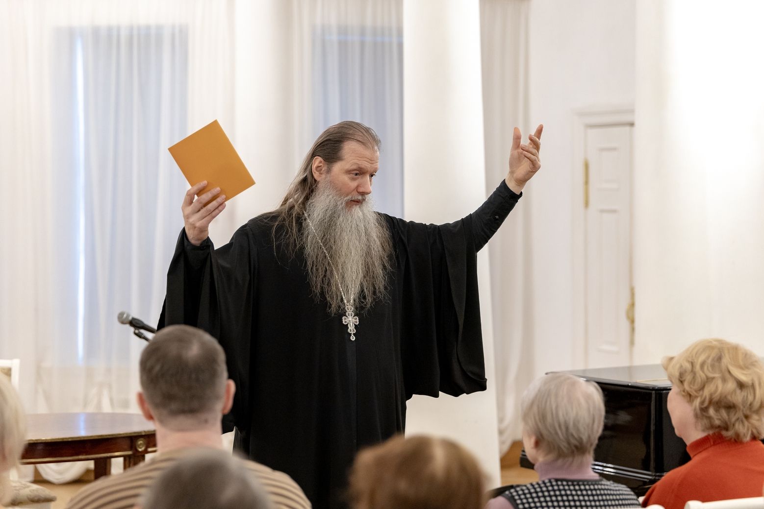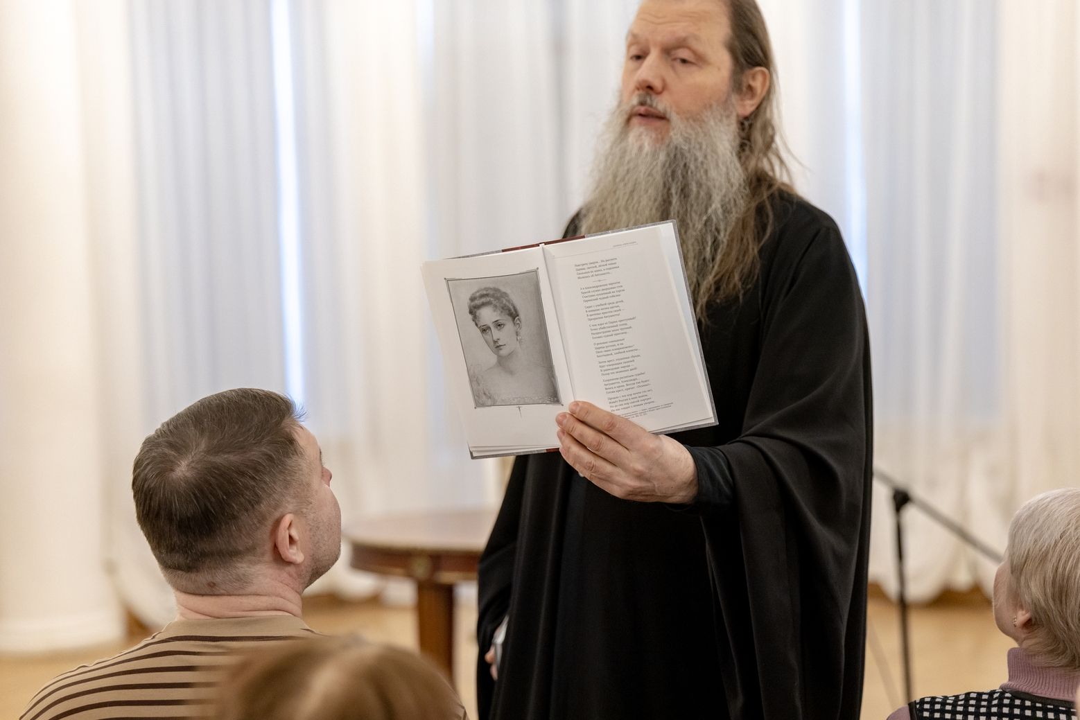 Встреча прошла в формате живого диалога. Отец Артемий рассказал слушателям о судьбе и творчестве Евгения Боратынского, прочитал несколько стихотворений автора. Часть выступления священник посвятил теме жизненного пути Александра Сергеевича Пушкина и поделился размышлениями о культурном наследии великого поэта.