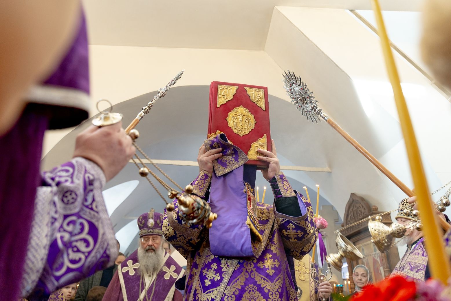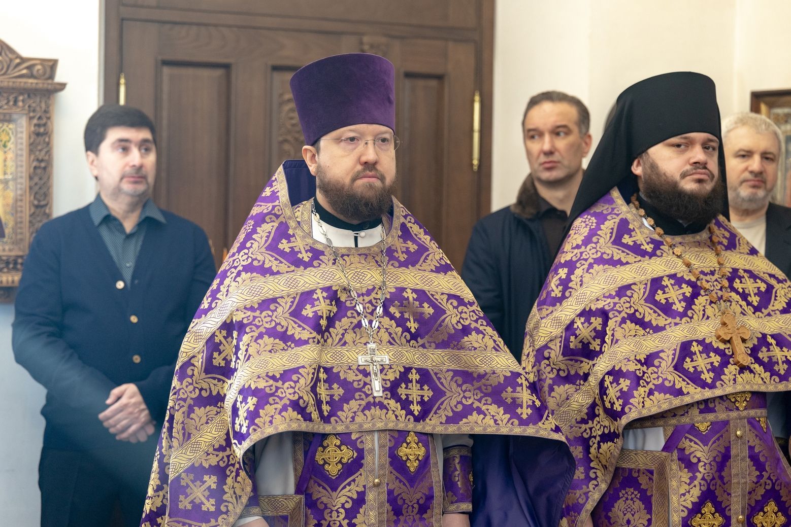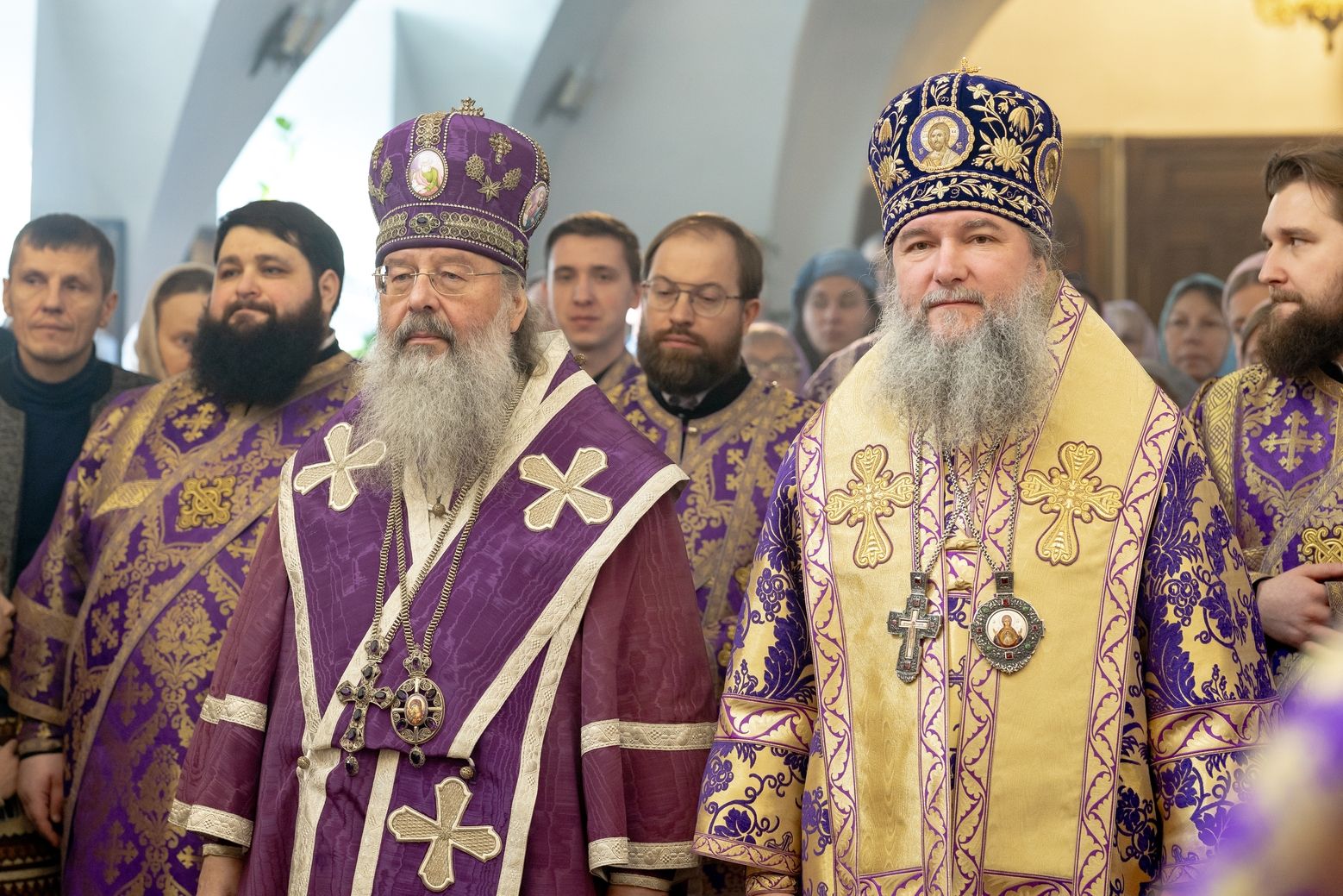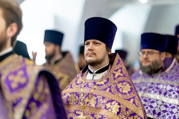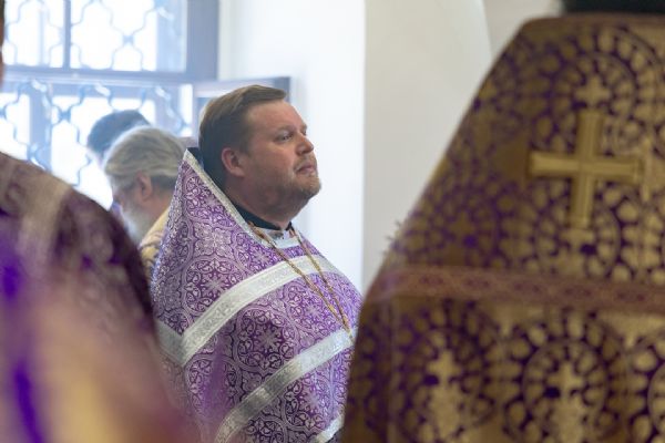 Архипастырям сослужили секретарь Татарстанской митрополии иеромонах Кирилл (Корытко), благочинный I Казанского округа протоиерей Владимир Самойленко, настоятель Спасо-Евдокиевского храма иерей Димитрий Аликин, наместник Свияжского Успенского монастыря игумен Аркадий (Логинов), настоятель храма Ярославских чудотворцев на Арском кладбище города Казани протоиерей Николай Троицкий, ректор Казанской духовной семинарии иерей Никита Кузнецов, настоятель Иоанно-Предтеченского монастыря города Казани игумен Алексий (Яцейко), клирик храма благоверного князя Александра Невского города Казани протоиерей Сергий Хохлов, иеромонах Кирилл (Забавнов), настоятель архиерейского подворья священномученика Кирилла Казанского иерей Василий Крючков, ключарь Благовещенского собора Казанского кремля иерей Виктор Бельских.