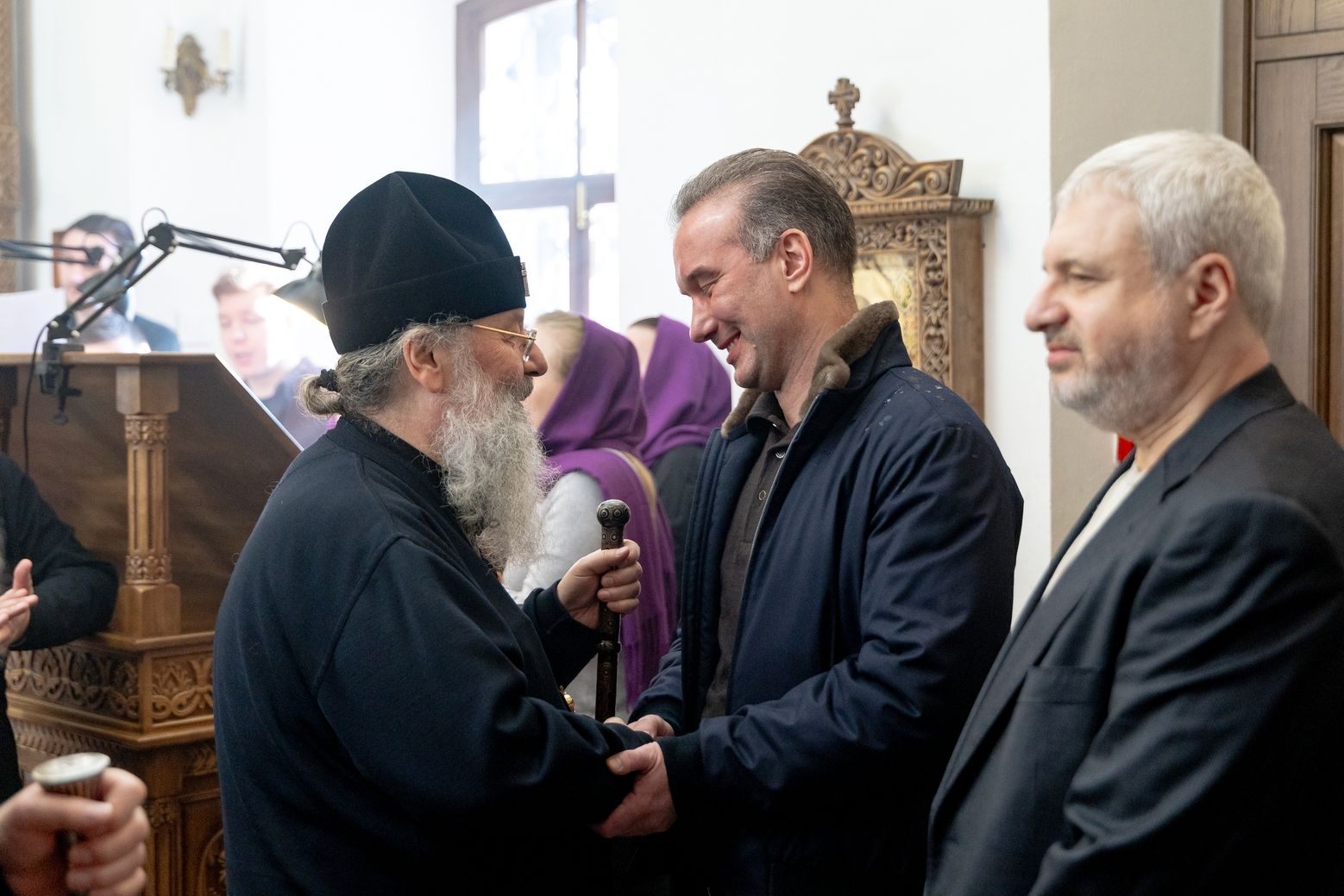 Отрадно, что Вы, владыка, несете своё служение у престола святых Царственных страстотерпцев, где некогда отца Кирилла рукополагали в сан пресвитера. Поздравляем Вас, владыка, и вас, отец Кирилл! Желаем вам помощи Божией и многая и благая лета!