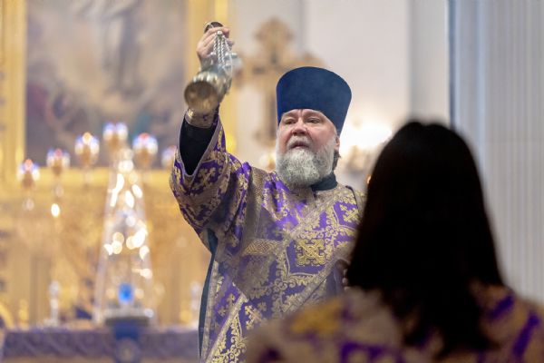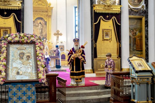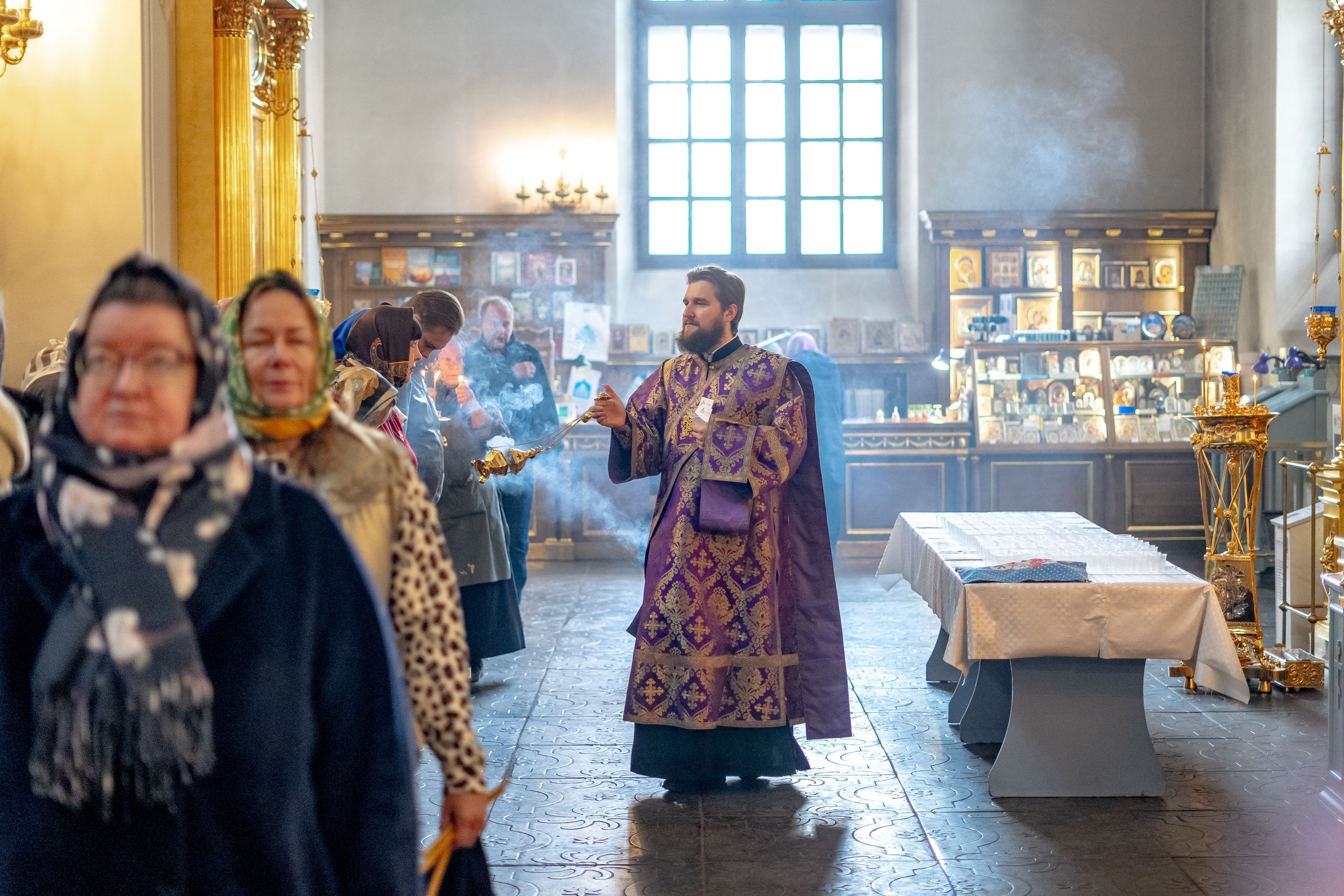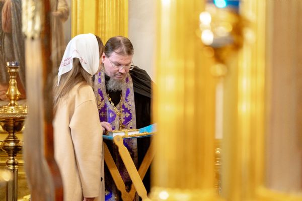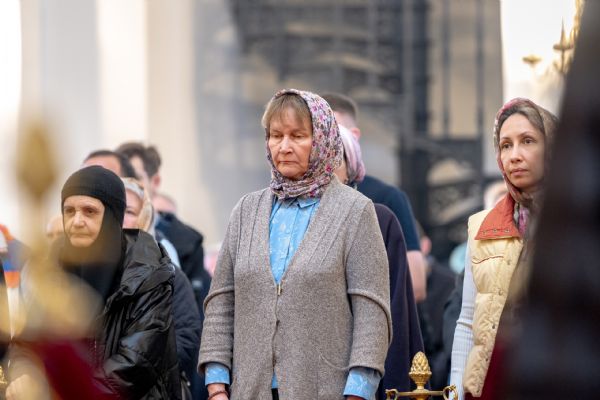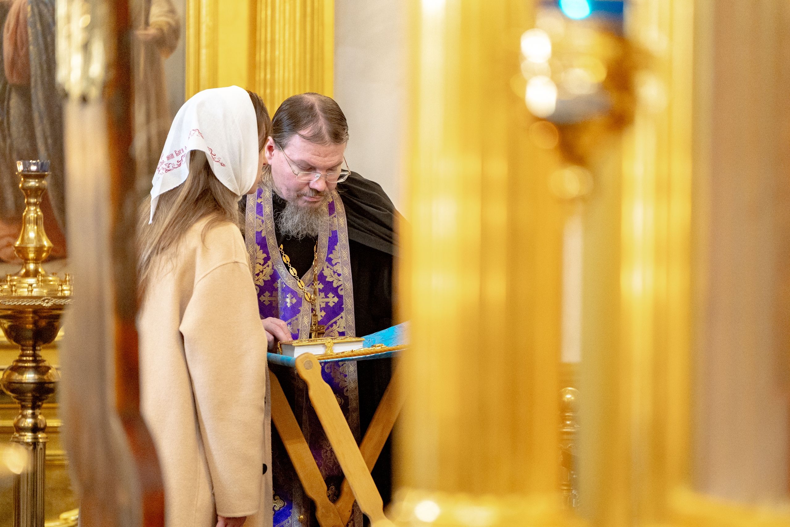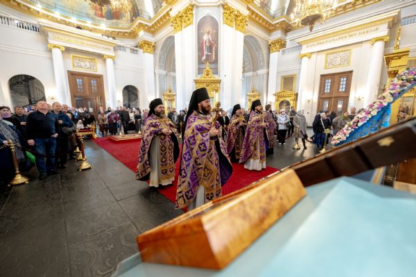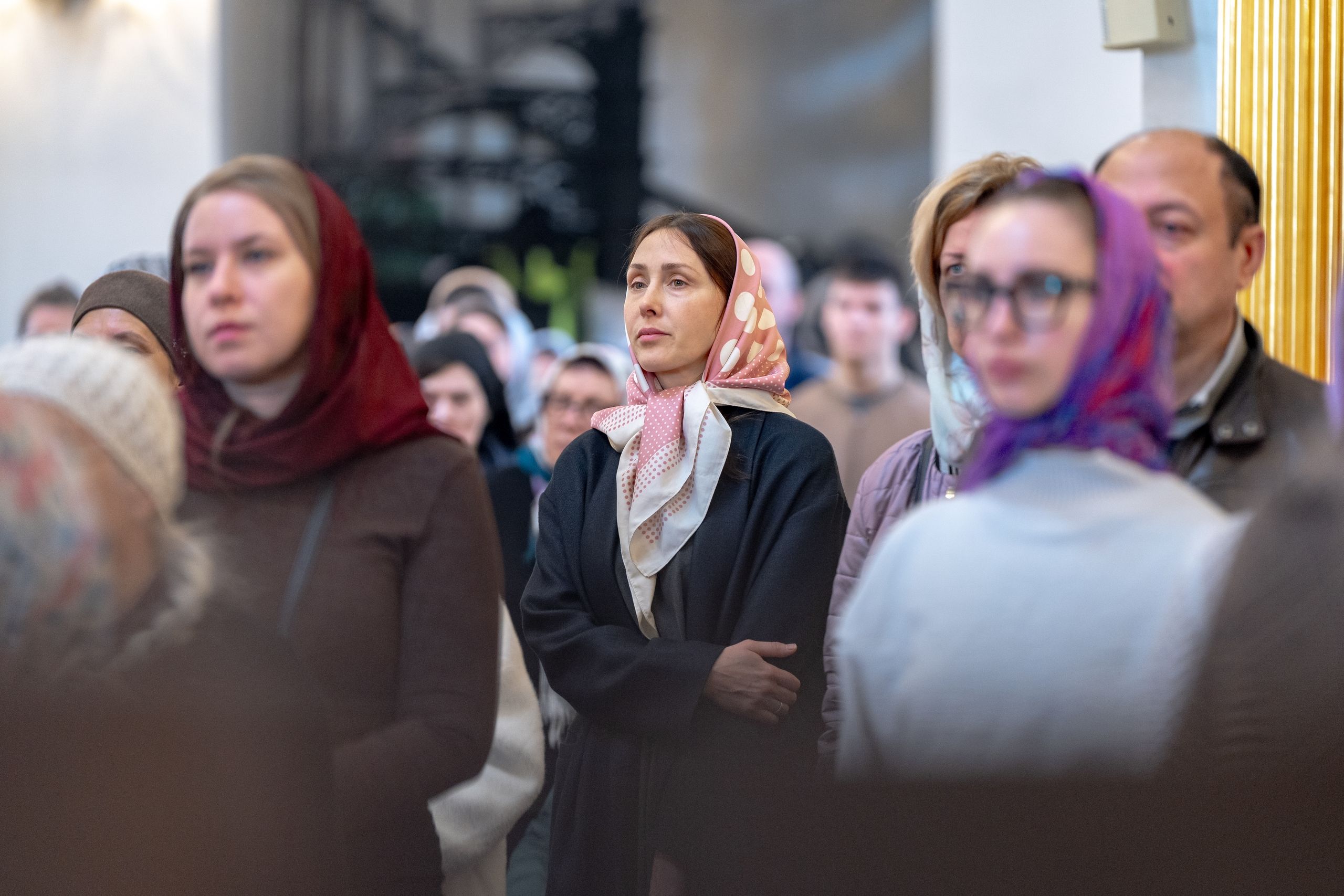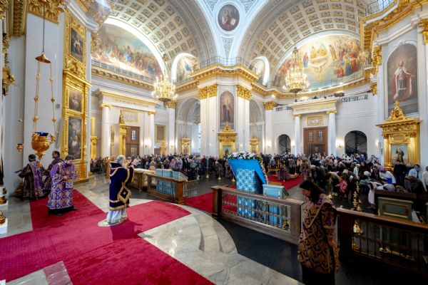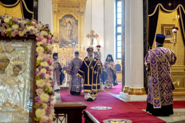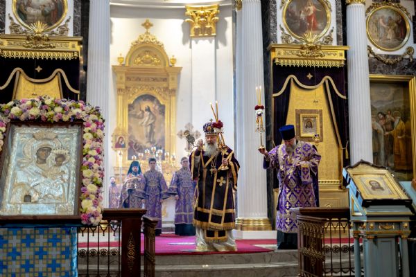 На мирной и сугубой ектениях были вознесены молитвы о Российском воинстве и о мире. По запричастном стихе проповедь произнёс иеромонах Кирилл (Корытко). В завершение богослужения духовенство и верующие пропели молитву «Царице моя Преблагая».