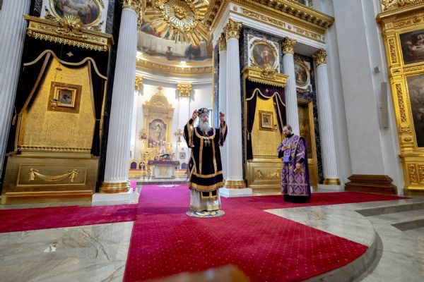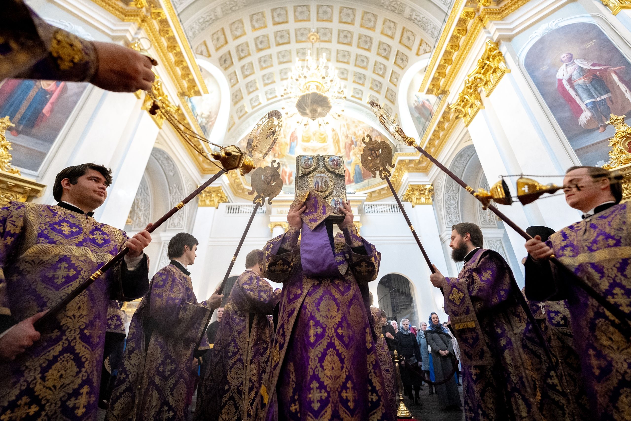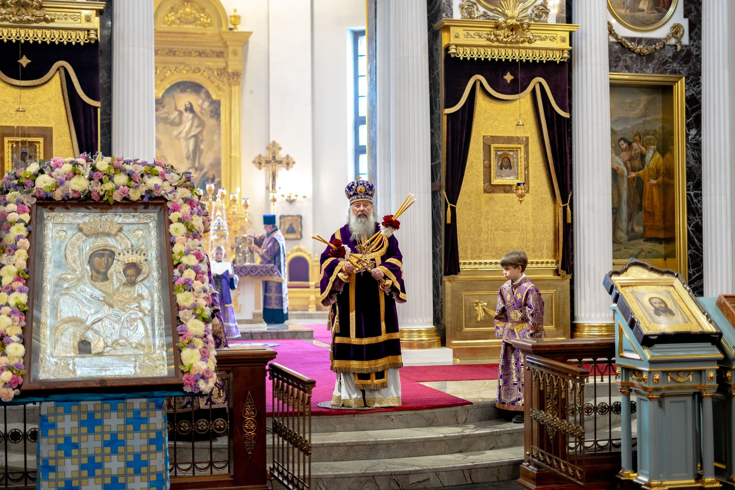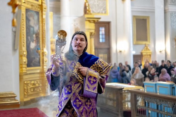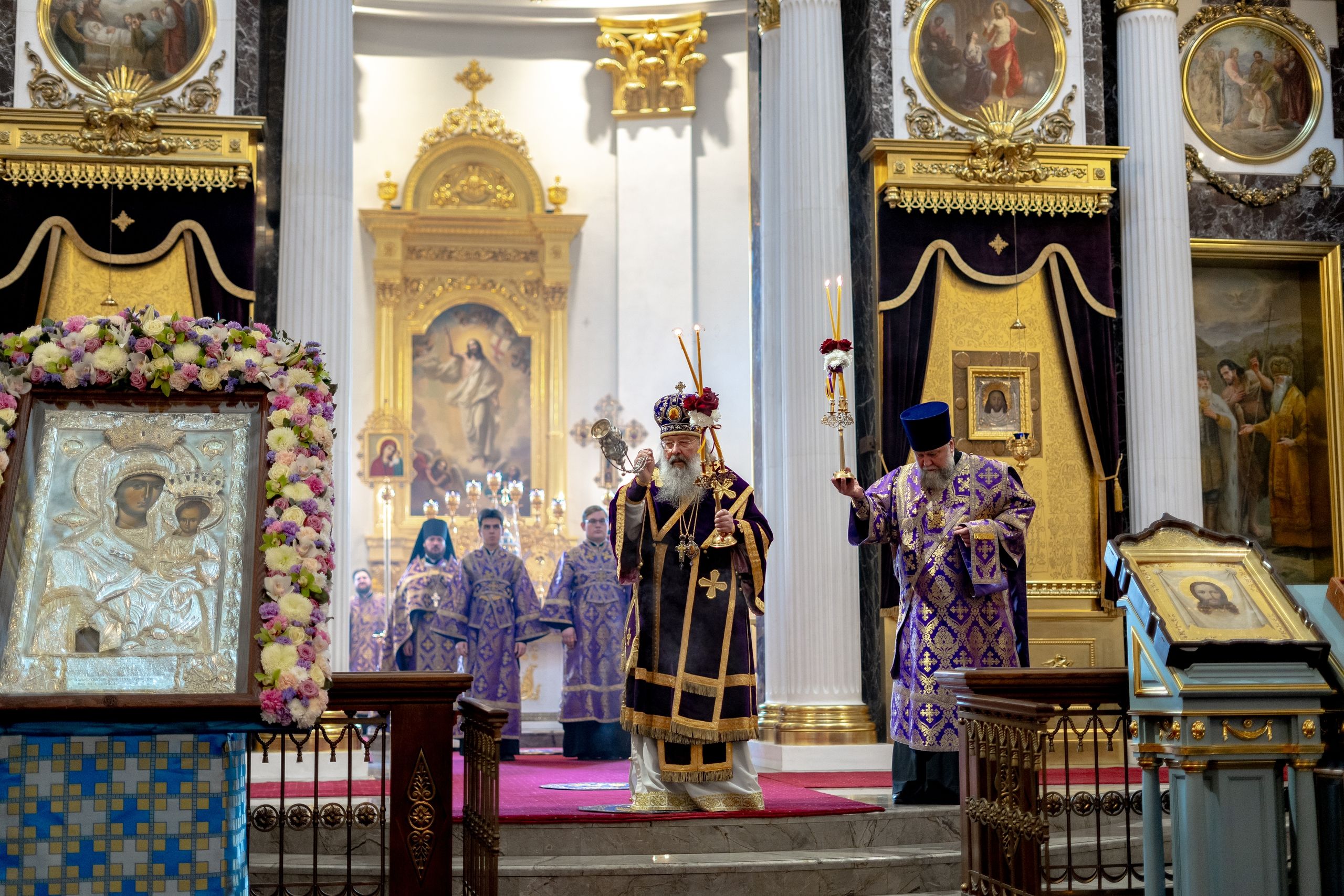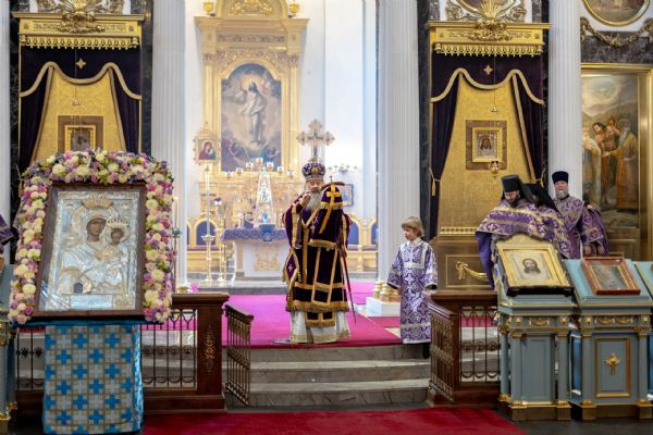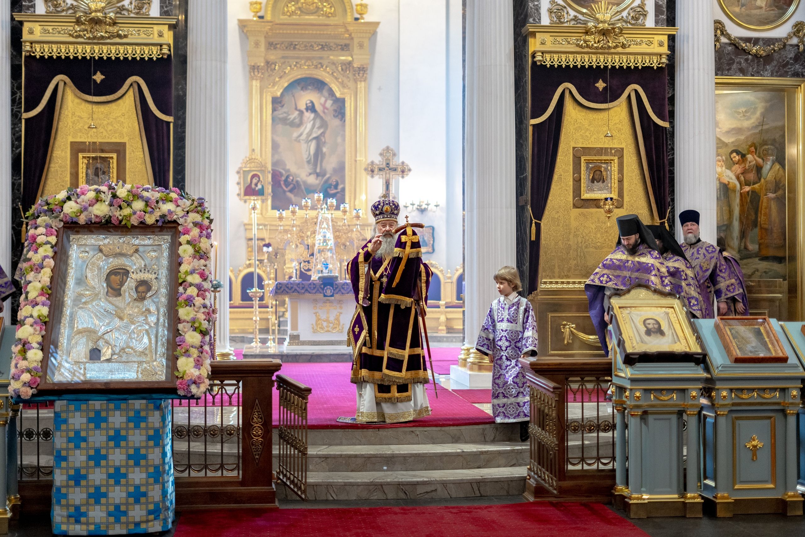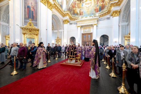 На мирной и сугубой ектениях были вознесены молитвы о Российском воинстве и о мире. По запричастном стихе проповедь произнёс иеромонах Кирилл (Корытко). В завершение богослужения духовенство и верующие пропели молитву «Царице моя Преблагая».