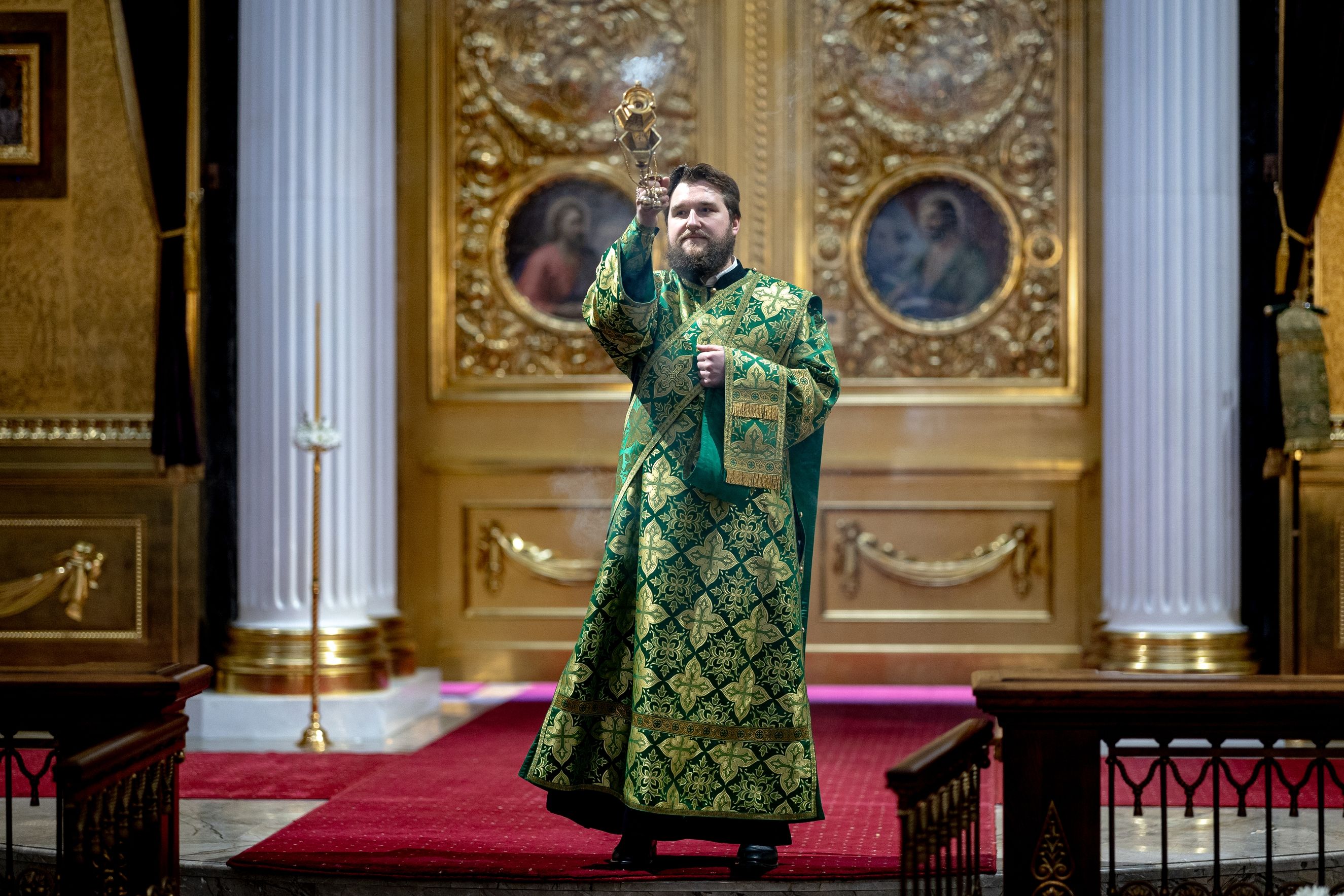 На мирной и сугубой ектениях были вознесены молитвы о Российском воинстве и о мире. По запричастном стихе проповедь произнёс иерей Александр Данилов.