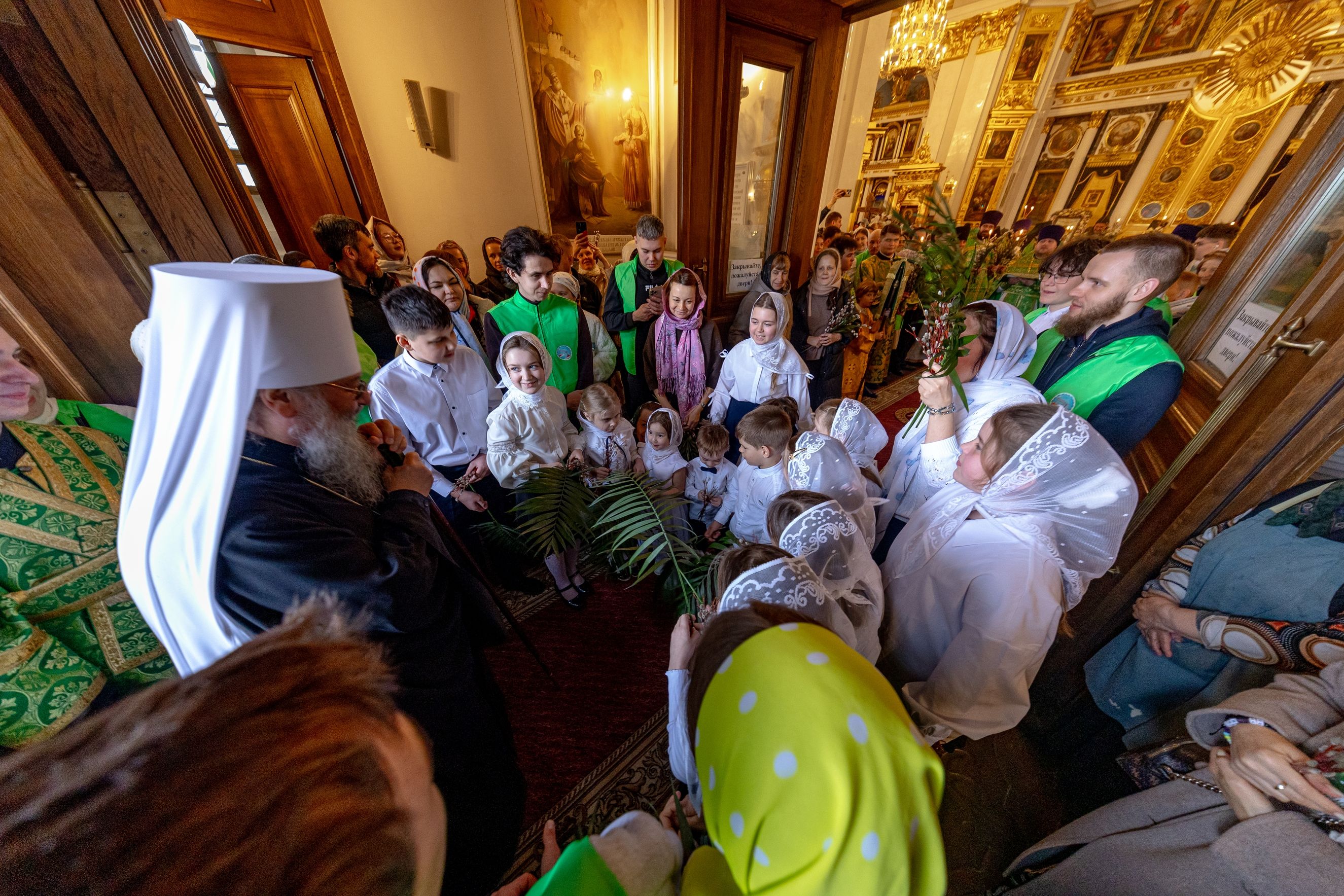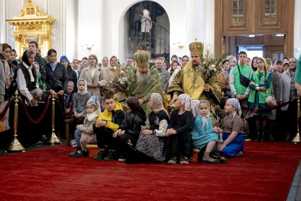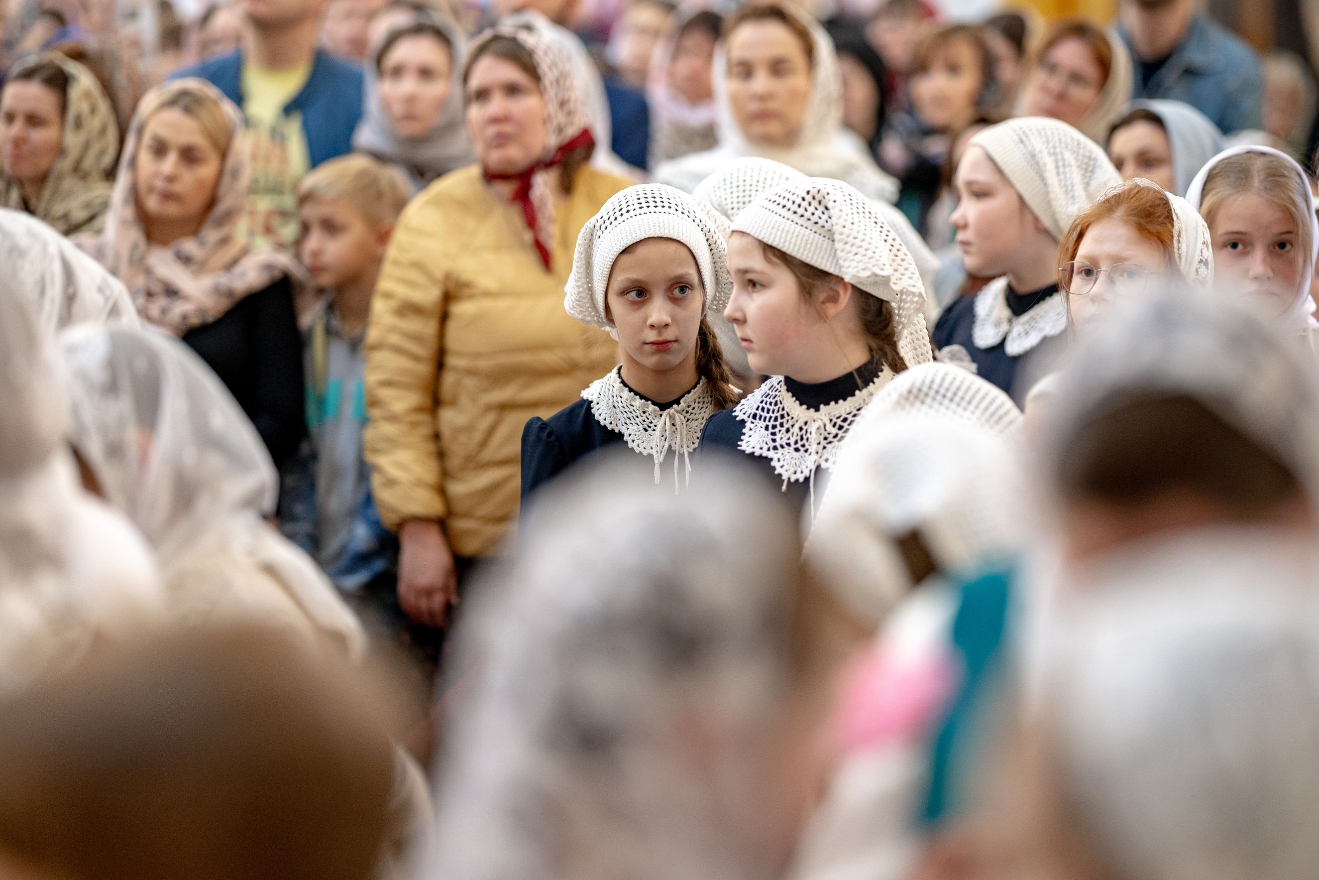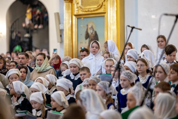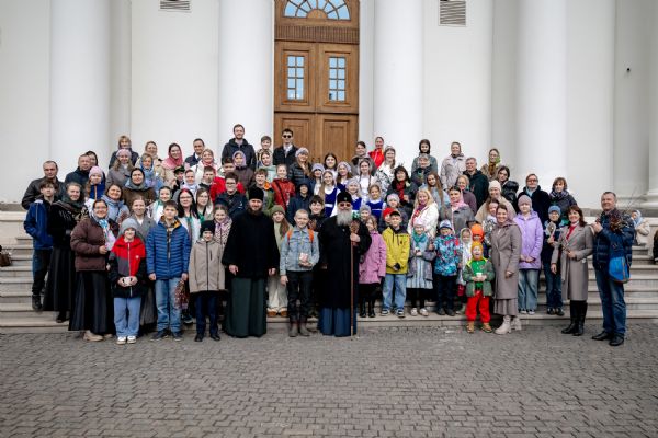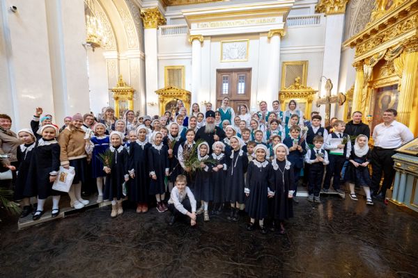 За Литургией молились педагоги и воспитанники воскресных школ, родители учащихся, прихожане и паломники.