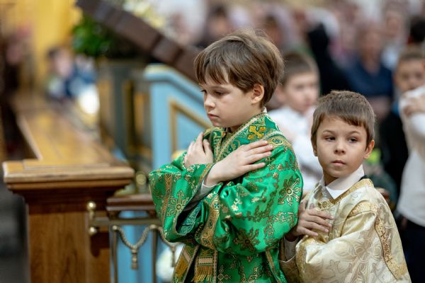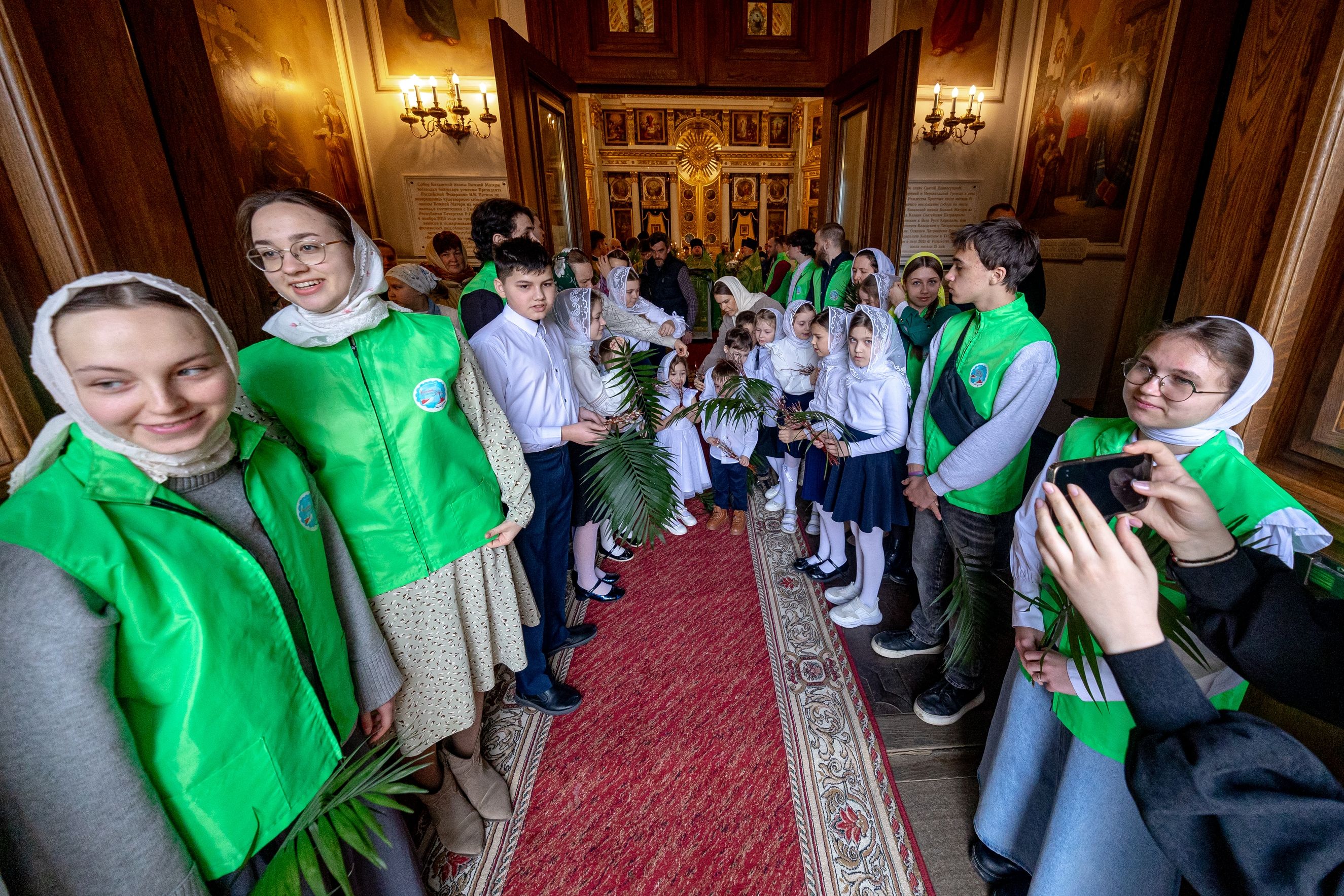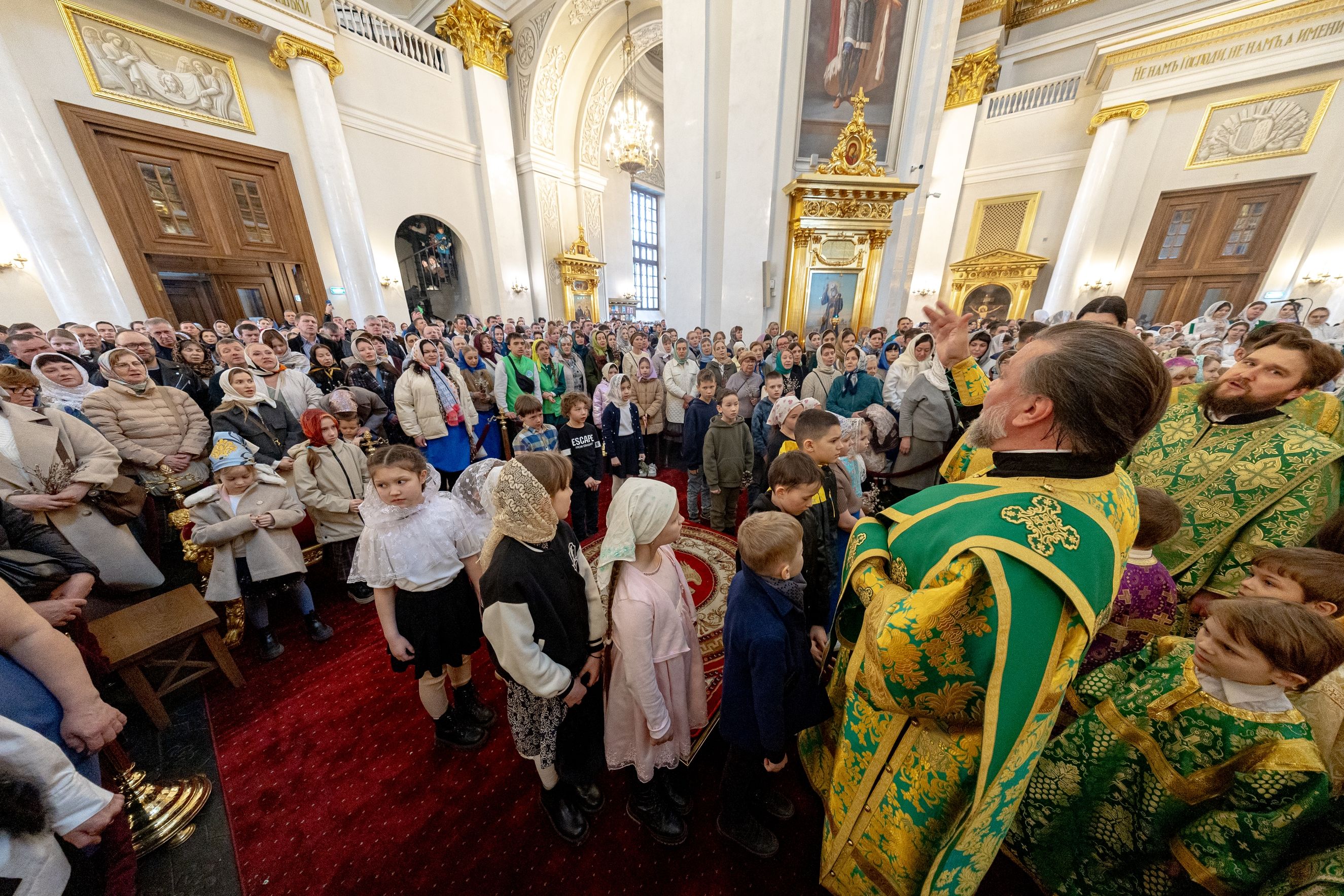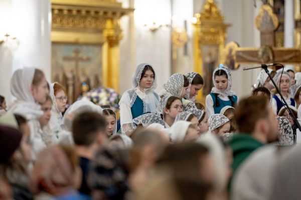 За Литургией молились педагоги и воспитанники воскресных школ, родители учащихся, прихожане и паломники.
